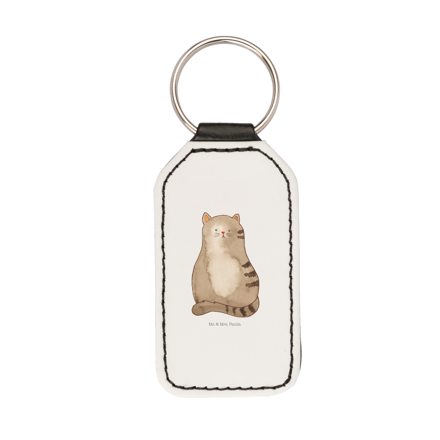 Rechteckig Schlüsselanhänger Katze sitzend - Weiß