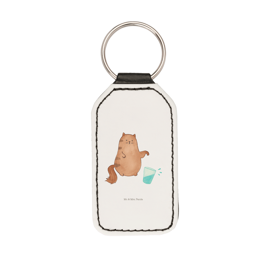 Rechteckig Schlüsselanhänger Katze Wasserglas - Weiß