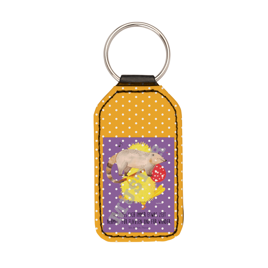 Rechteckig Schlüsselanhänger Nasenbaer - Weiß