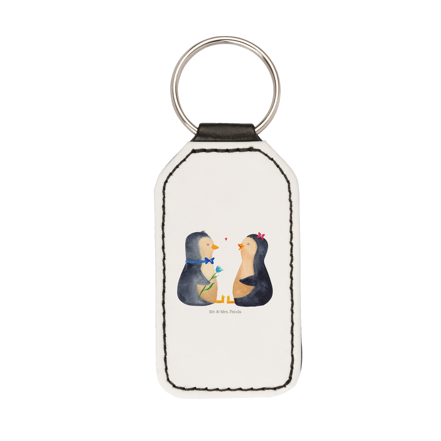 Rechteckig Schlüsselanhänger Pinguin Pärchen - Weiß