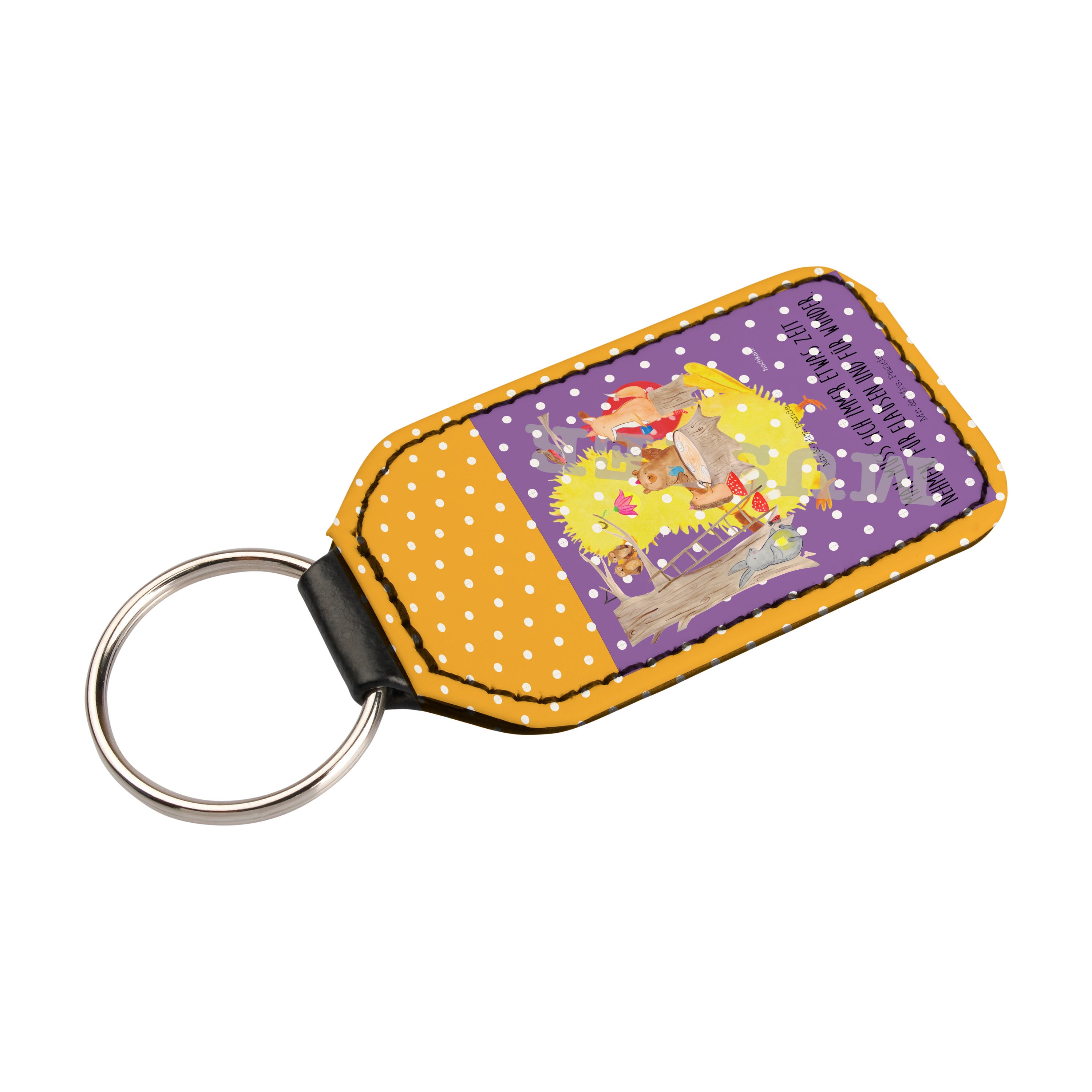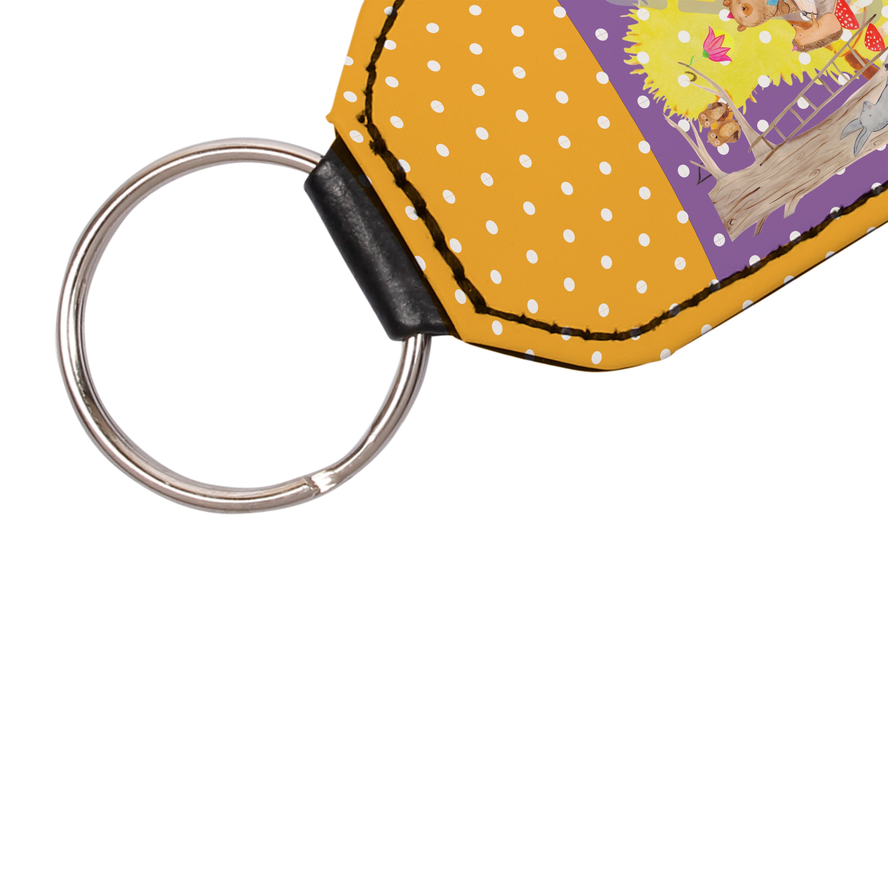 Rechteckig Schlüsselanhänger Waldtiere Picknick - Gelb Pastell