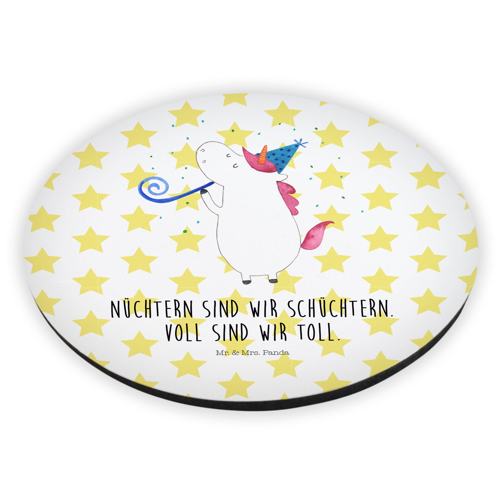 Rund Magnet Einhorn Party - mit Spruch