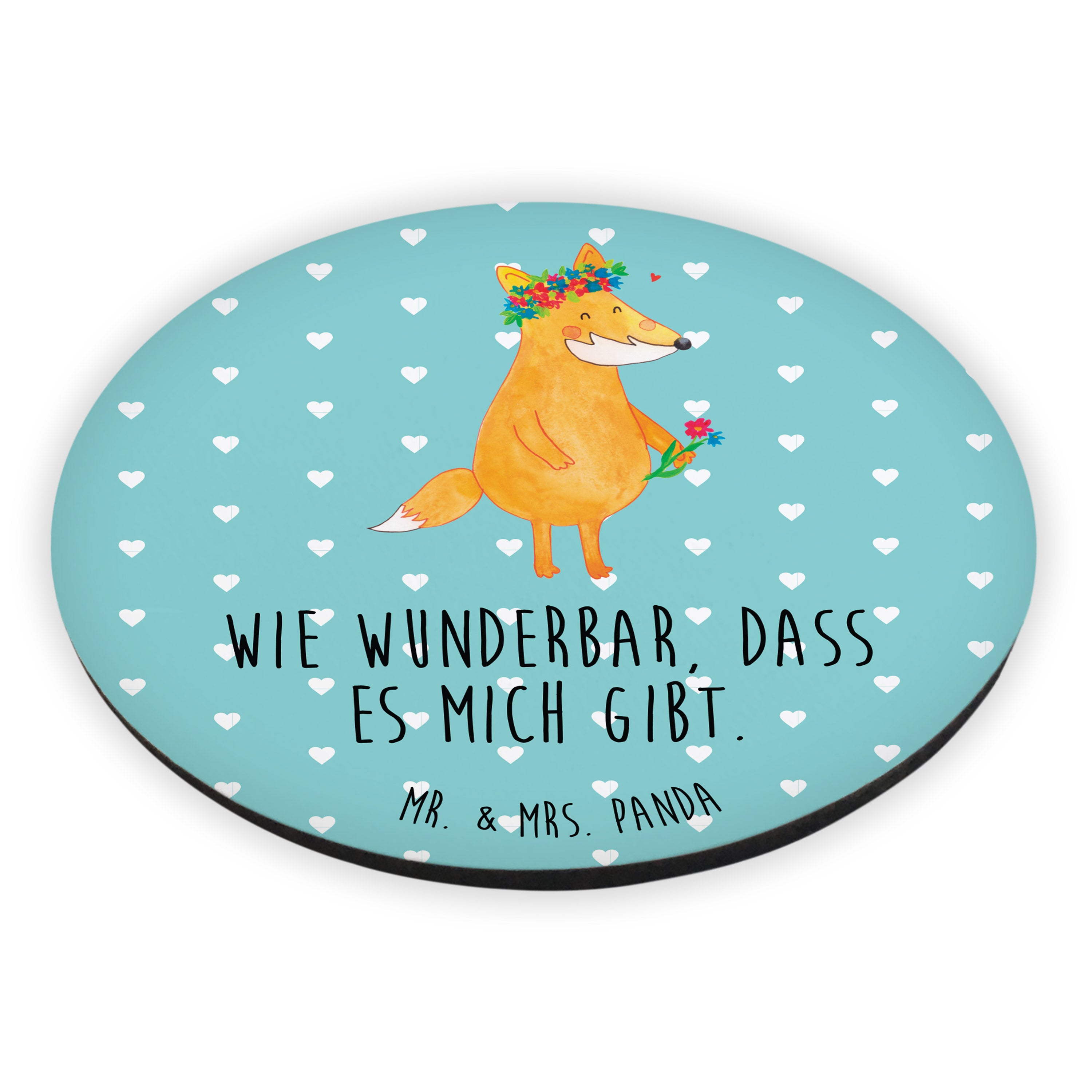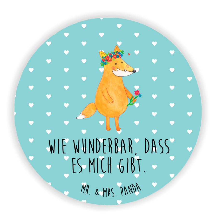 Rund Magnet Fuchs Blumenliebe - mit Spruch - Türkis Pastell