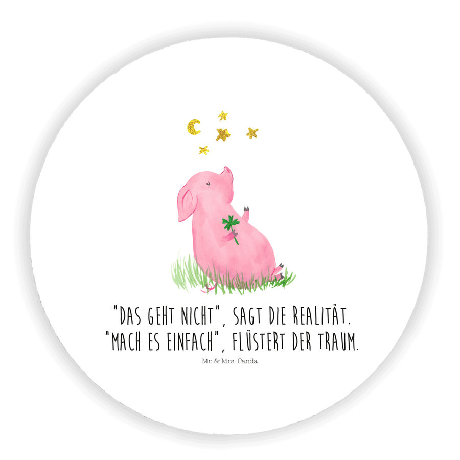 Rund Magnet Glücksschwein - mit Spruch - Weiß