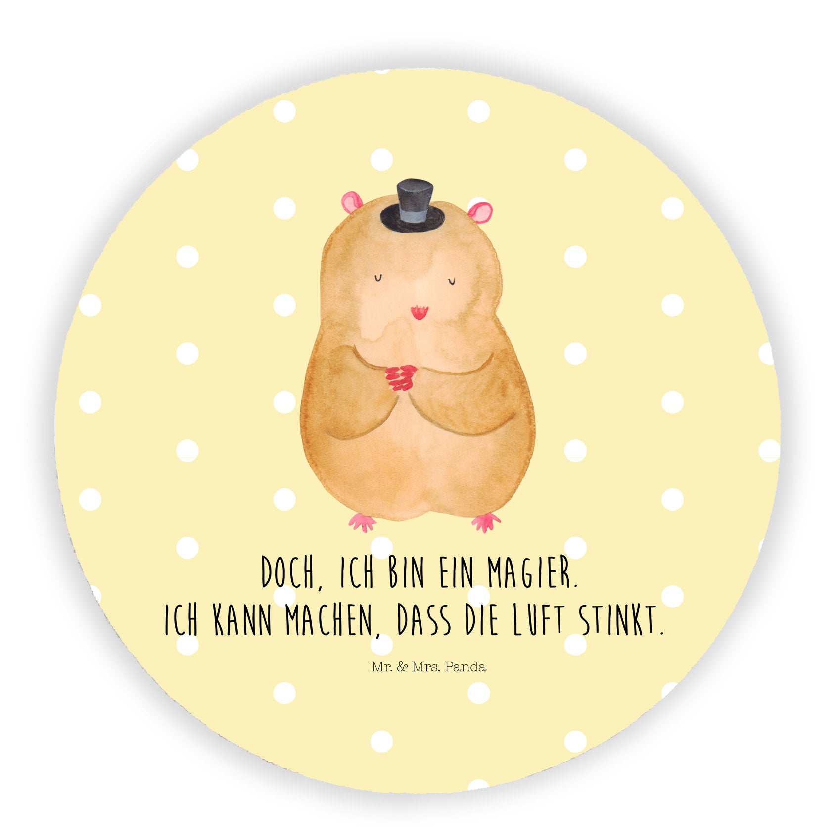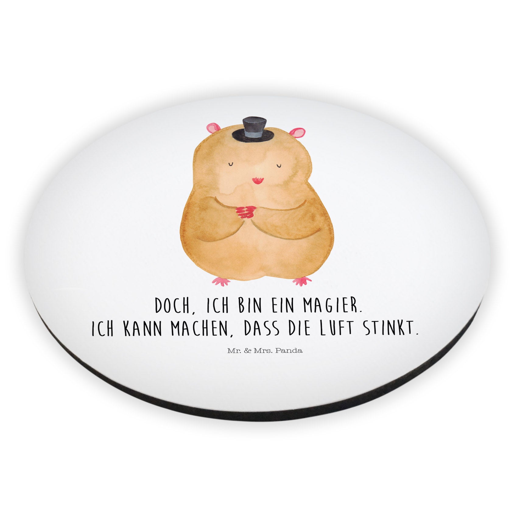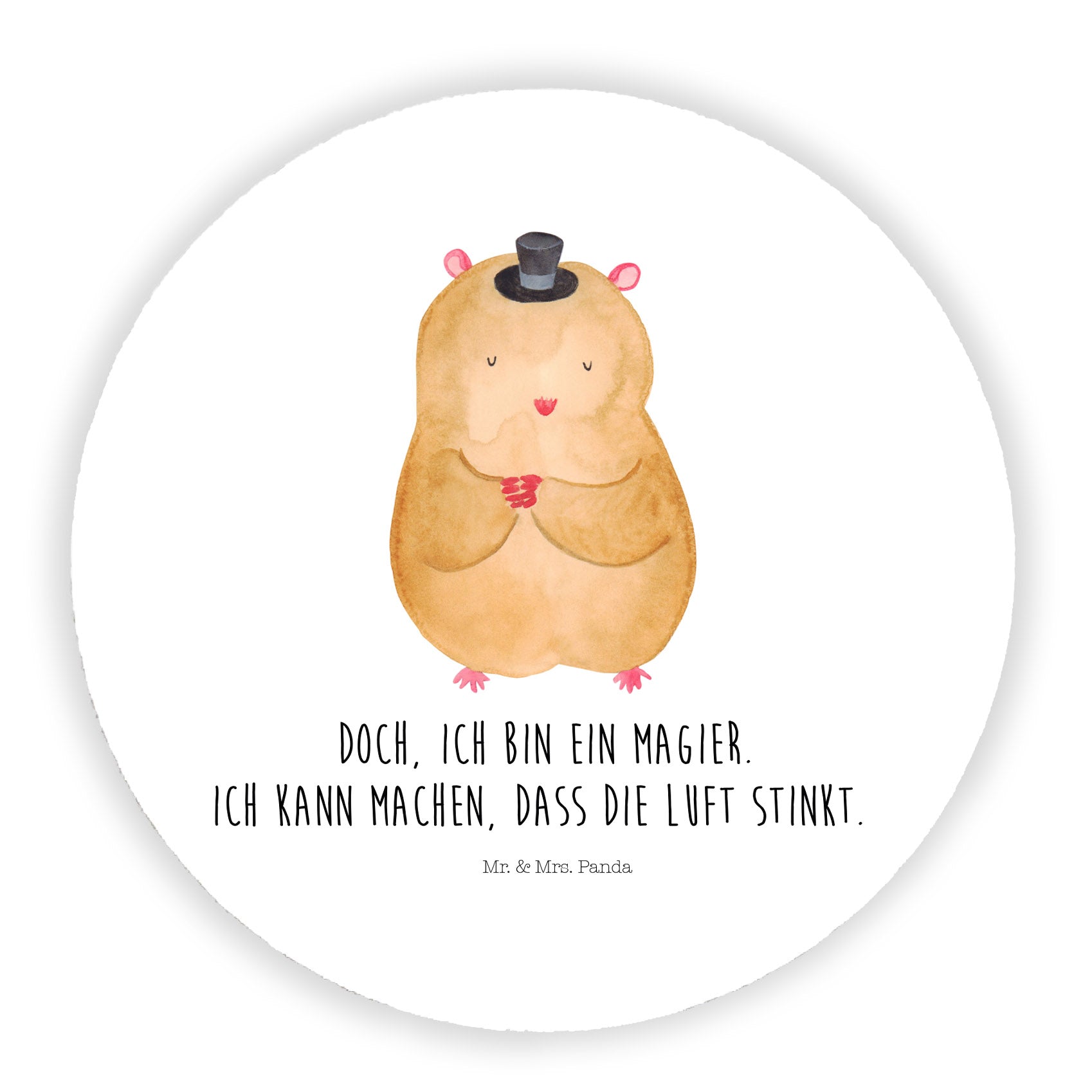 Rund Magnet Hamster mit Hut - mit Spruch - Weiß