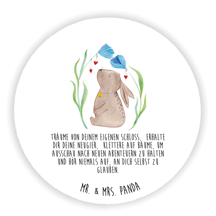 Rund Magnet Hase Blume - mit Spruch - Weiß
