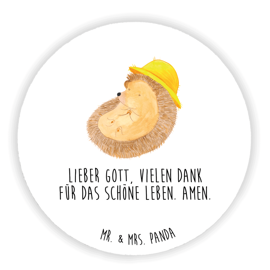 Rund Magnet Igel betet - mit Spruch - Weiß