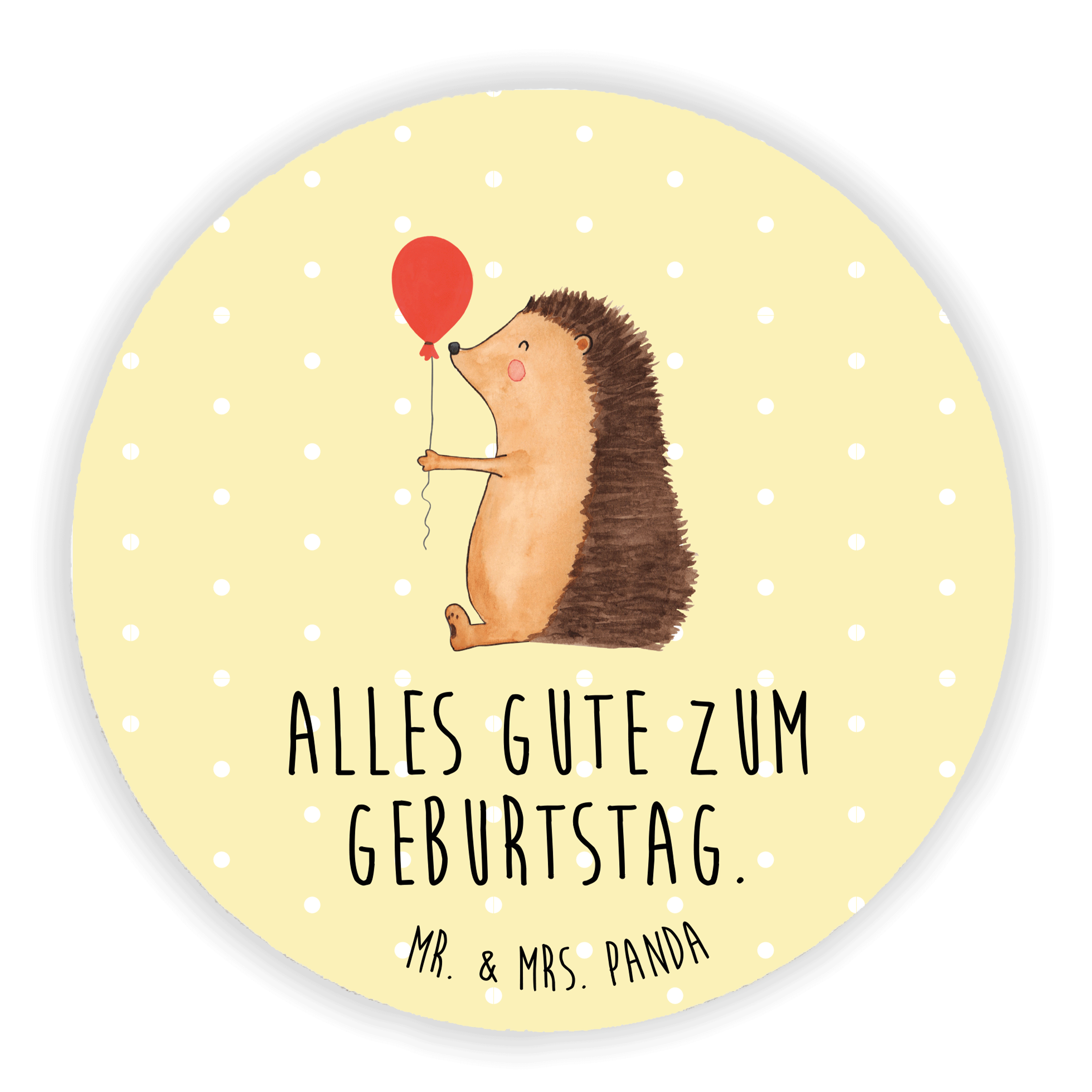 Rund Magnet Igel mit Luftballon - mit Spruch - Gelb Pastell