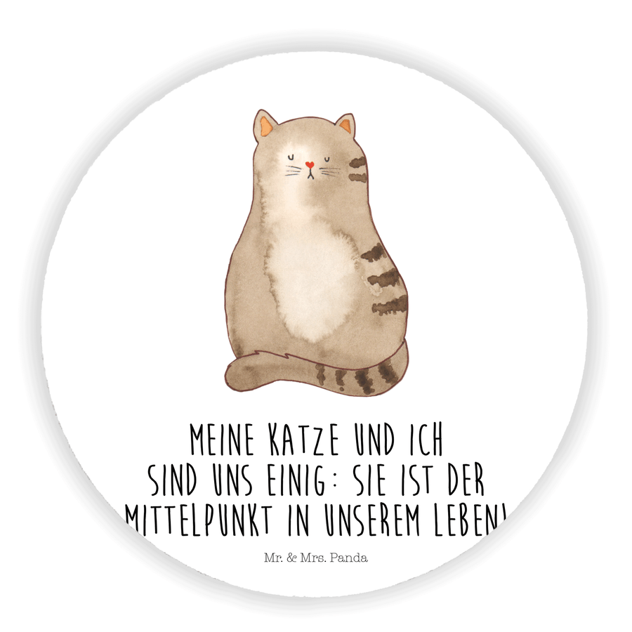 Rund Magnet Katze sitzend - mit Spruch - Weiß