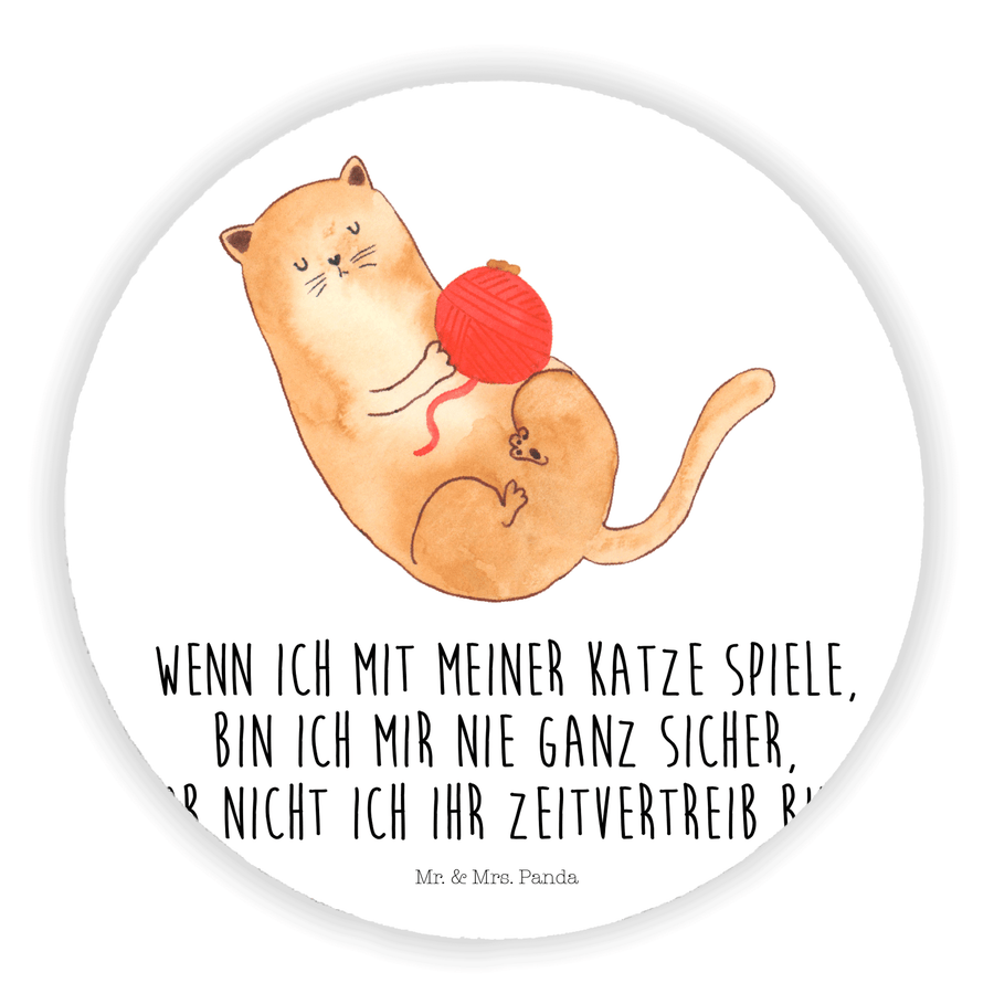 Rund Magnet Katzen Wollknäul - mit Spruch - Weiß
