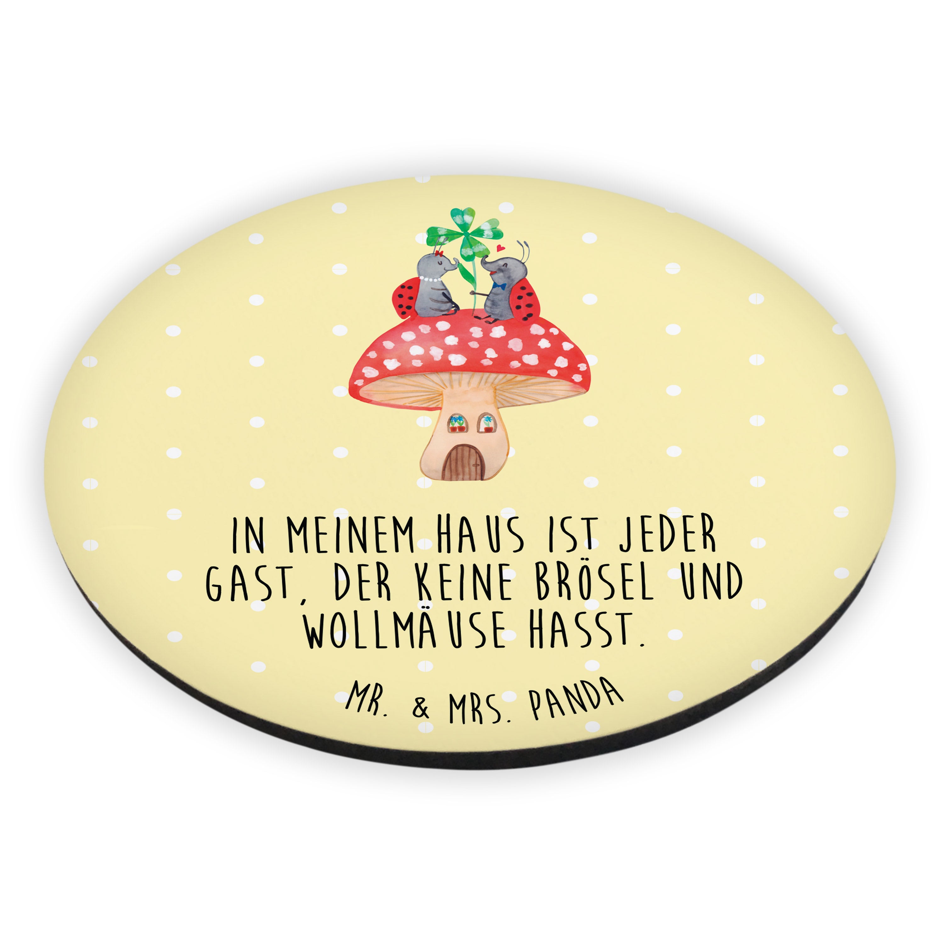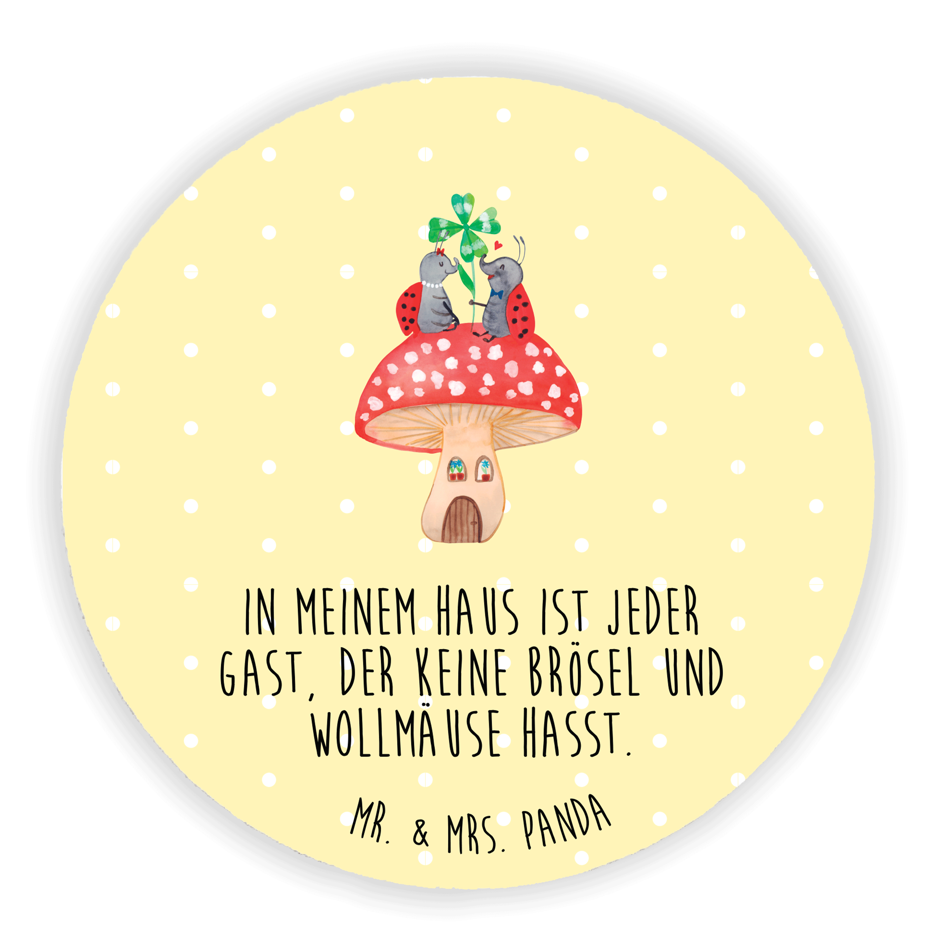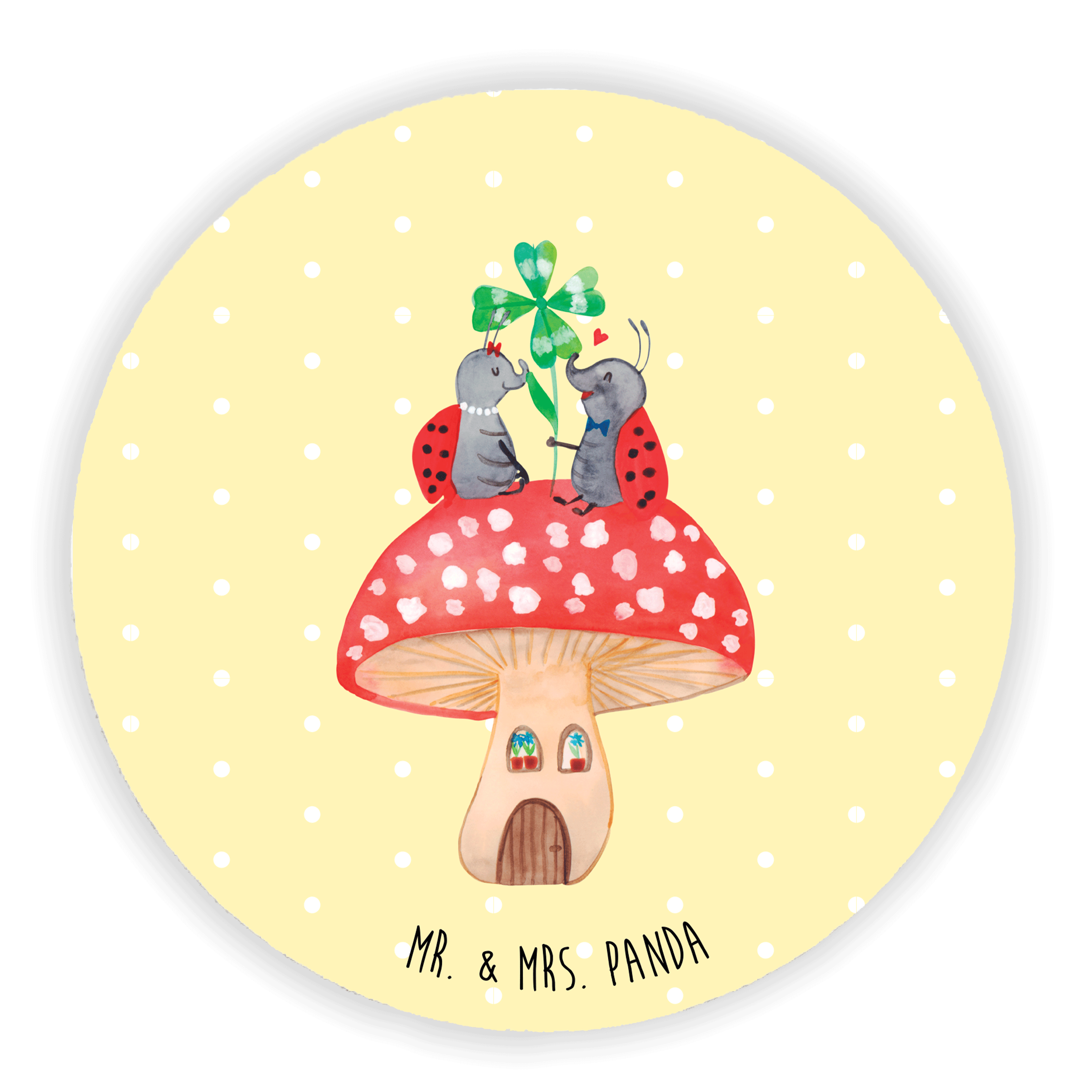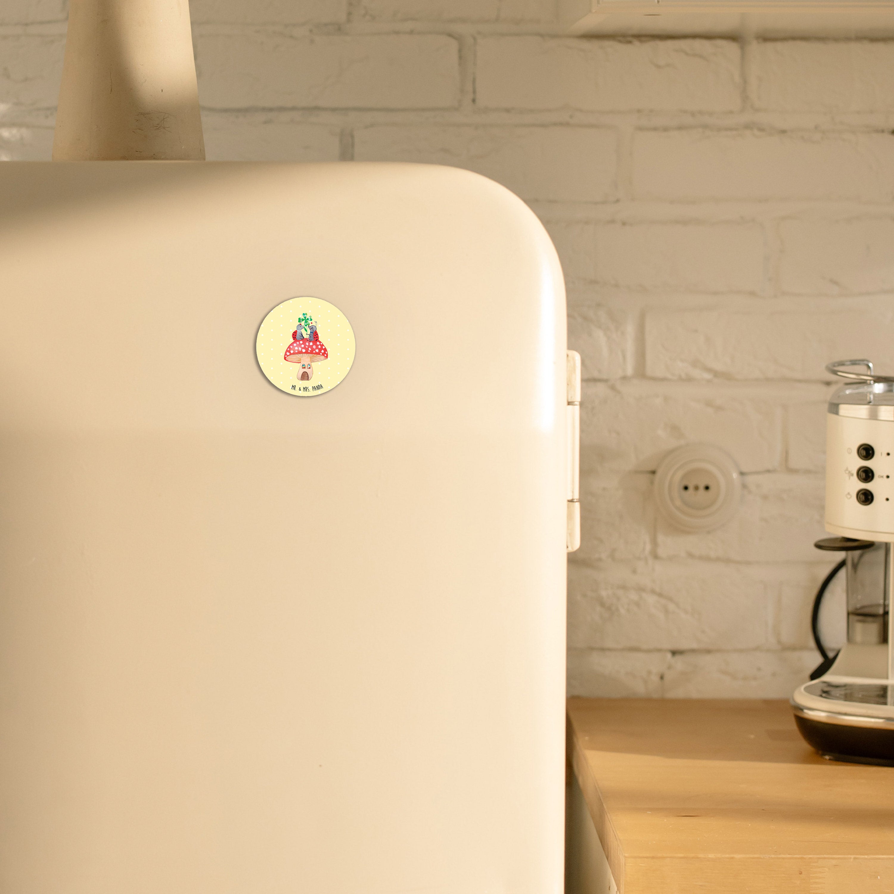 Rund Magnet Marienkäfer Paar Fliegenpilz - mit Spruch - Gelb Pastell