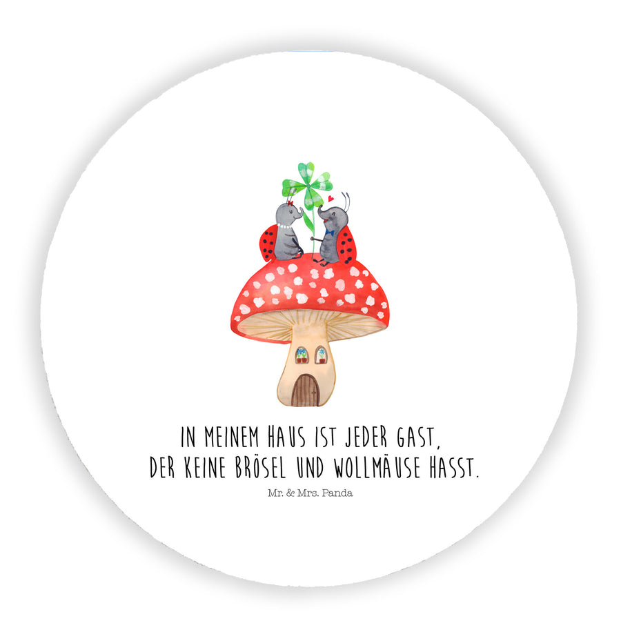 Rund Magnet Marienkäfer Paar Fliegenpilz - mit Spruch - Weiß