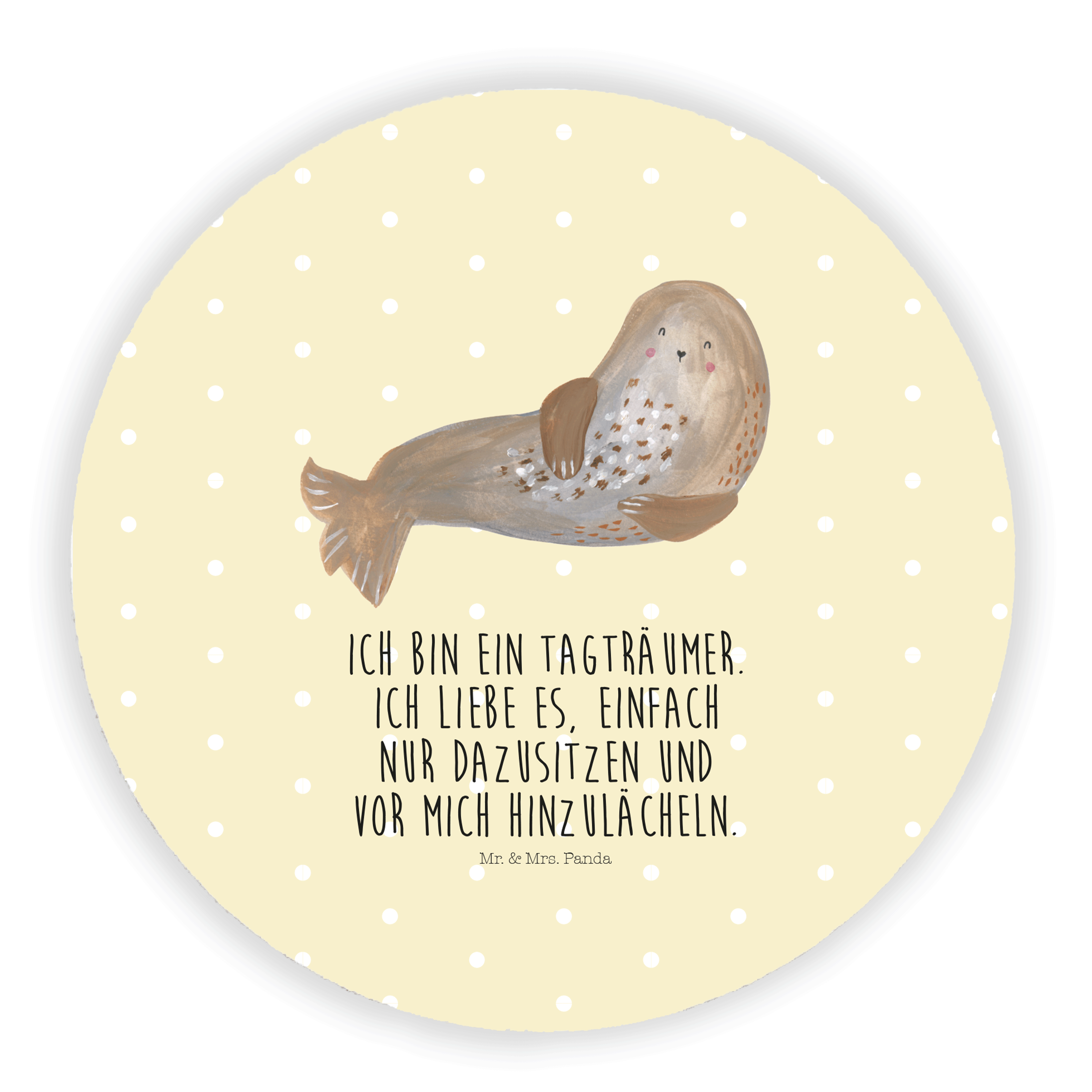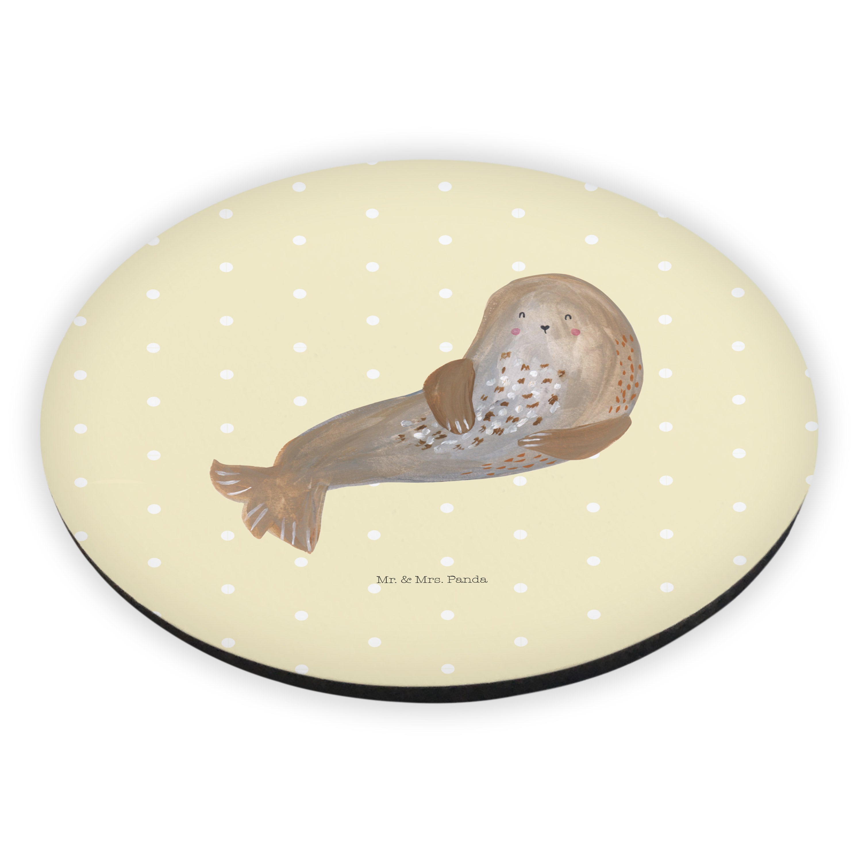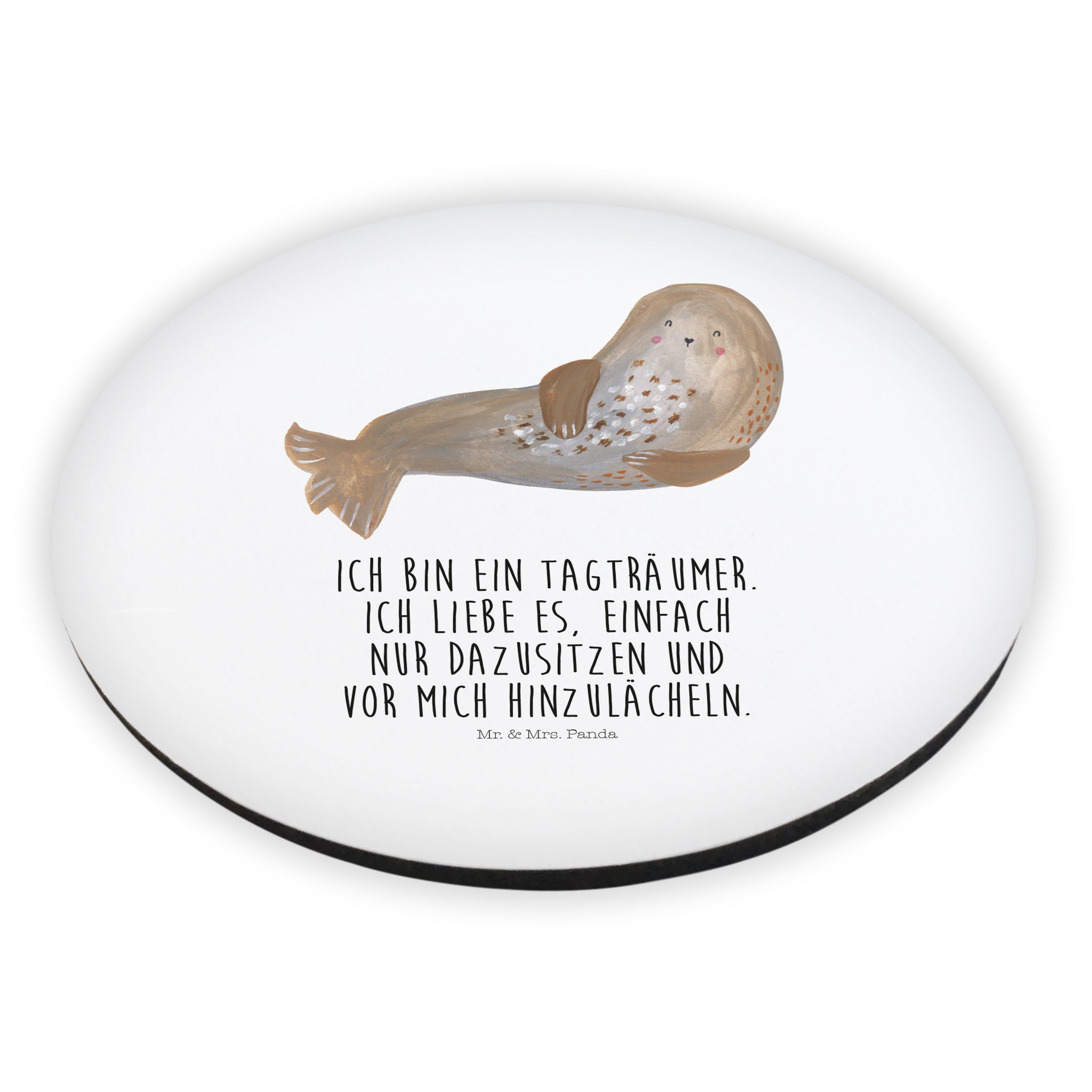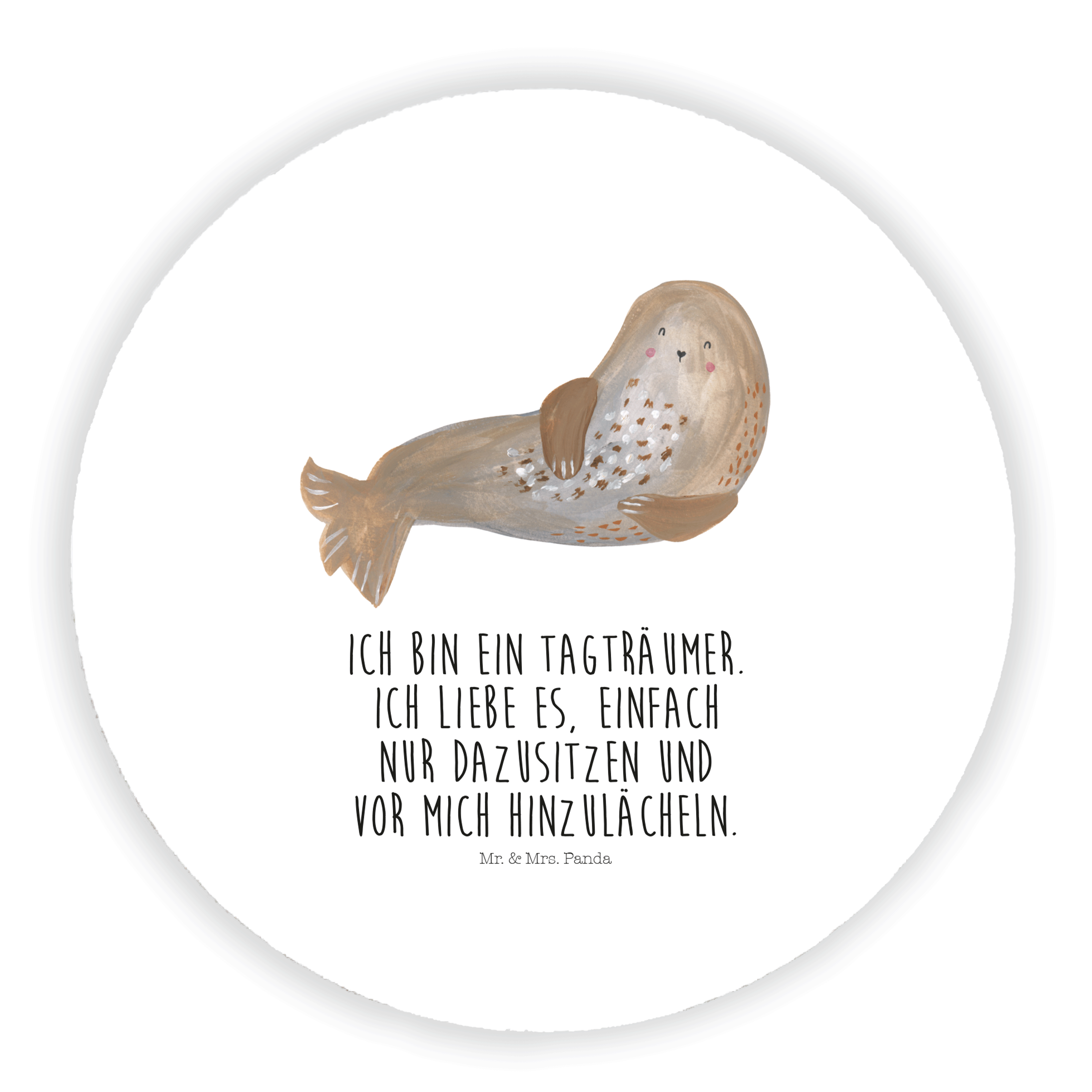 Rund Magnet Robbe lachend - mit Spruch - Weiß