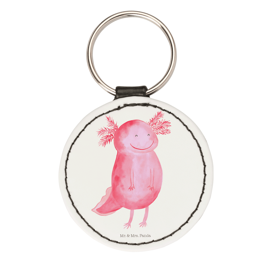 Rund Schlüsselanhänger Axolotl glücklich - Weiß