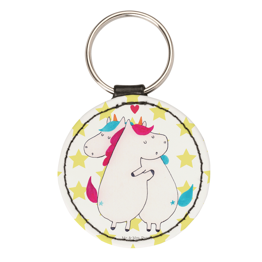 Rund Schlüsselanhänger Einhorn Mitteilung - Weiß
