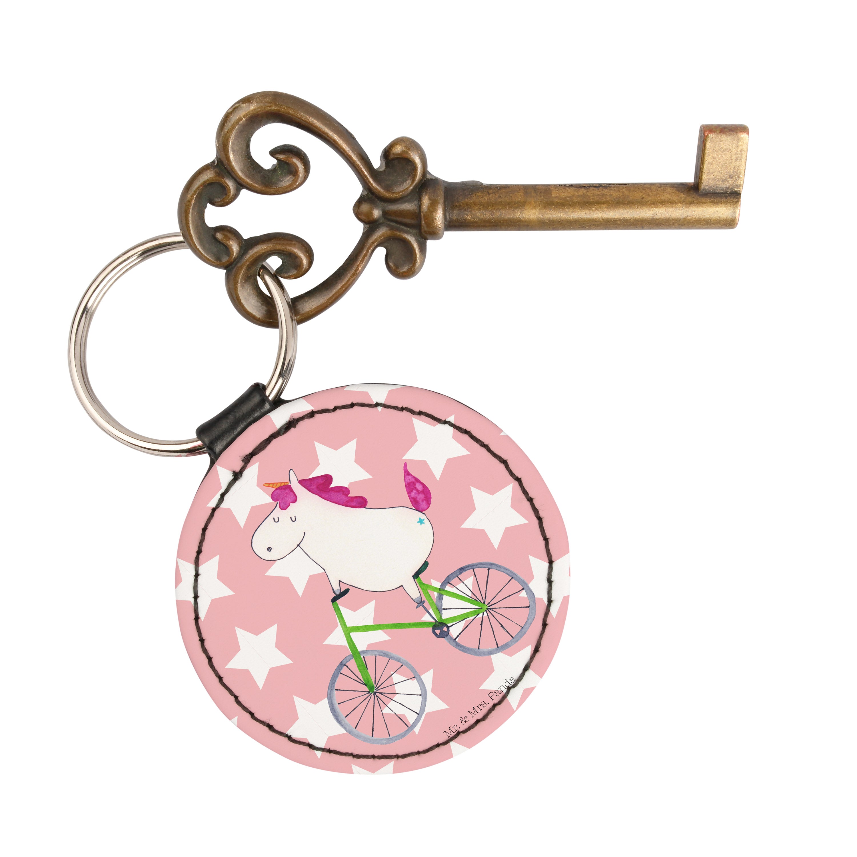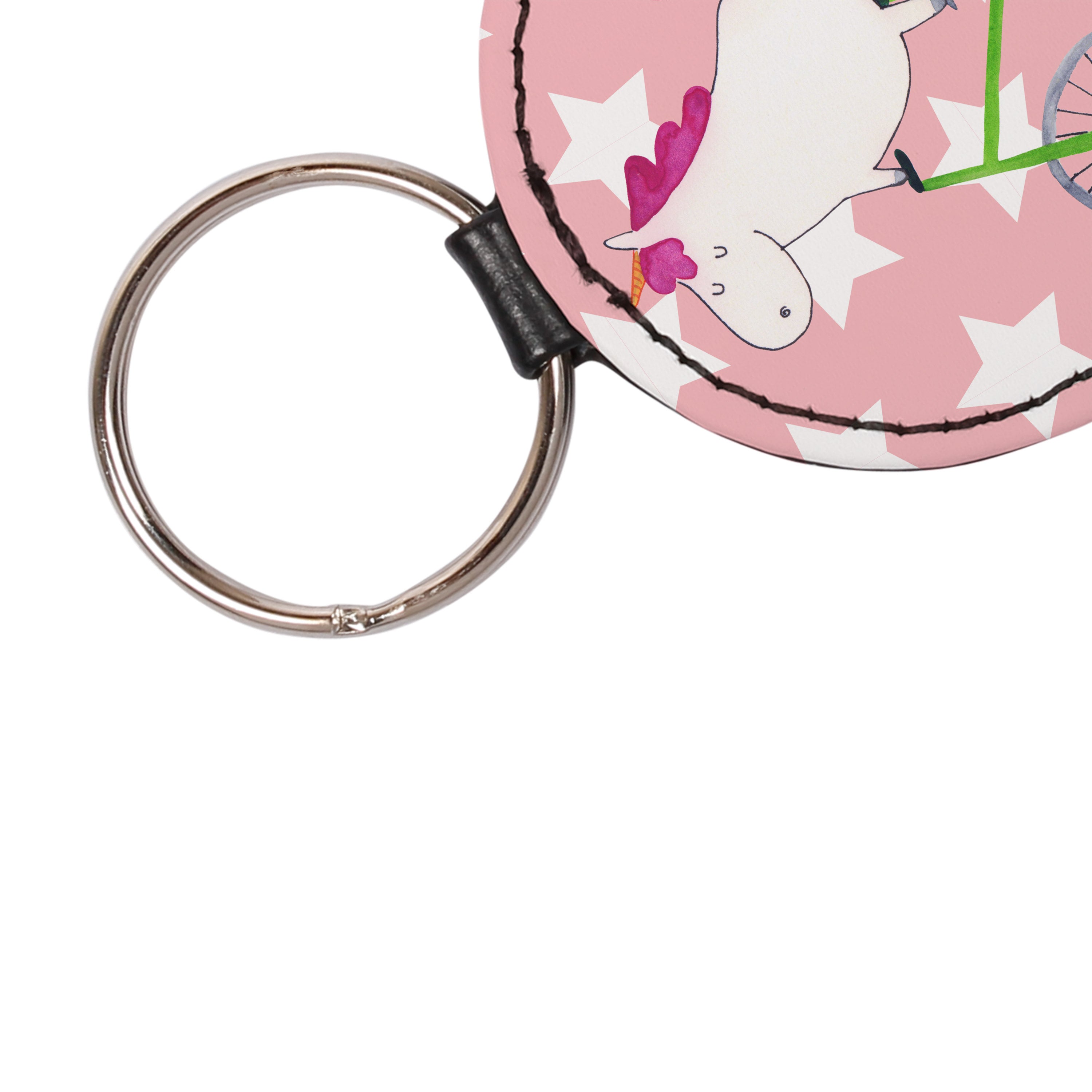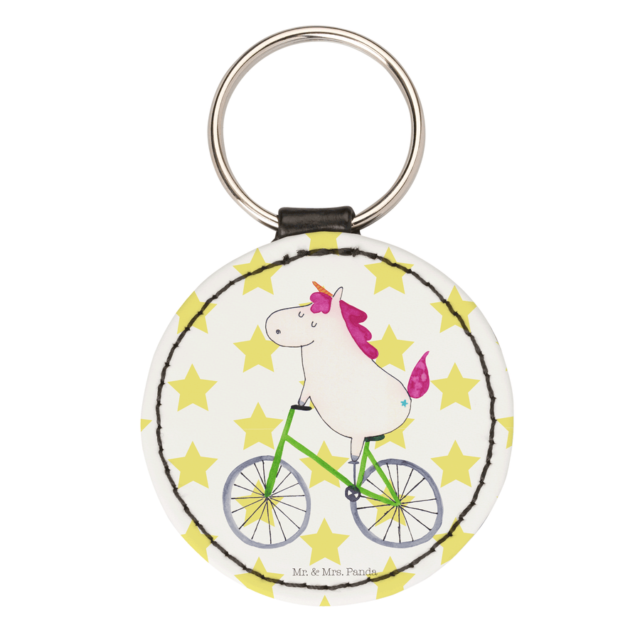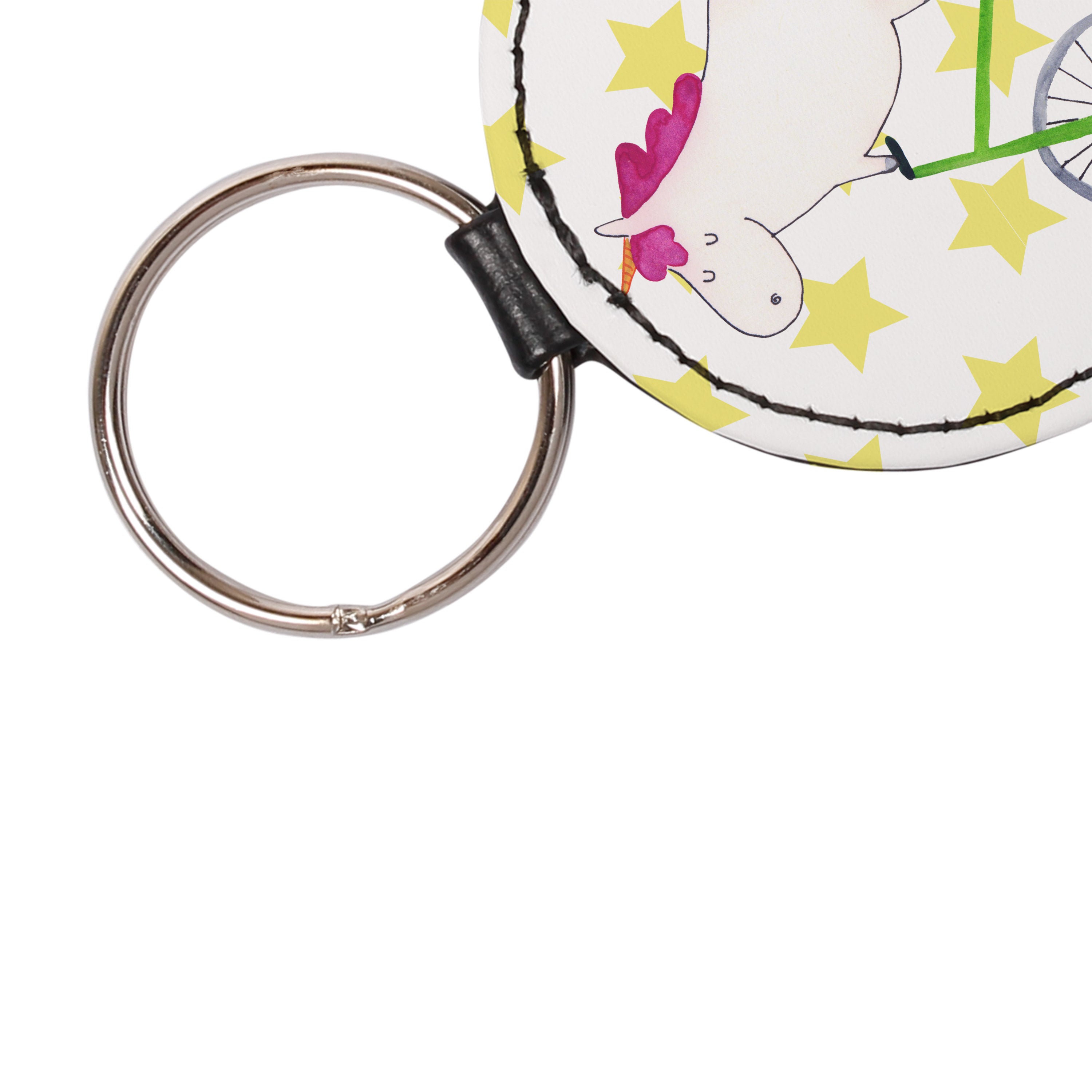Rund Schlüsselanhänger Einhorn Radfahrer - Weiß