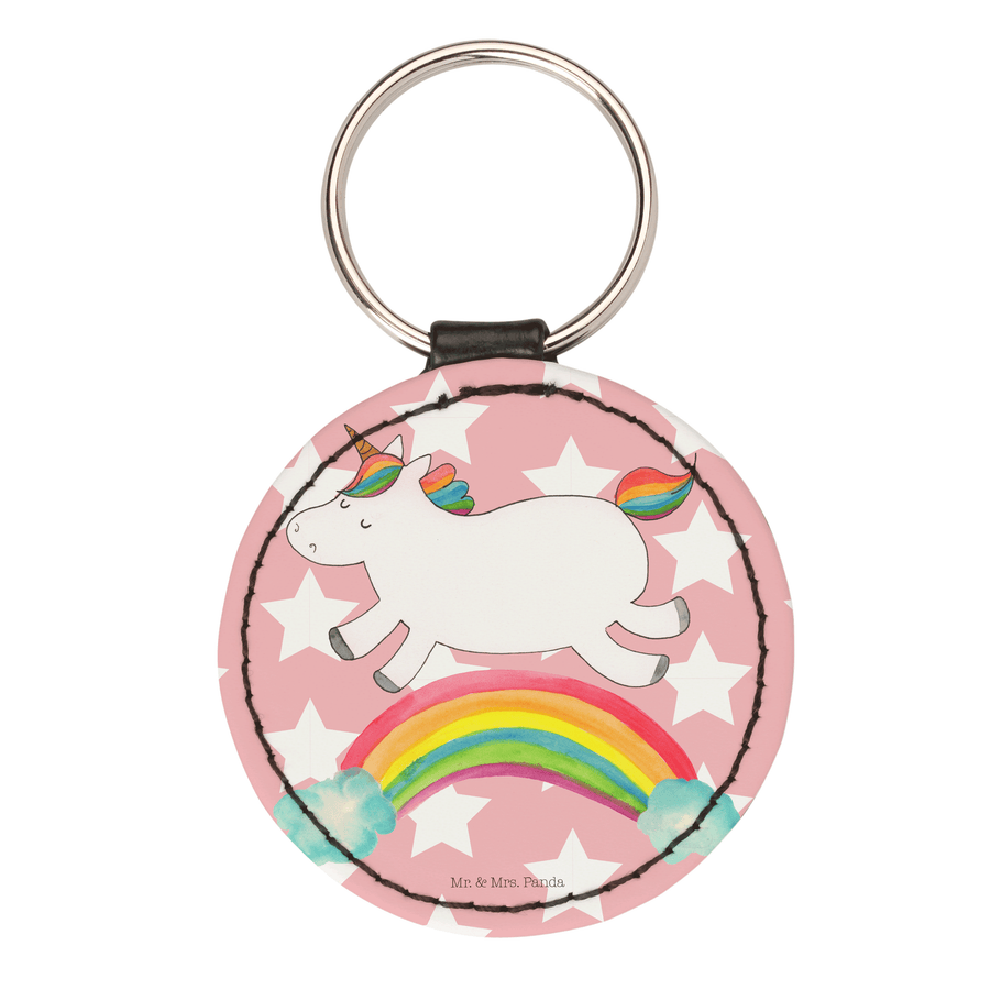 Rund Schlüsselanhänger Einhorn Regenbogen - Rot Pastell