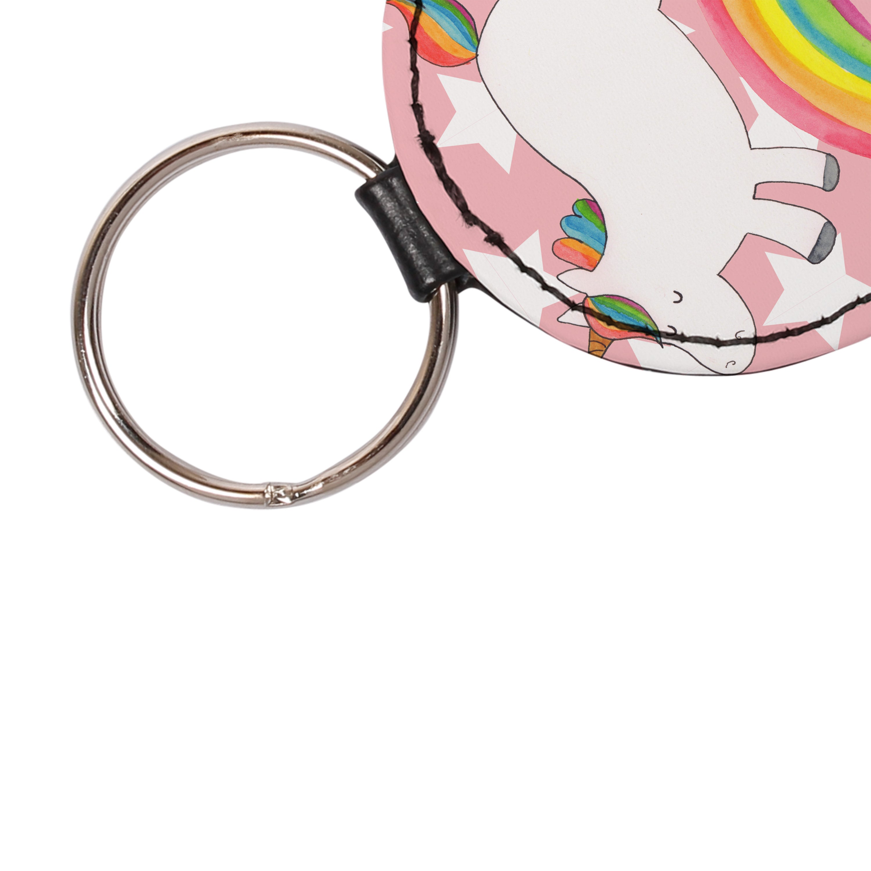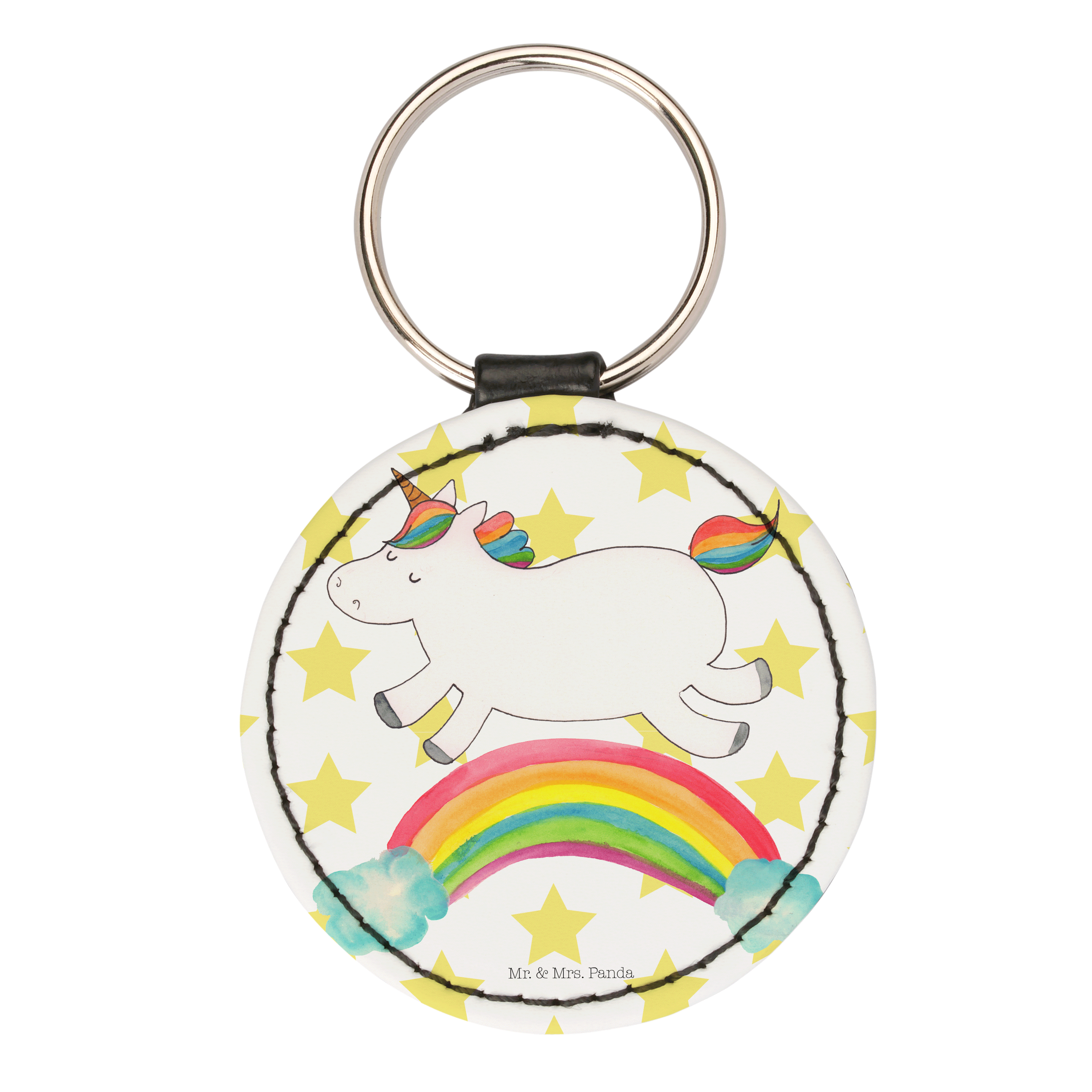 Rund Schlüsselanhänger Einhorn Regenbogen - Weiß