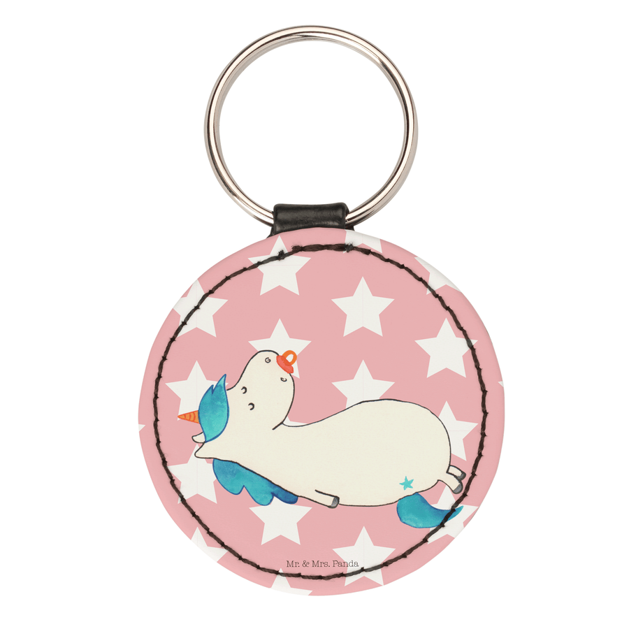 Rund Schlüsselanhänger Einhorn Schnullie - Rot Pastell