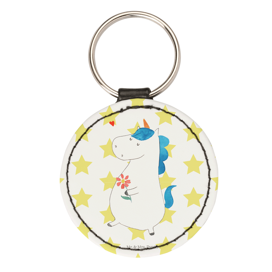 Rund Schlüsselanhänger Einhorn Spaziergang - Weiß