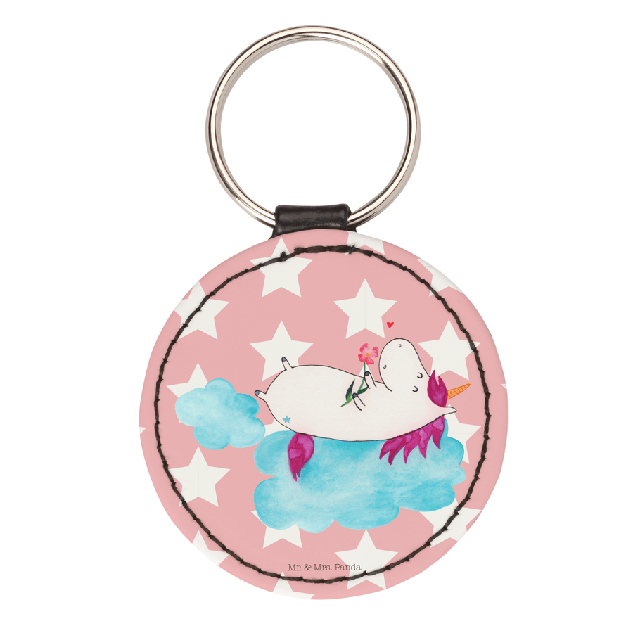 Rund Schlüsselanhänger Einhorn verliebt auf Wolke - Rot Pastell