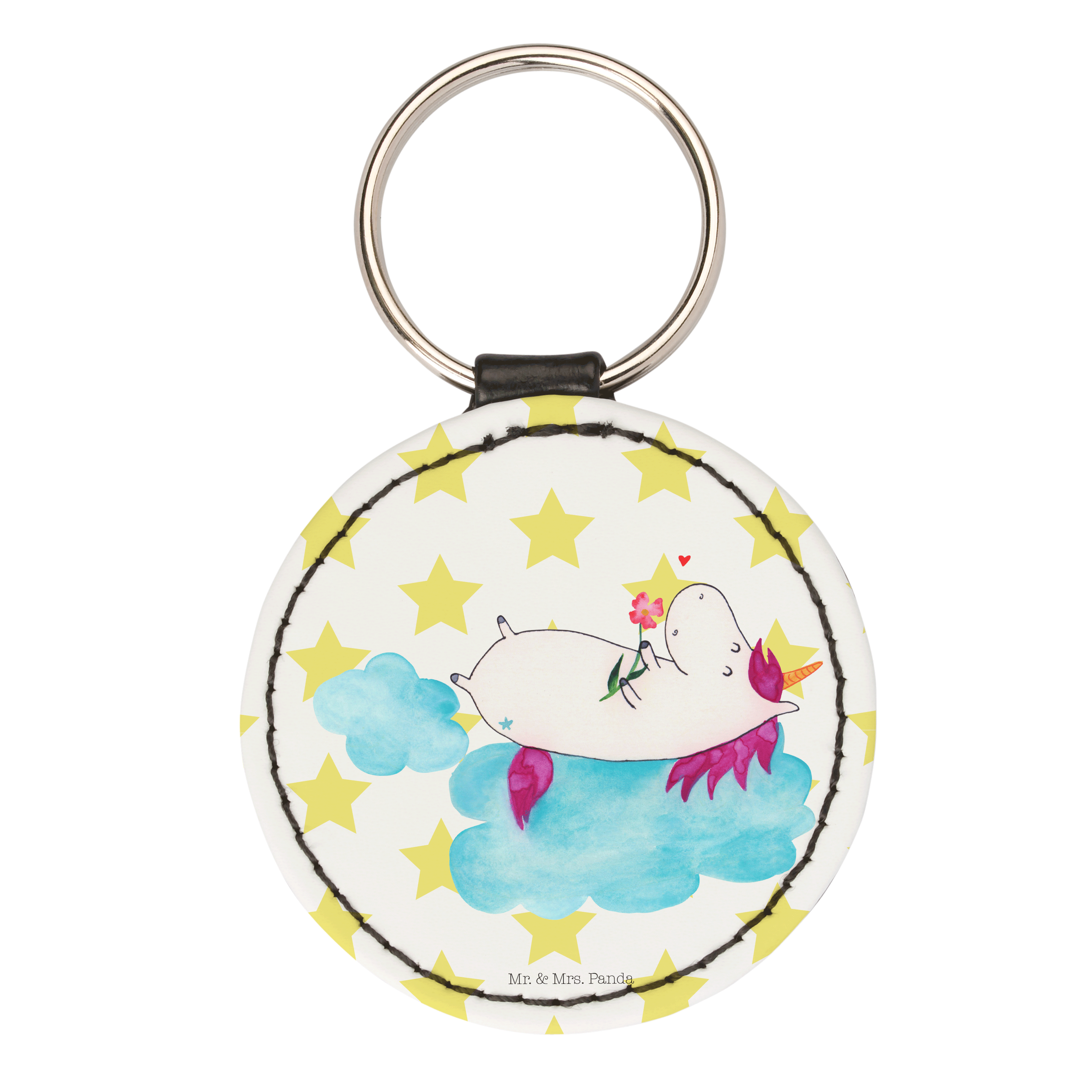 Rund Schlüsselanhänger Einhorn verliebt auf Wolke - Weiß