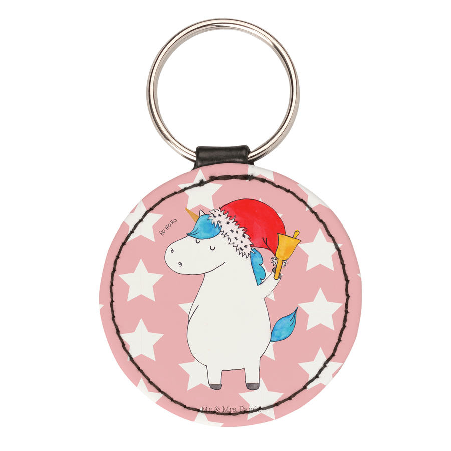 Rund Schlüsselanhänger Einhorn Weihnachtsmann - Rot Pastell