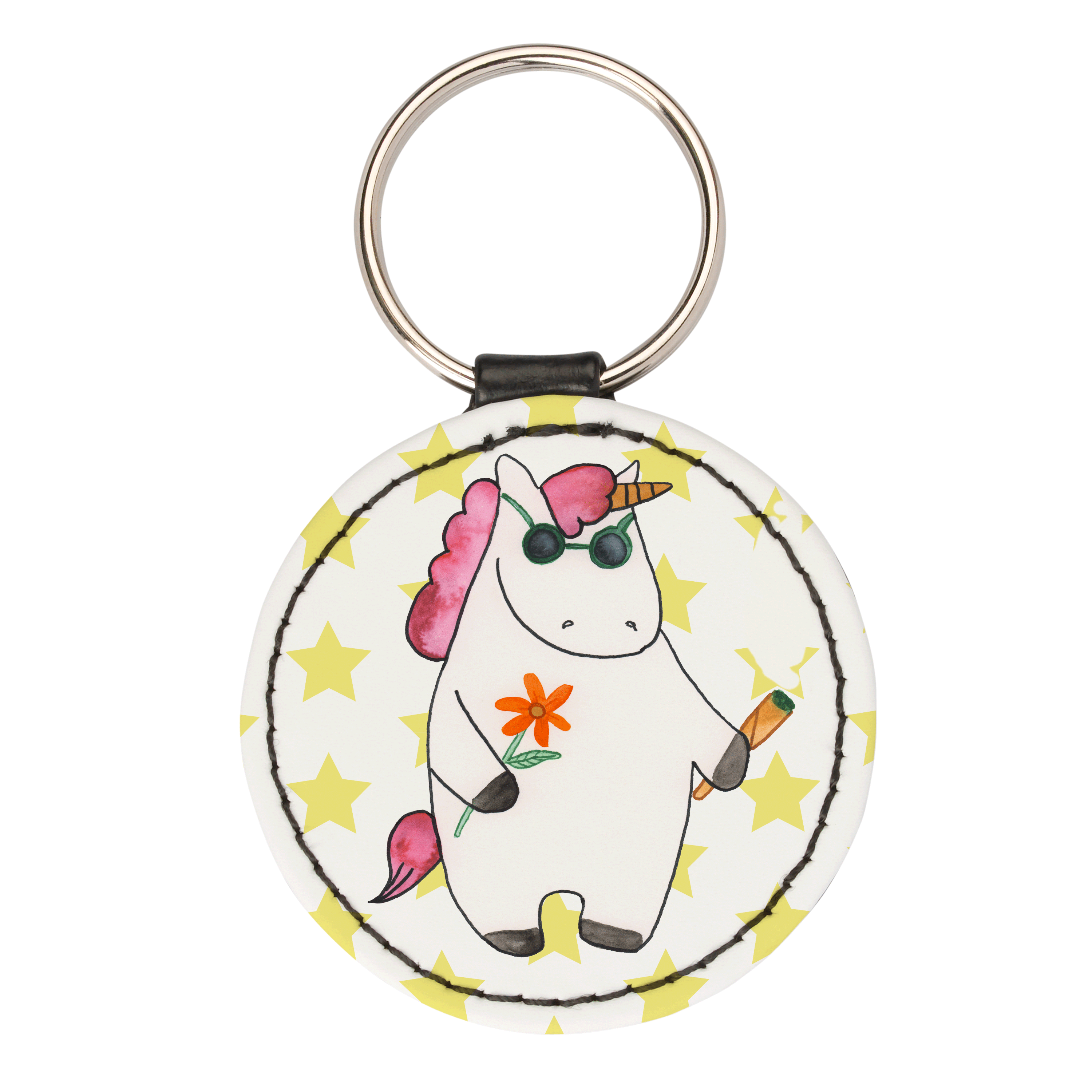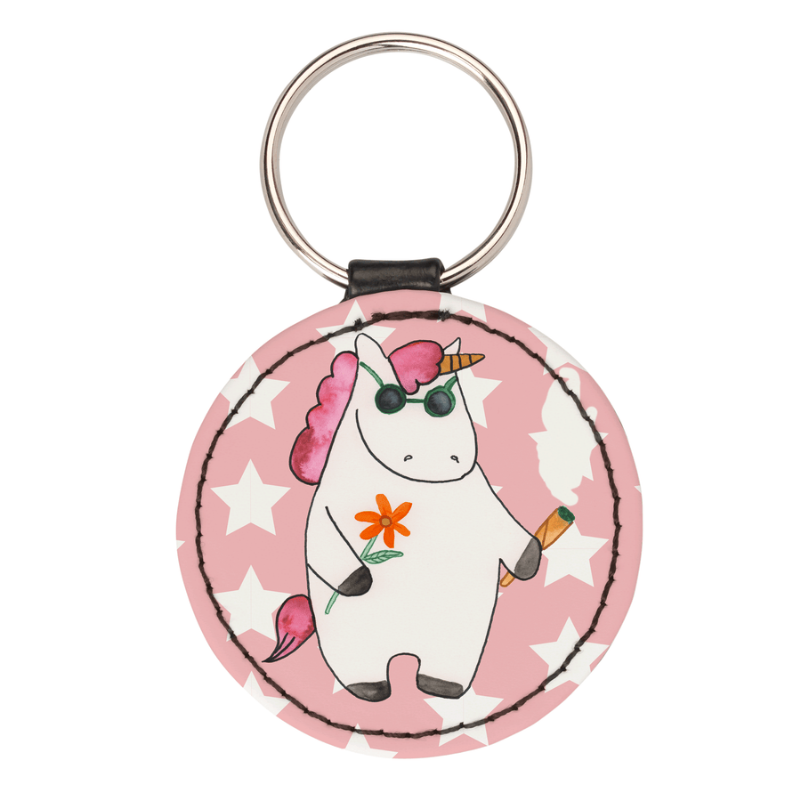 Rund Schlüsselanhänger Einhorn Woodstock - Rot Pastell