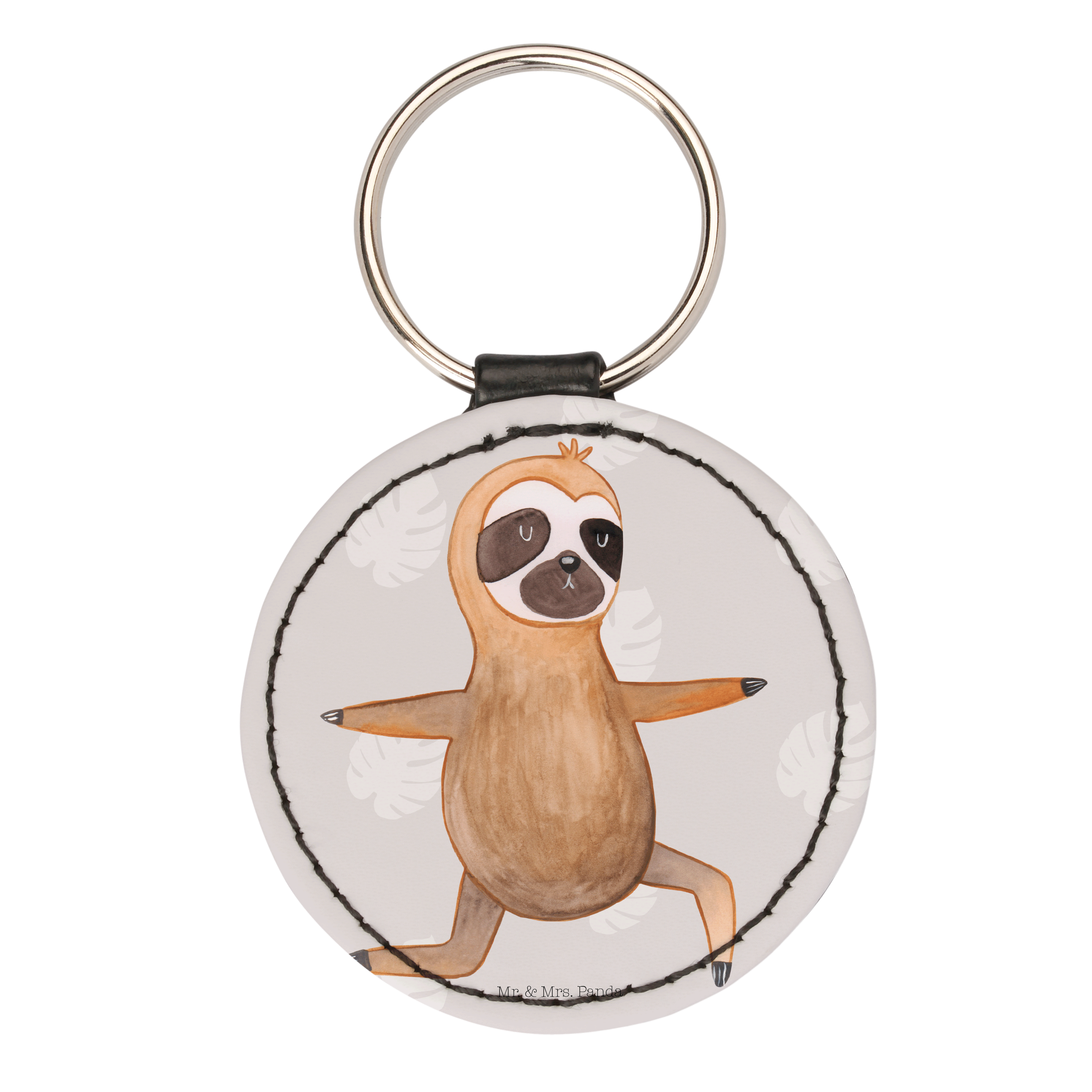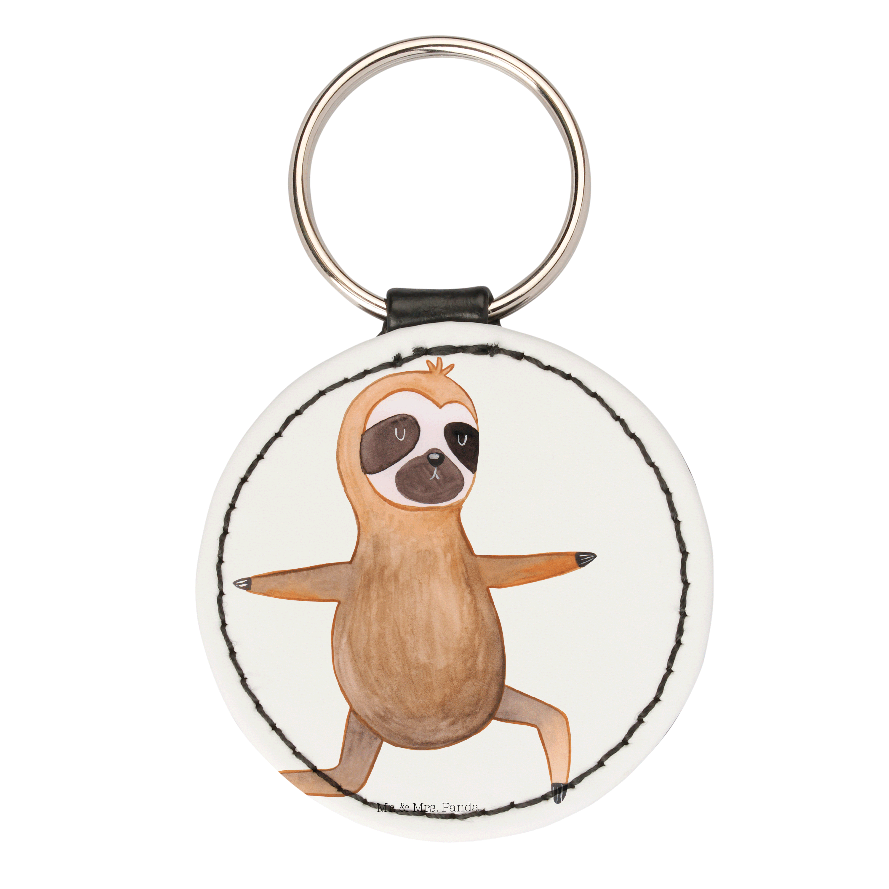 Rund Schlüsselanhänger Faultier Yoga - Weiß