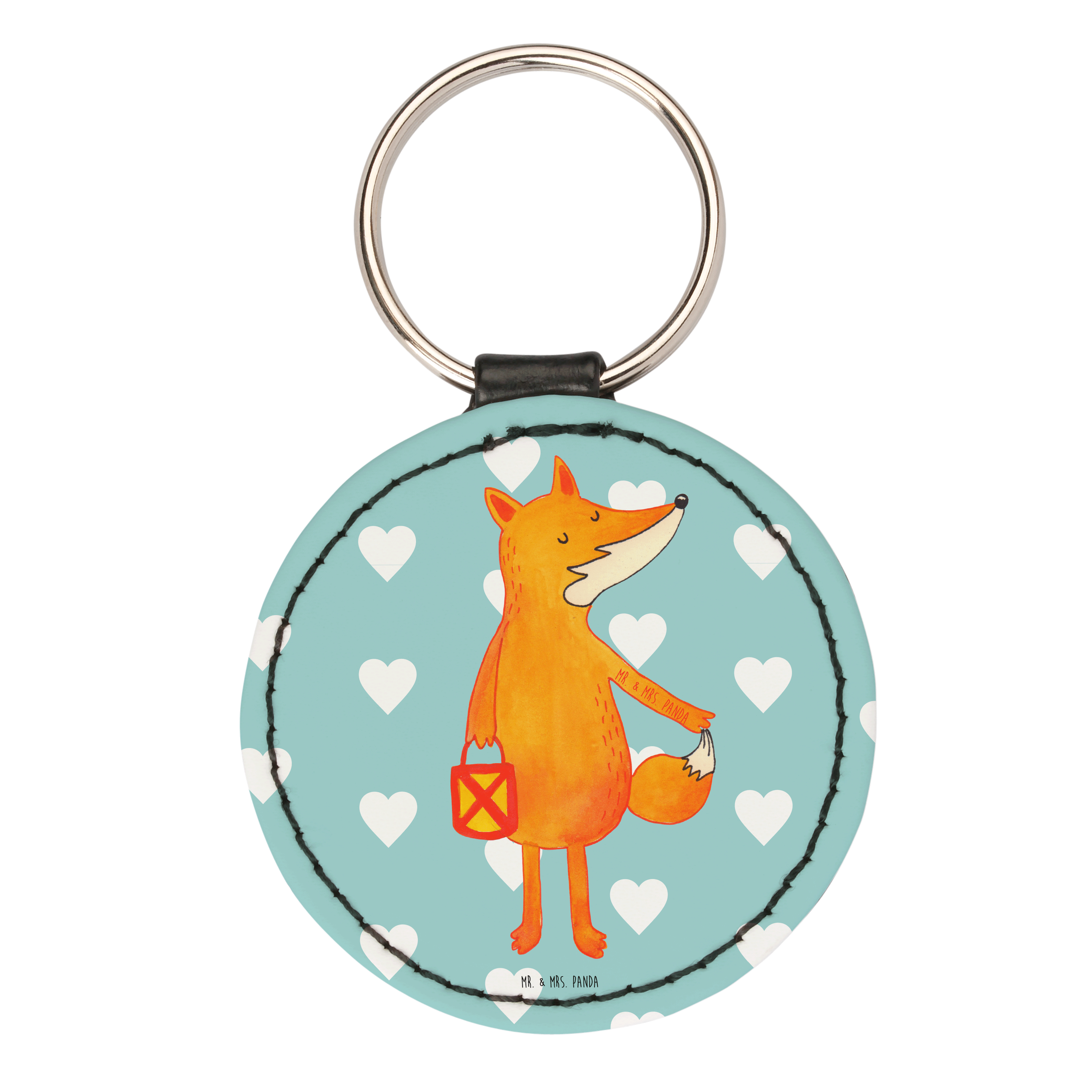Rund Schlüsselanhänger Fuchs Laterne - Türkis Pastell