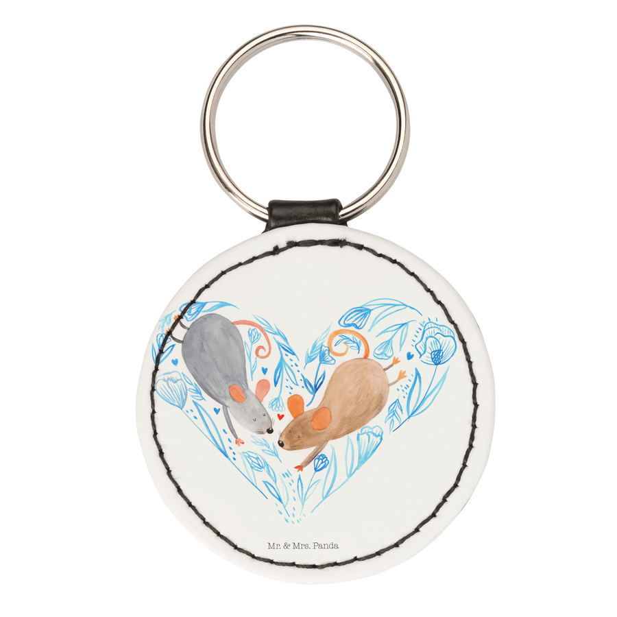 Rund Schlüsselanhänger Mäuse Herz - Weiß