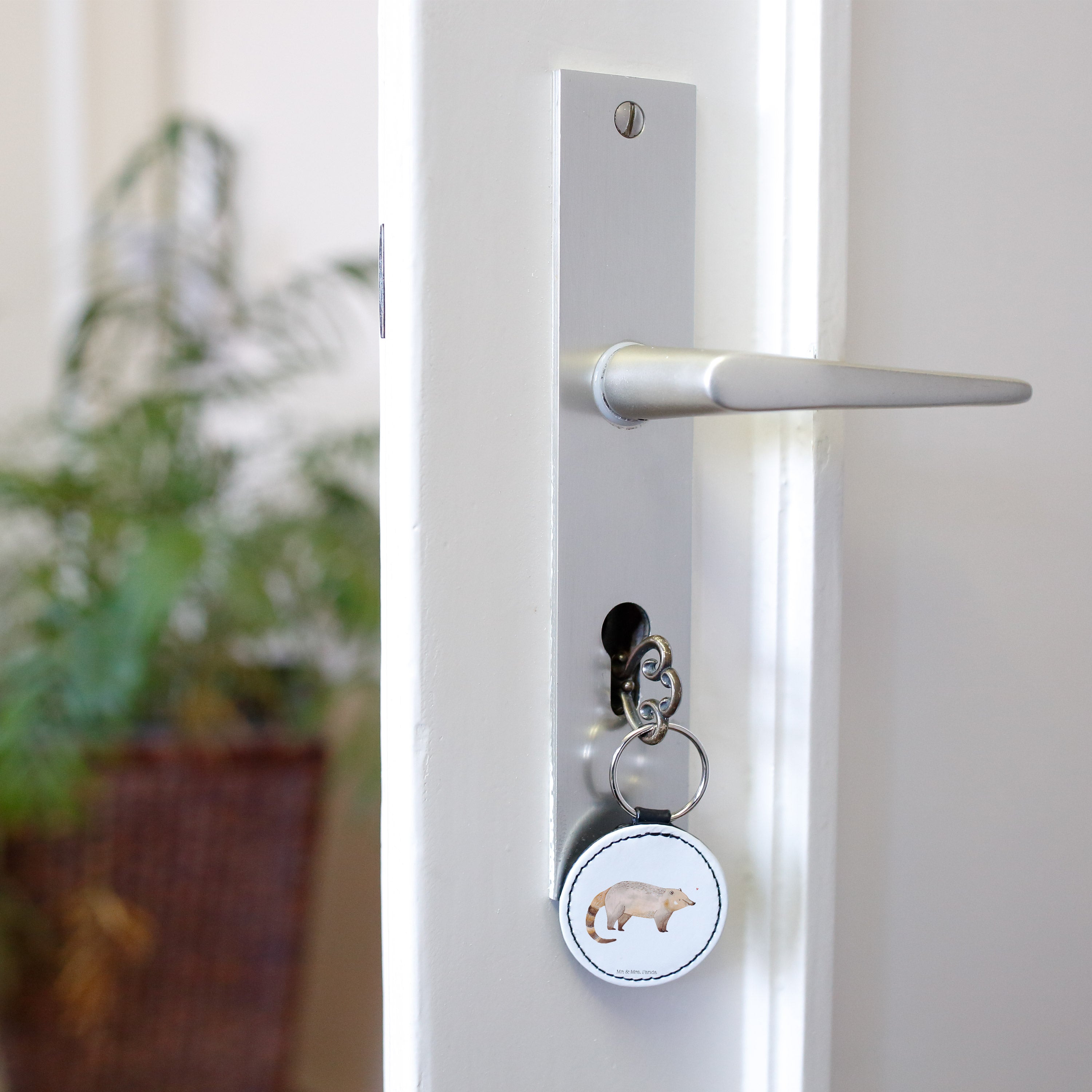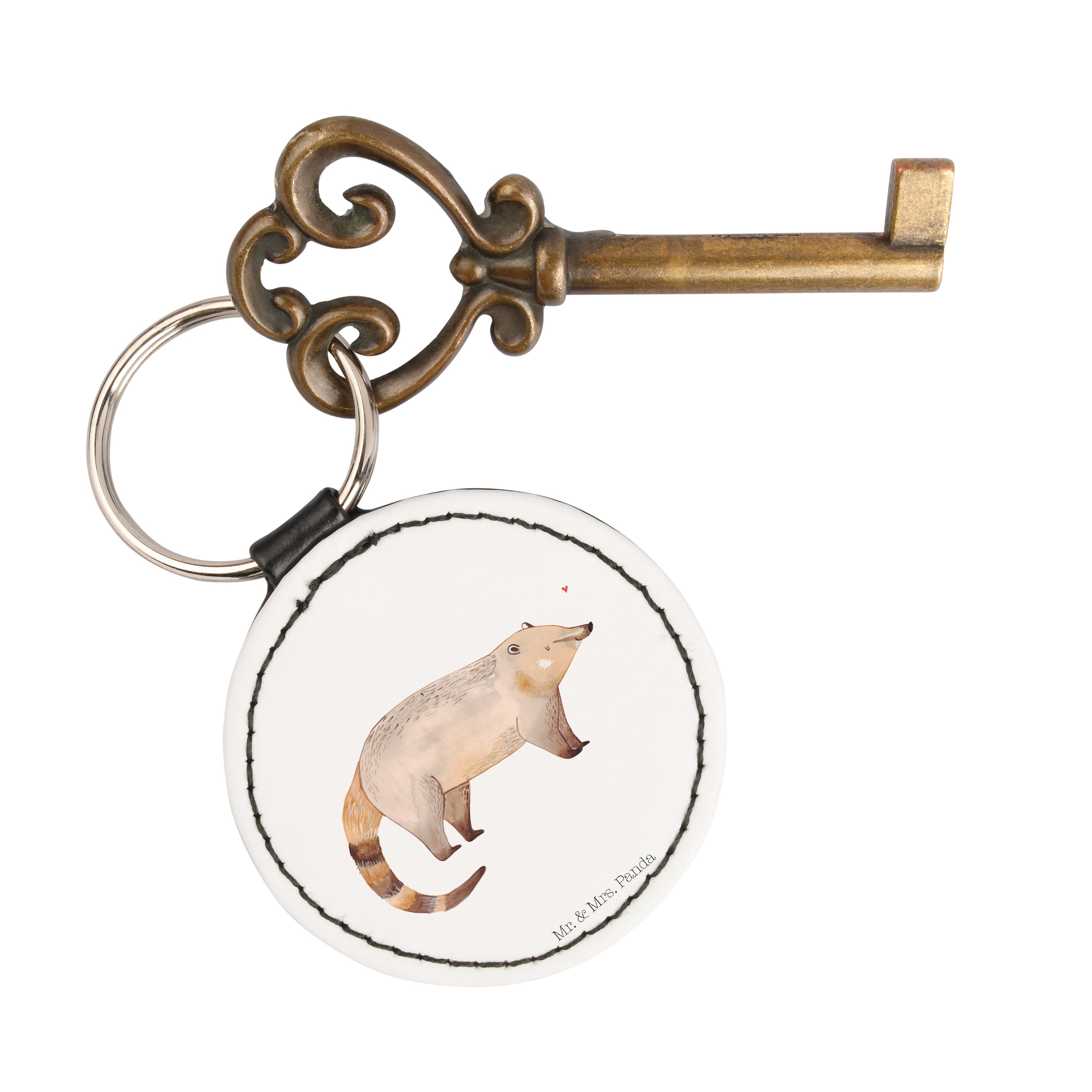Rund Schlüsselanhänger Nasenbär - Weiß