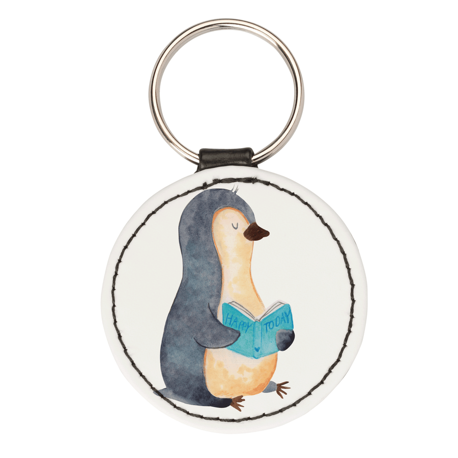 Rund Schlüsselanhänger Pinguin Buch - Weiß