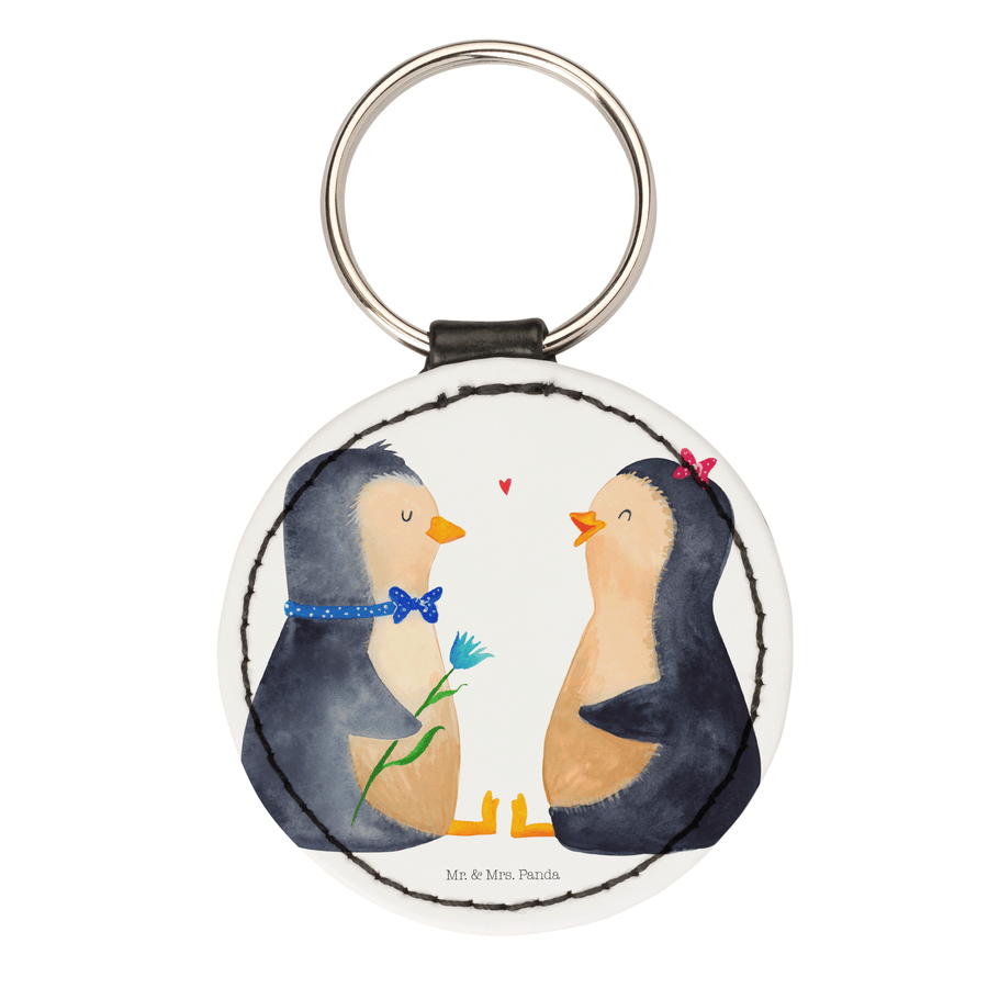 Rund Schlüsselanhänger Pinguin Pärchen - Weiß