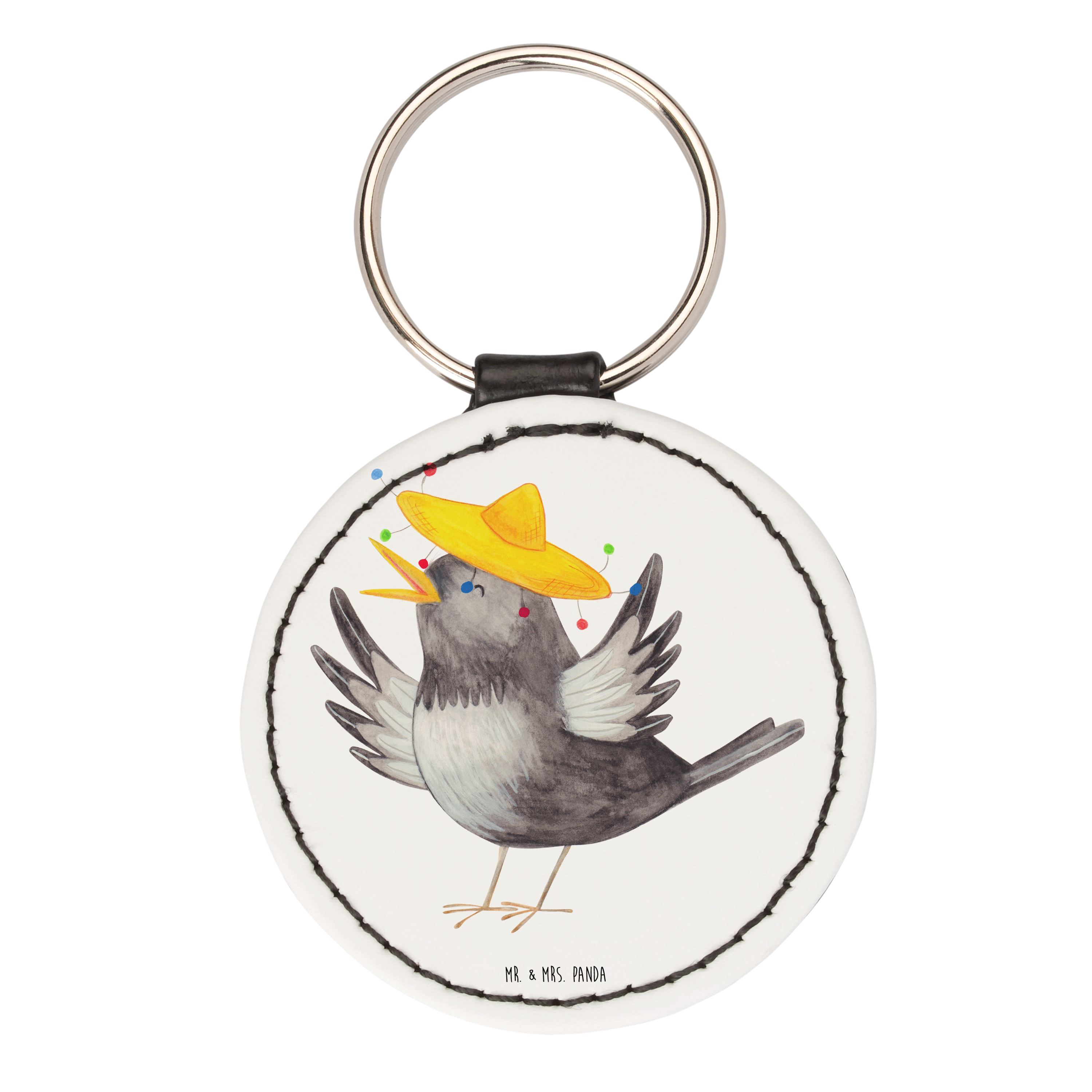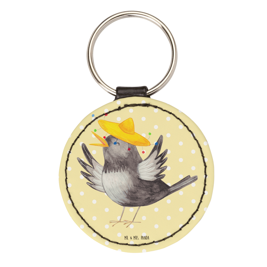 Rund Schlüsselanhänger Rabe mit Sombrero - Gelb Pastell