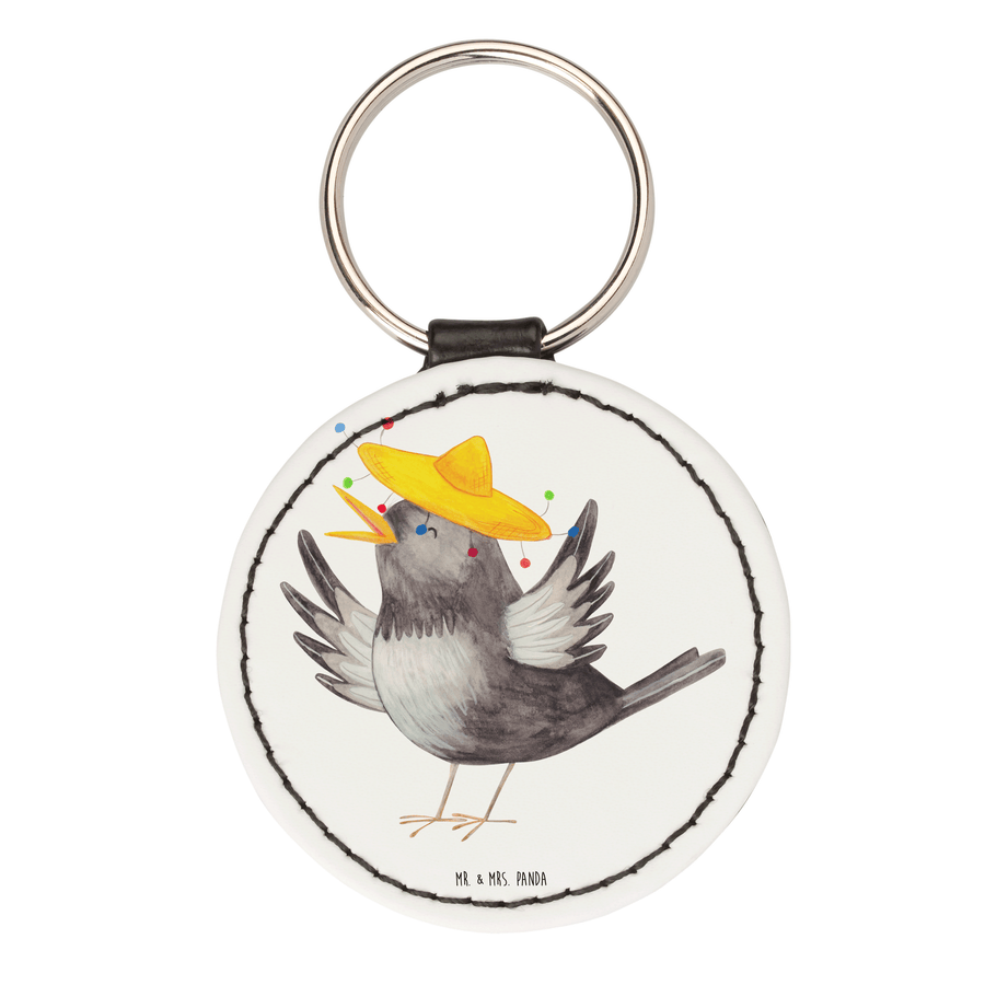 Rund Schlüsselanhänger Rabe mit Sombrero - Weiß