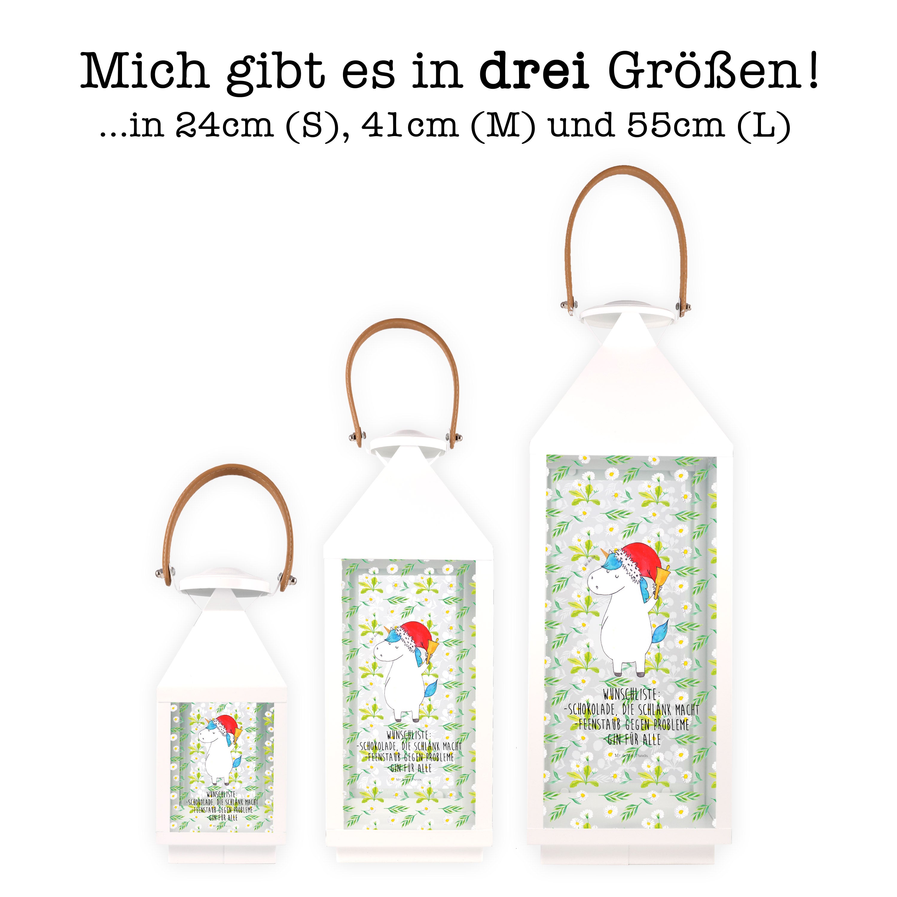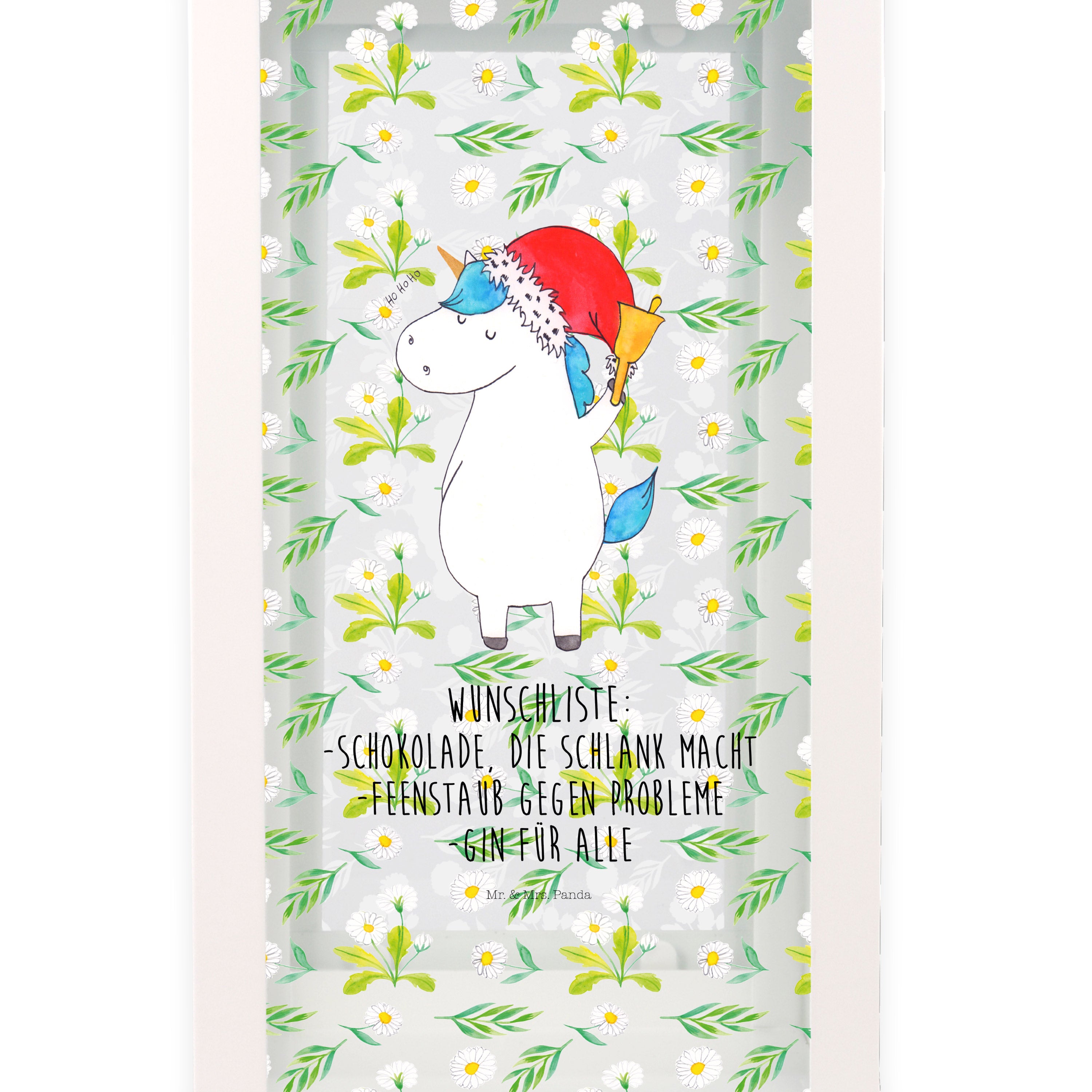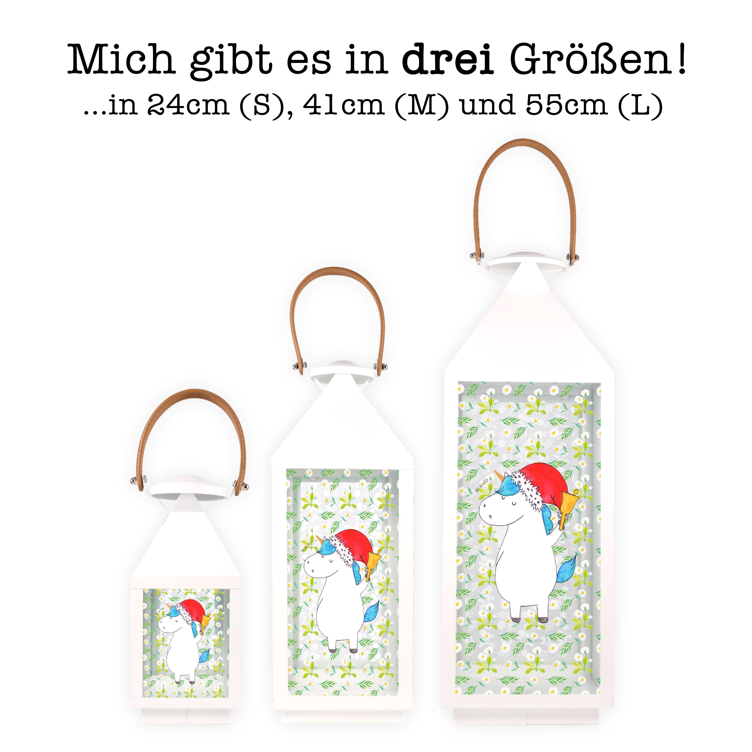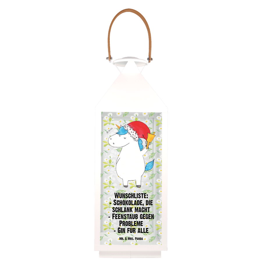 Deko Laterne Einhorn Weihnachtsmann - XL - mit Spruch
