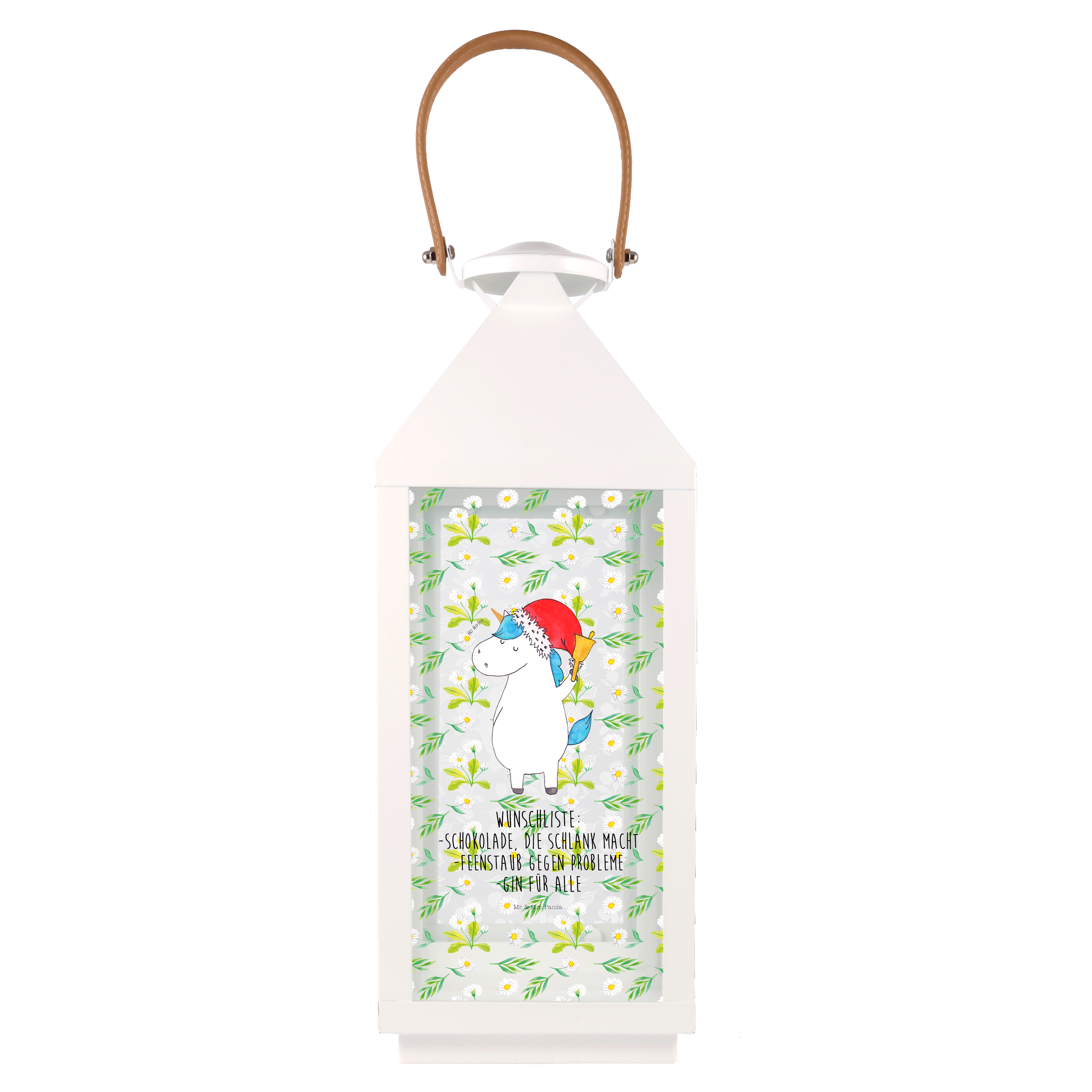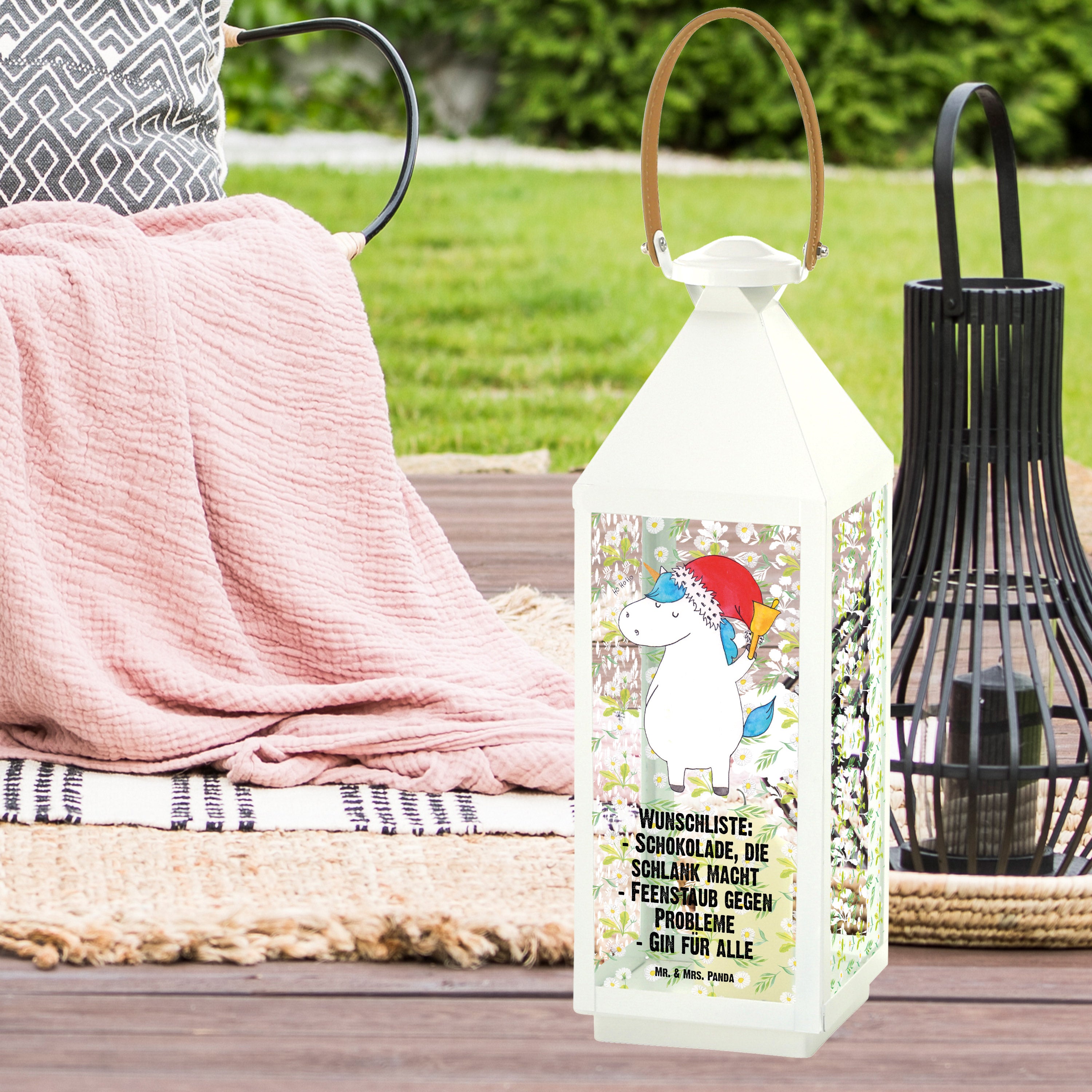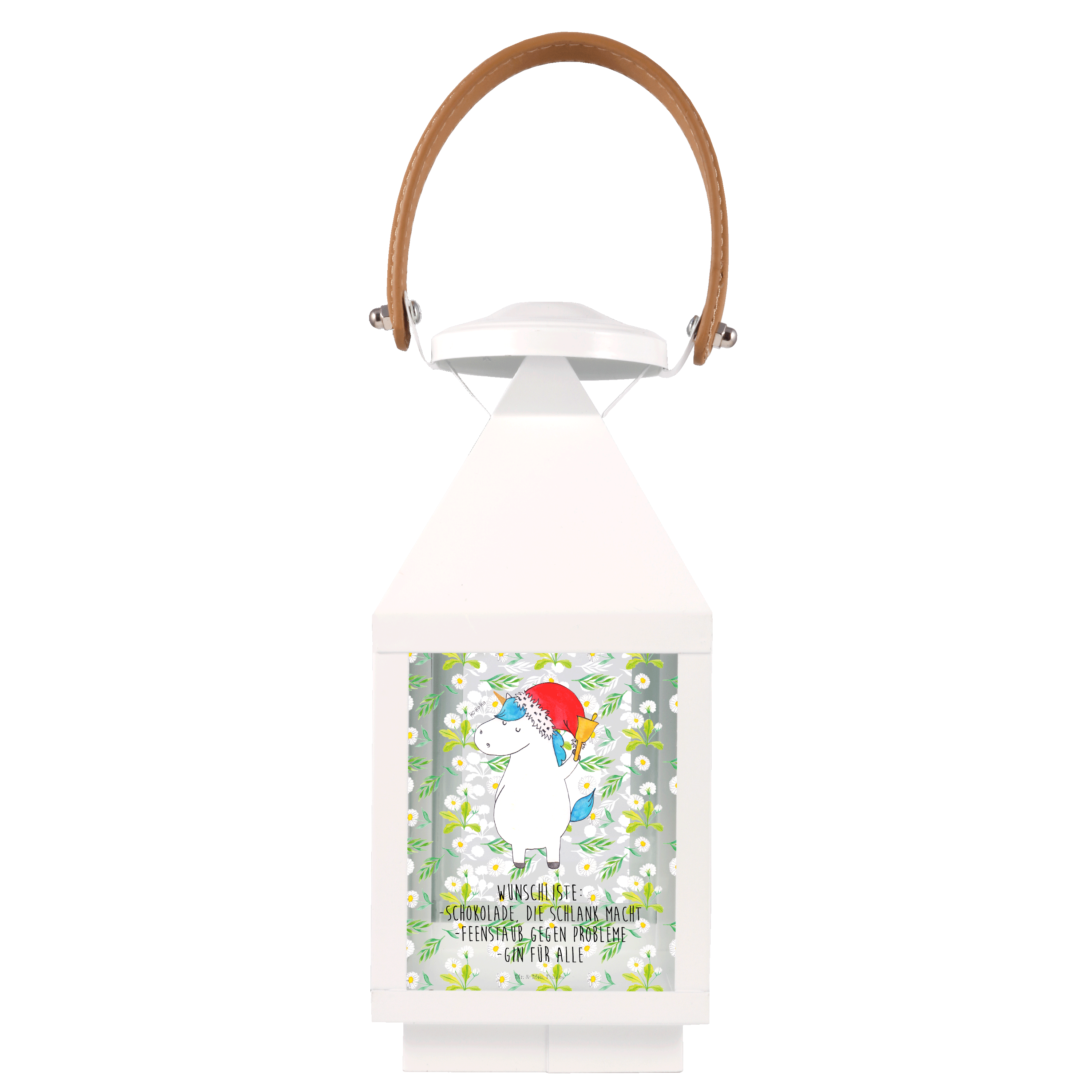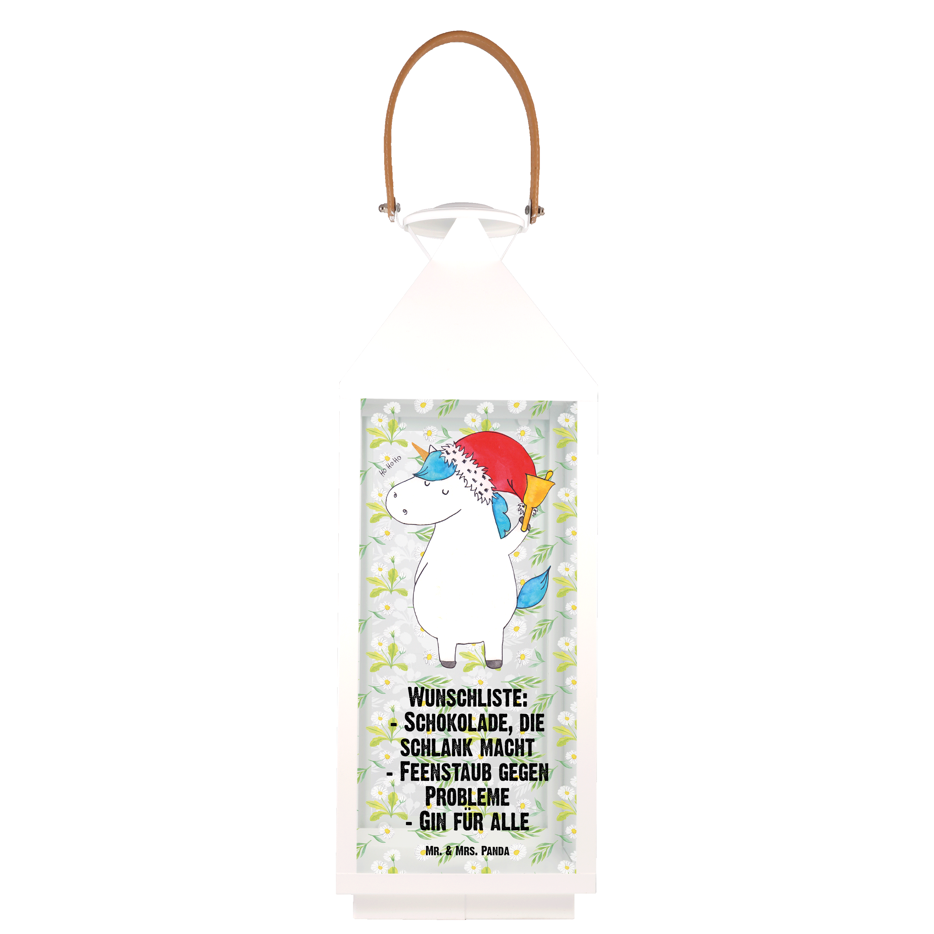 Deko Laterne Einhorn Weihnachtsmann - XL - mit Spruch