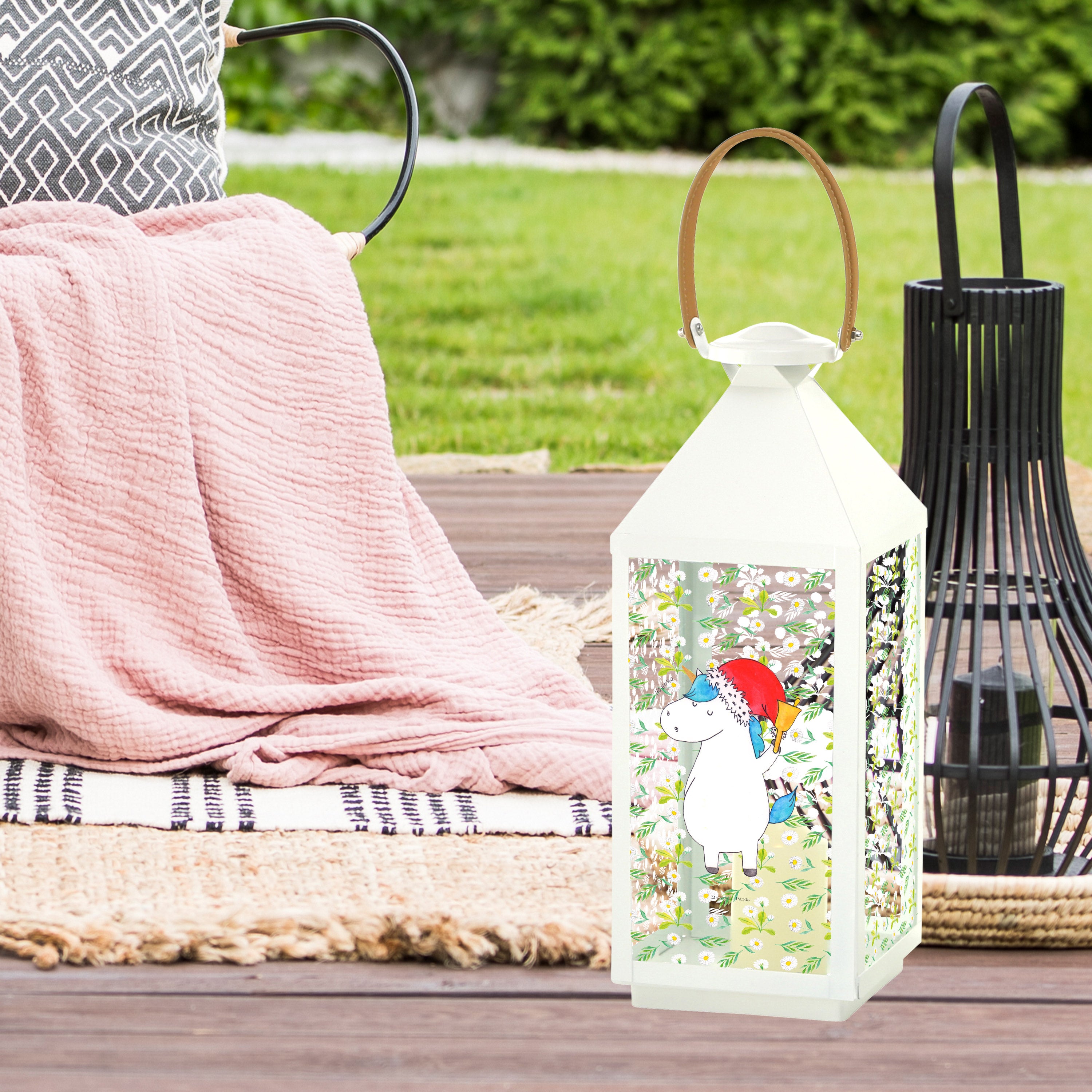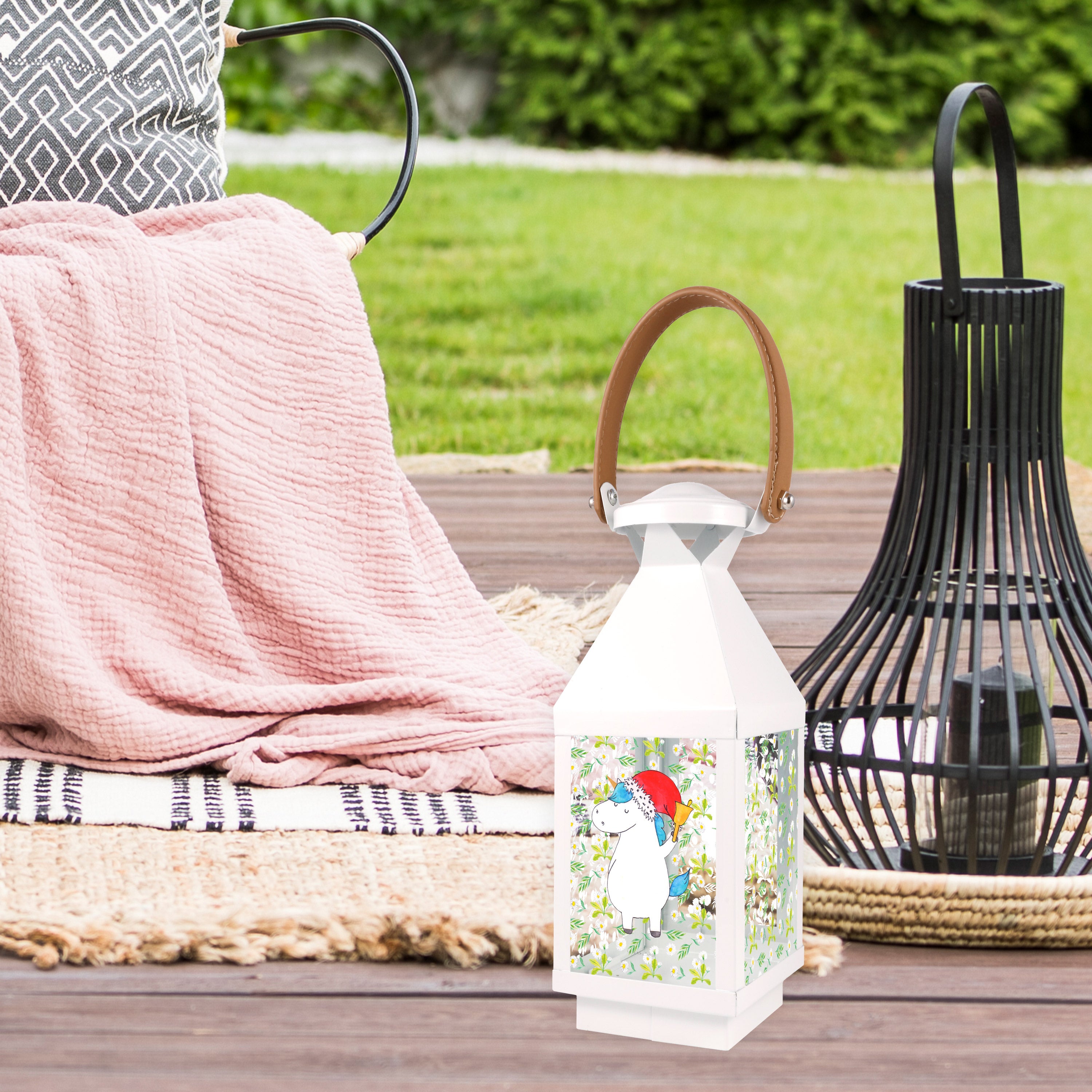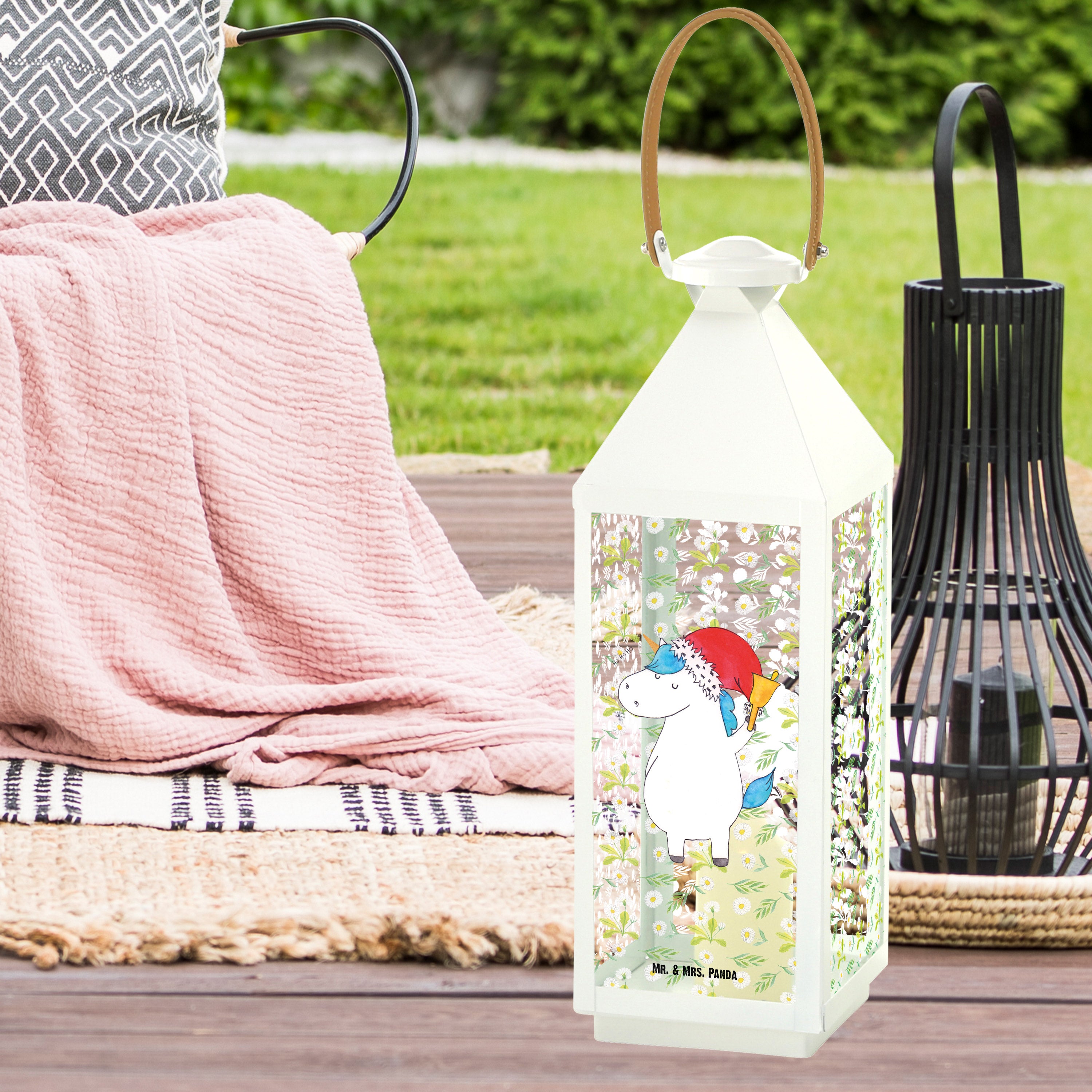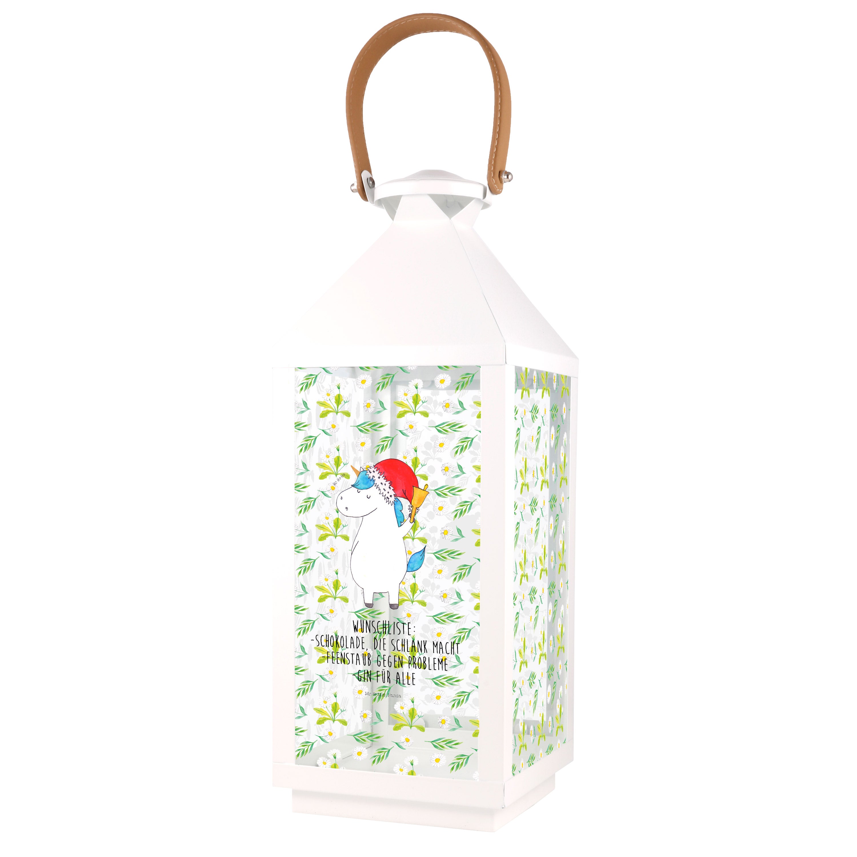 Deko Laterne Einhorn Weihnachtsmann - XL - mit Spruch
