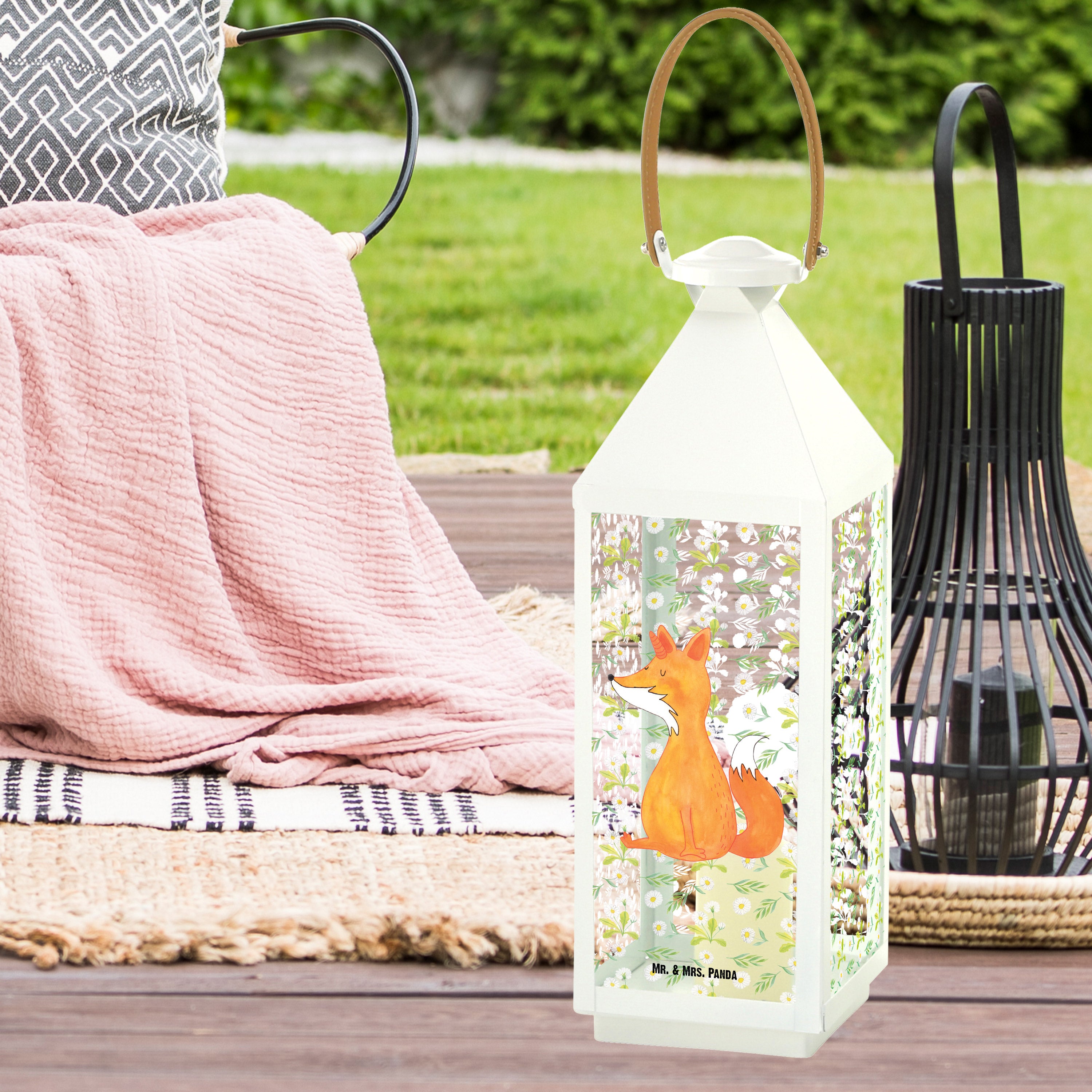 Deko Laterne Fuchshörnchen Wunsch - S - mit Spruch