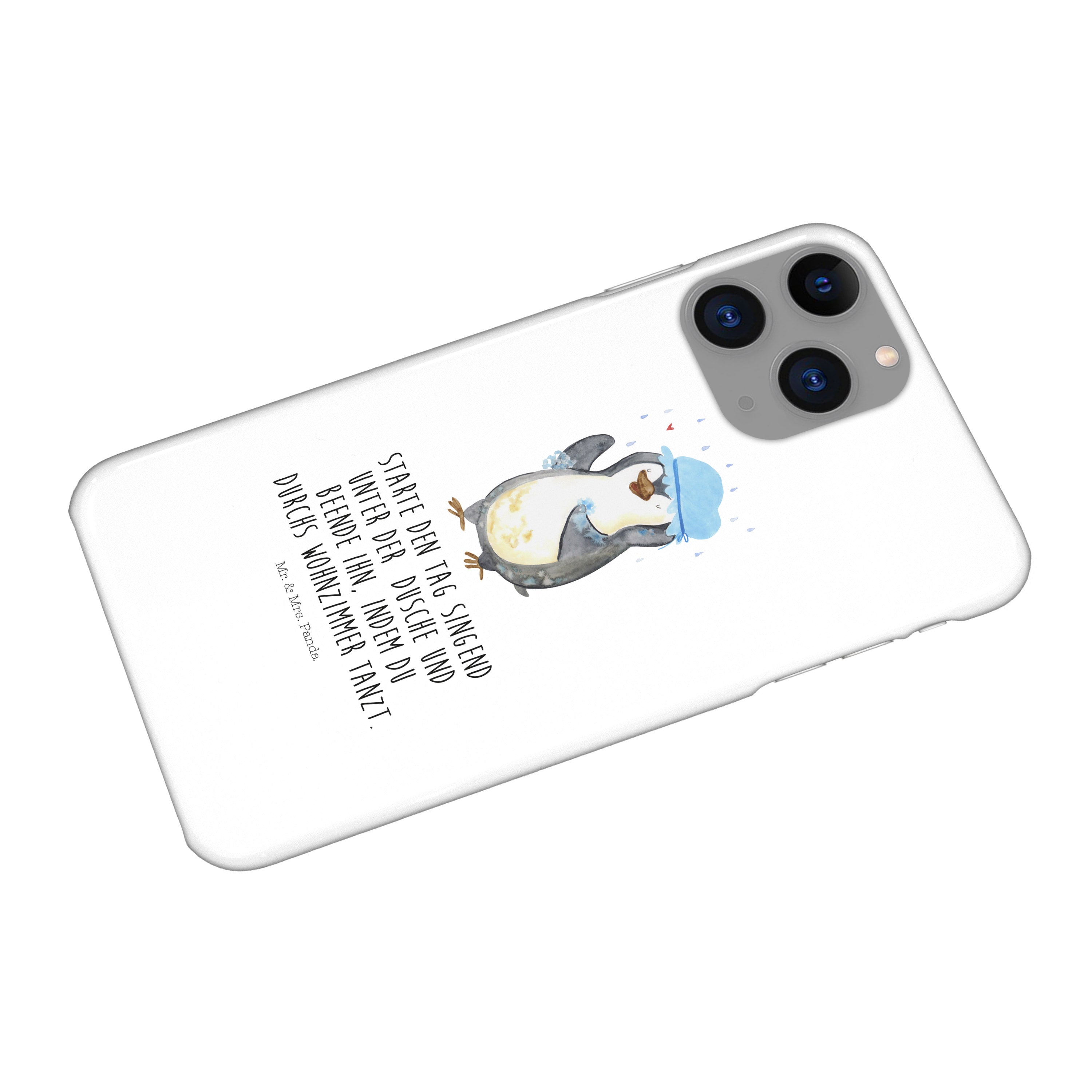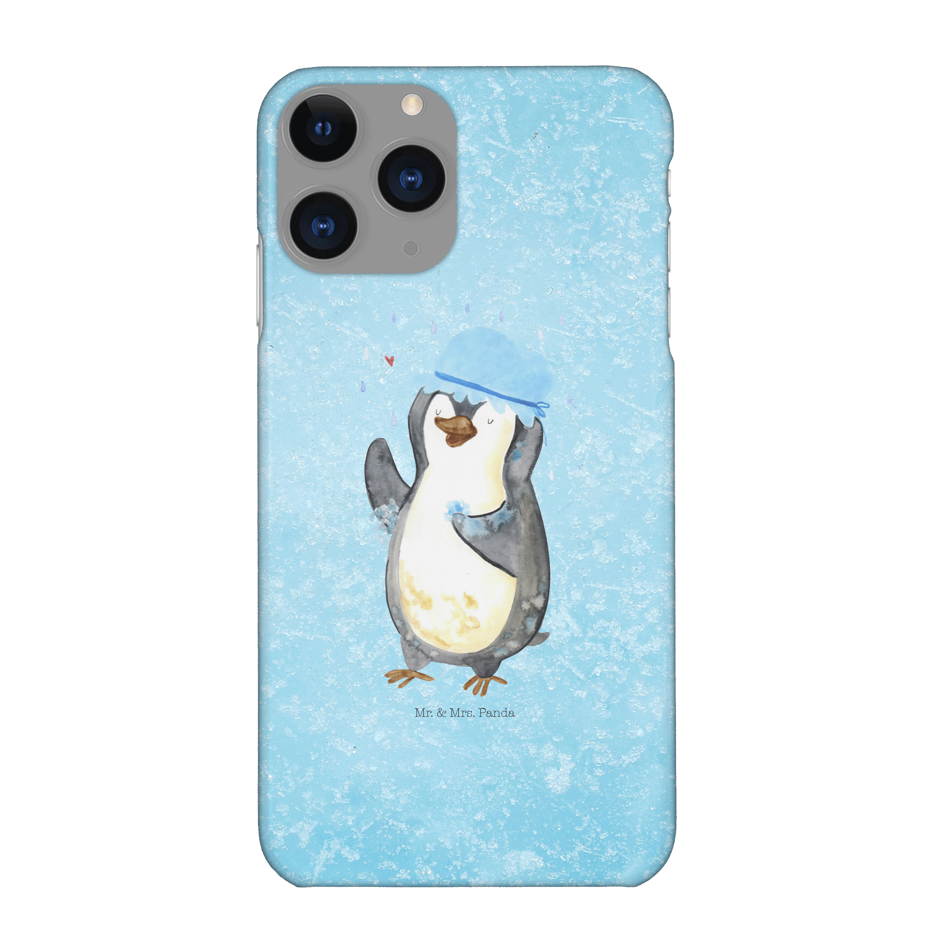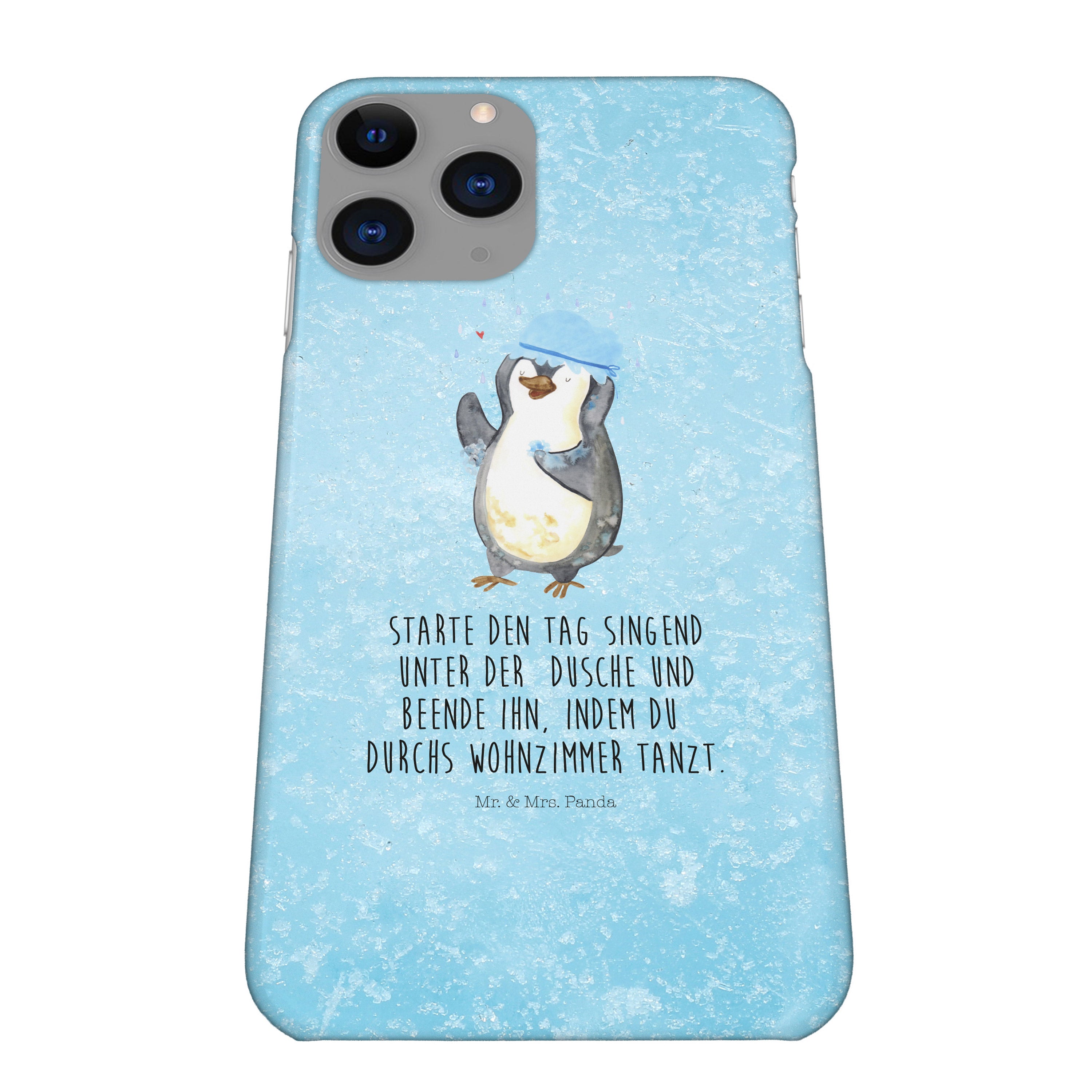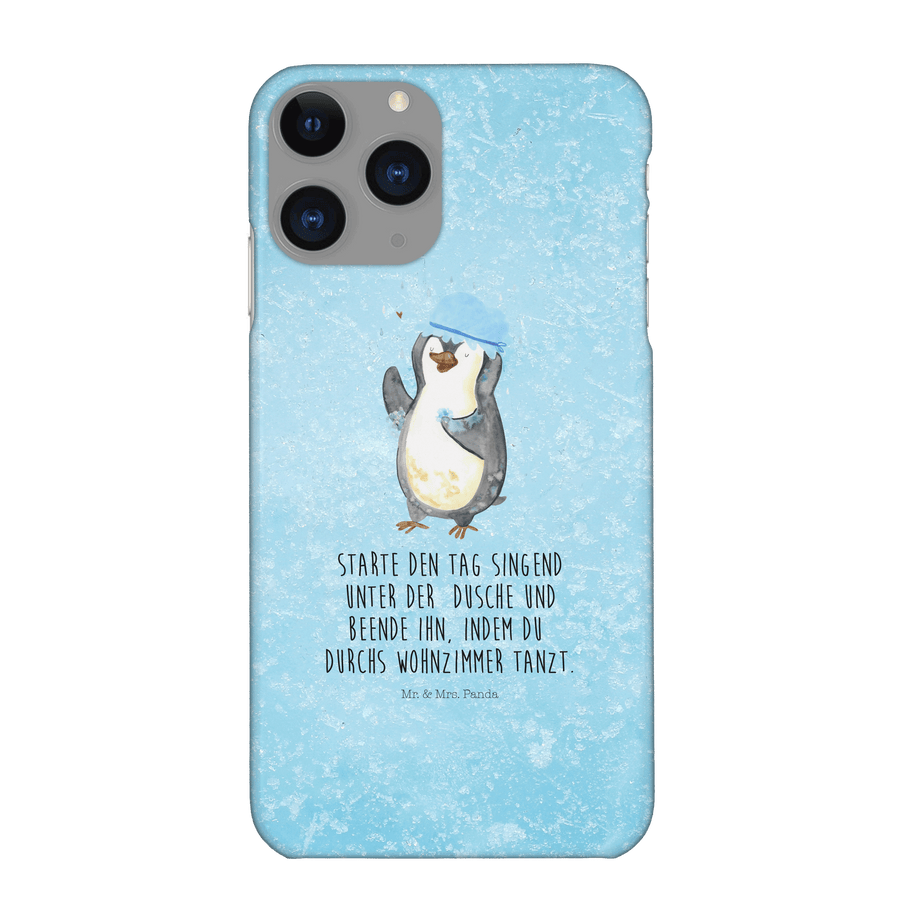 Iphone 11 Pro Handyhülle Pinguin duscht - mit Spruch - Eisblau