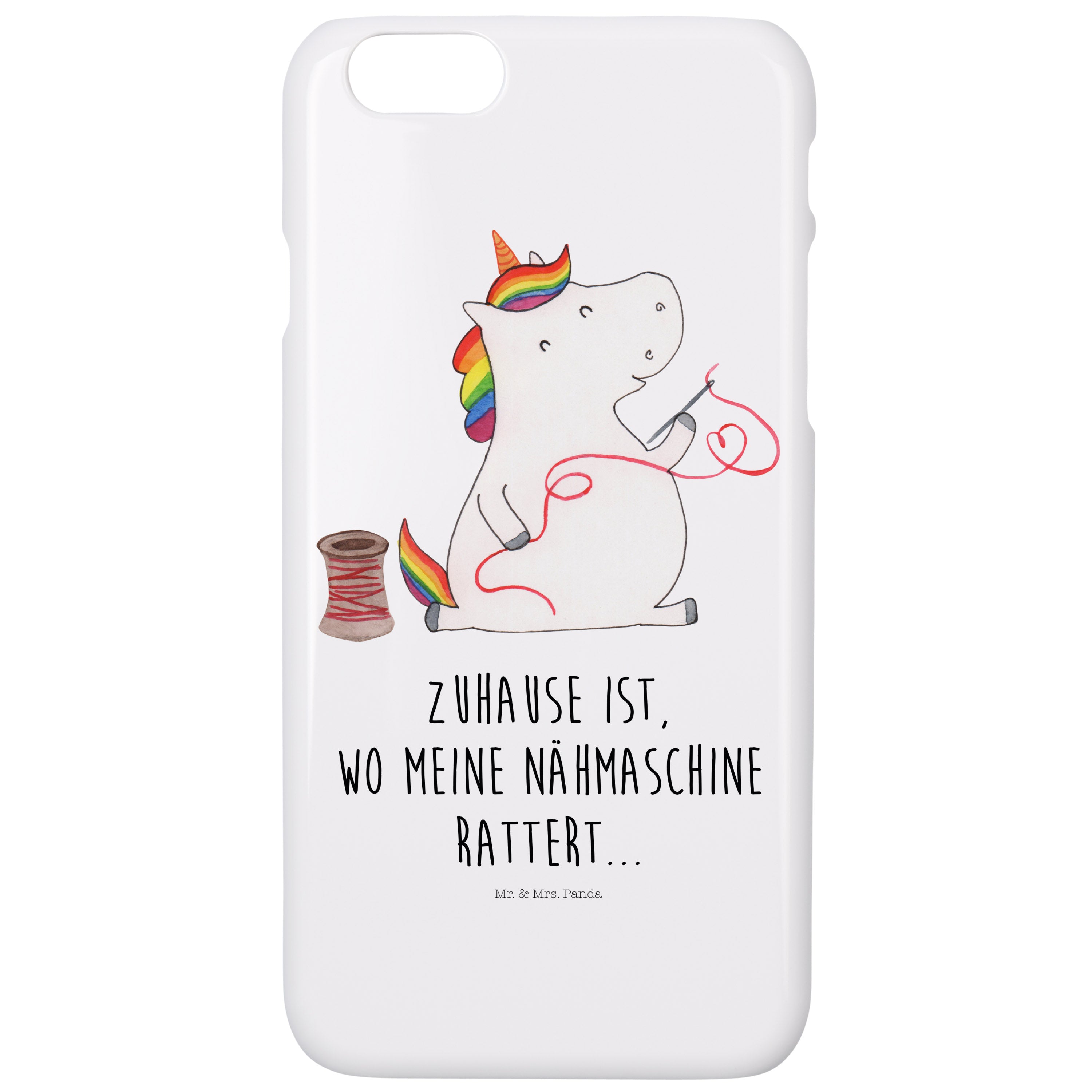 Iphone 7 / 7S Handyhülle Einhorn Näherin - mit Spruch - Rot Pastell
