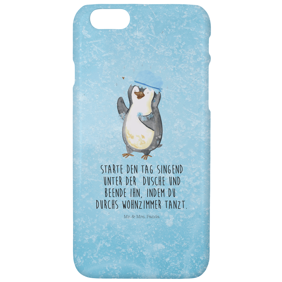 Iphone 8 Handyhülle Pinguin duscht - mit Spruch - Eisblau