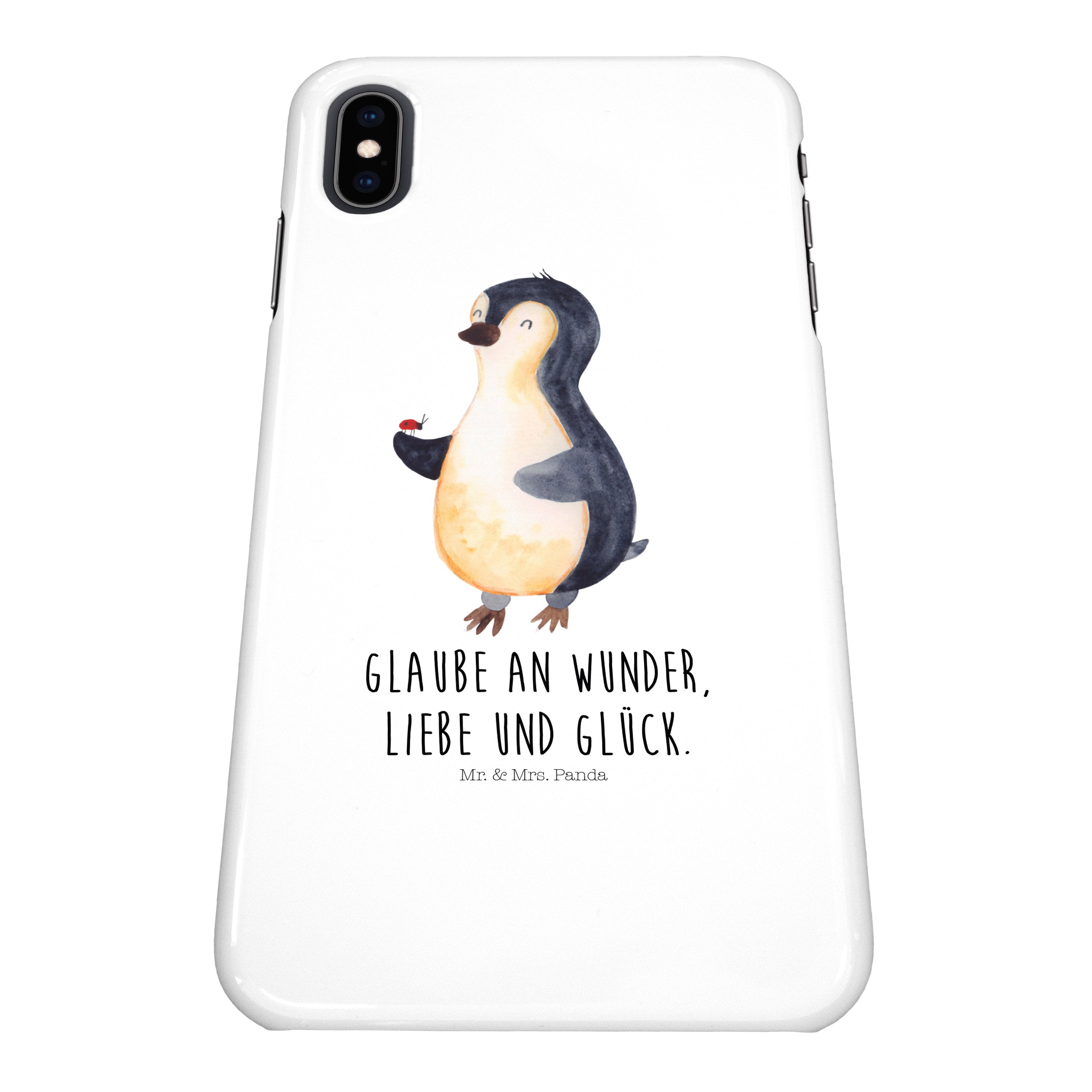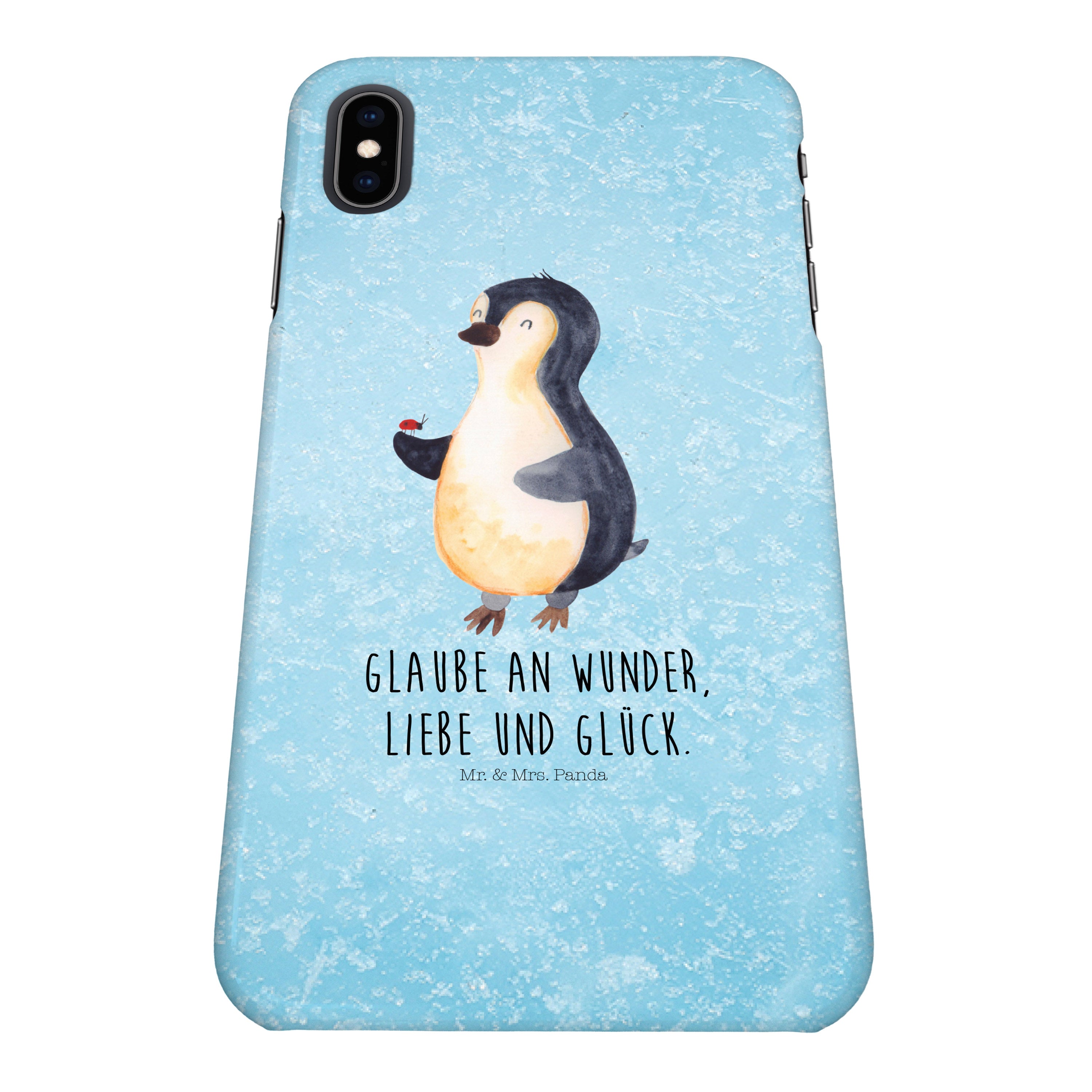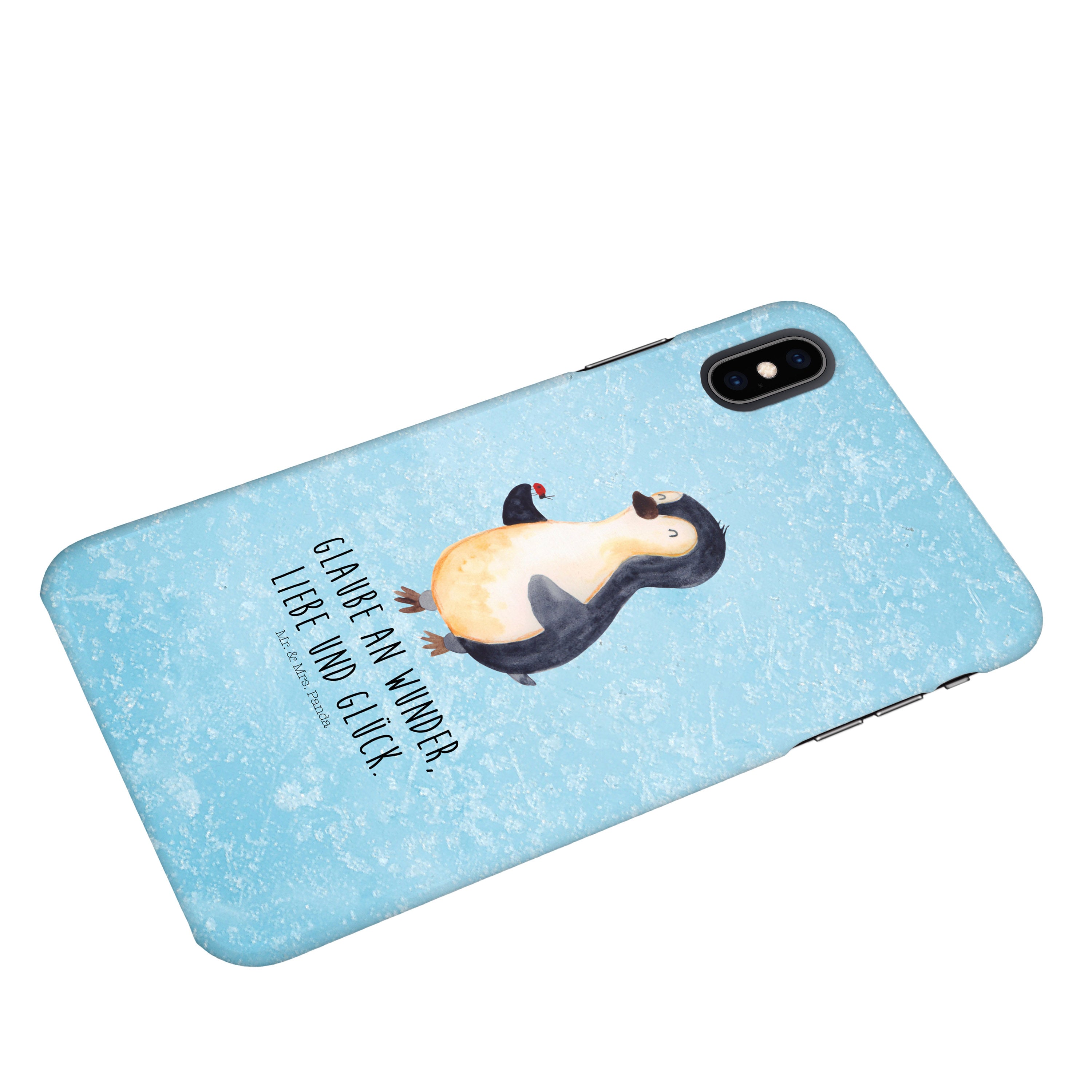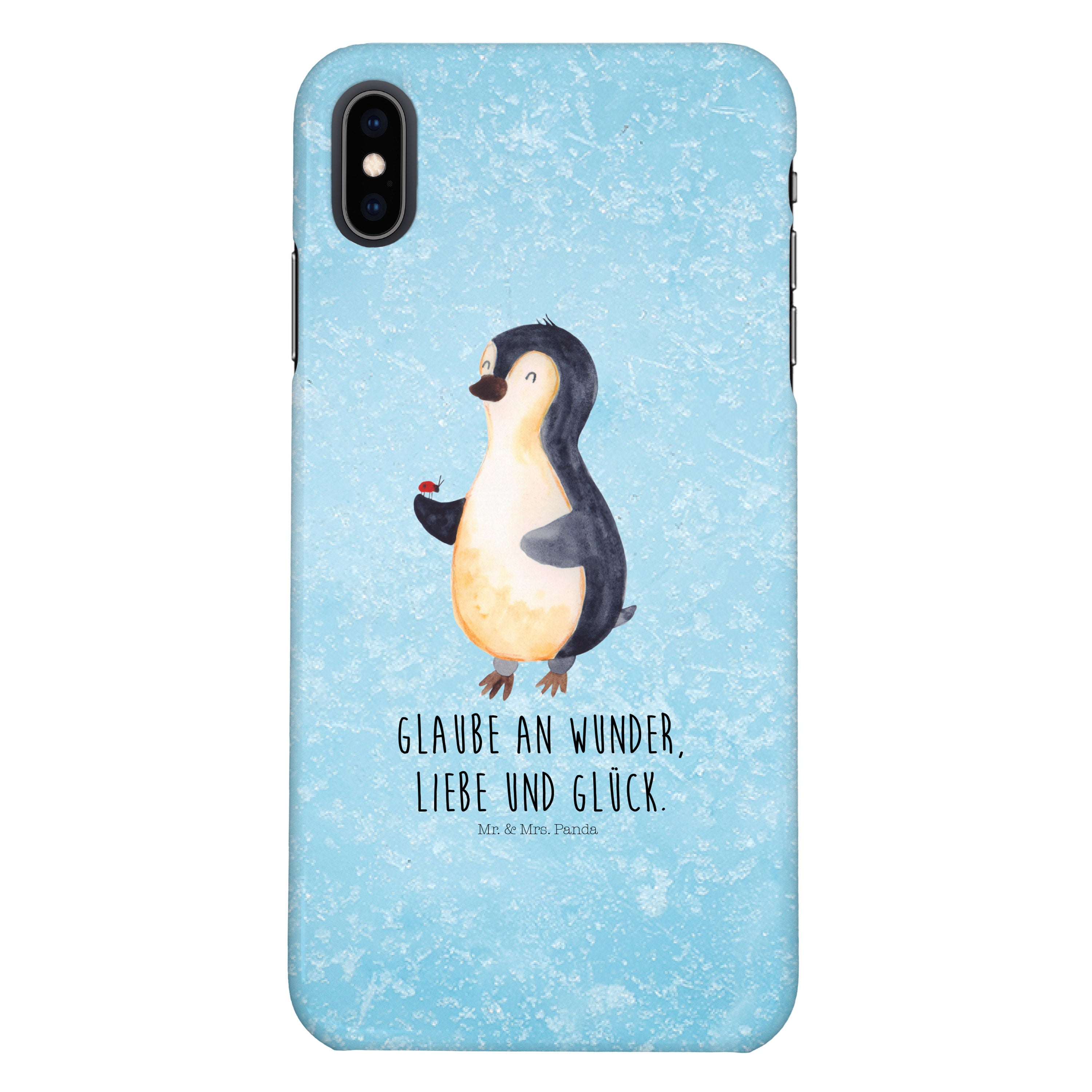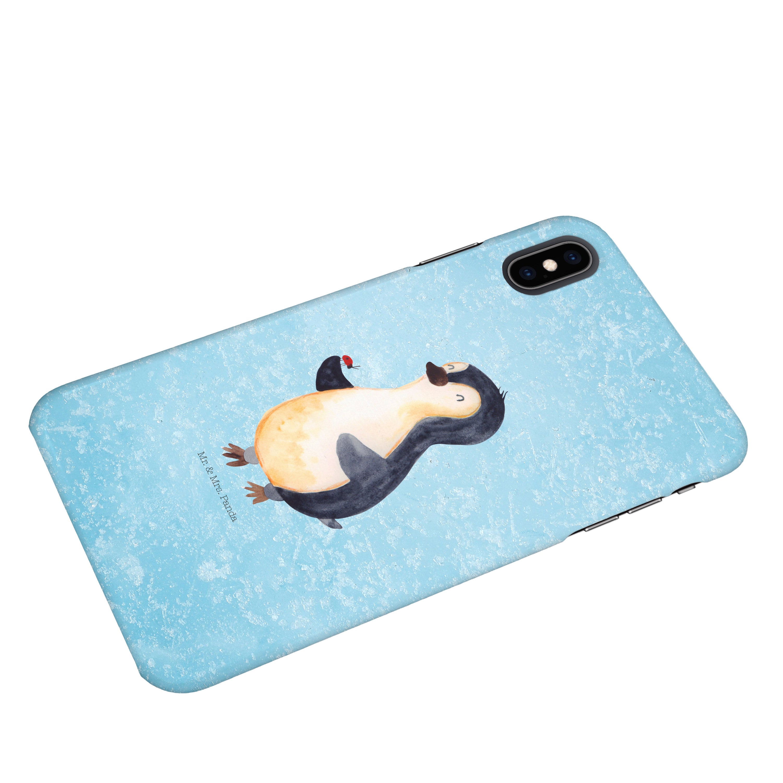 Iphone XS Handyhülle Pinguin Marienkäfer - mit Spruch - Eisblau