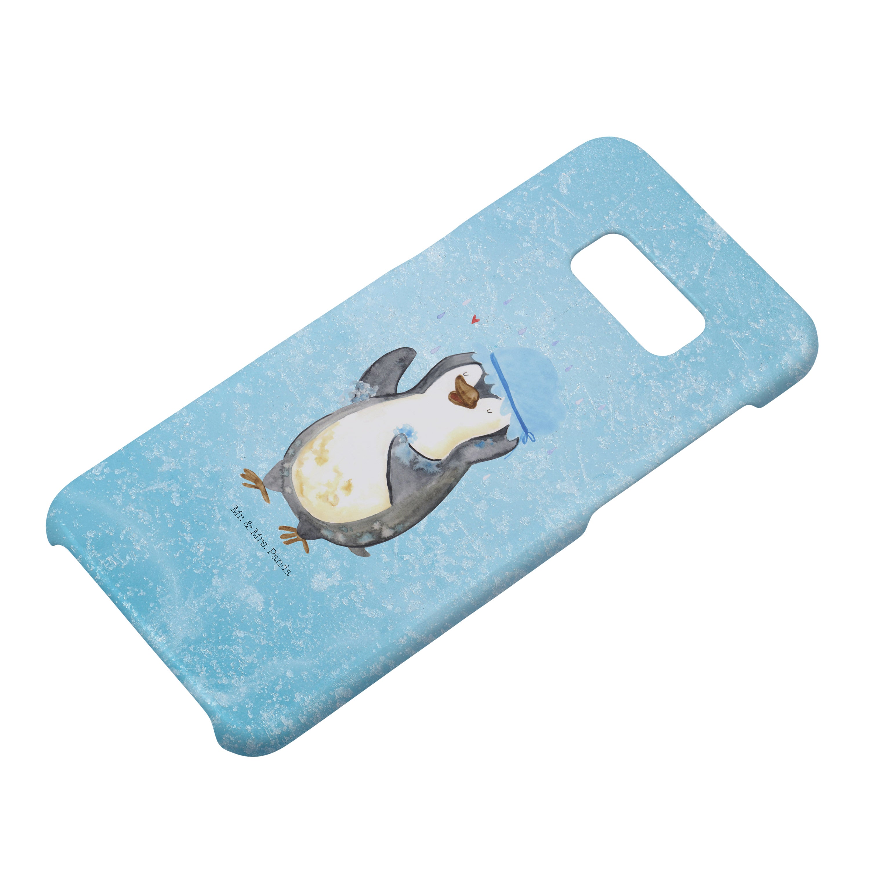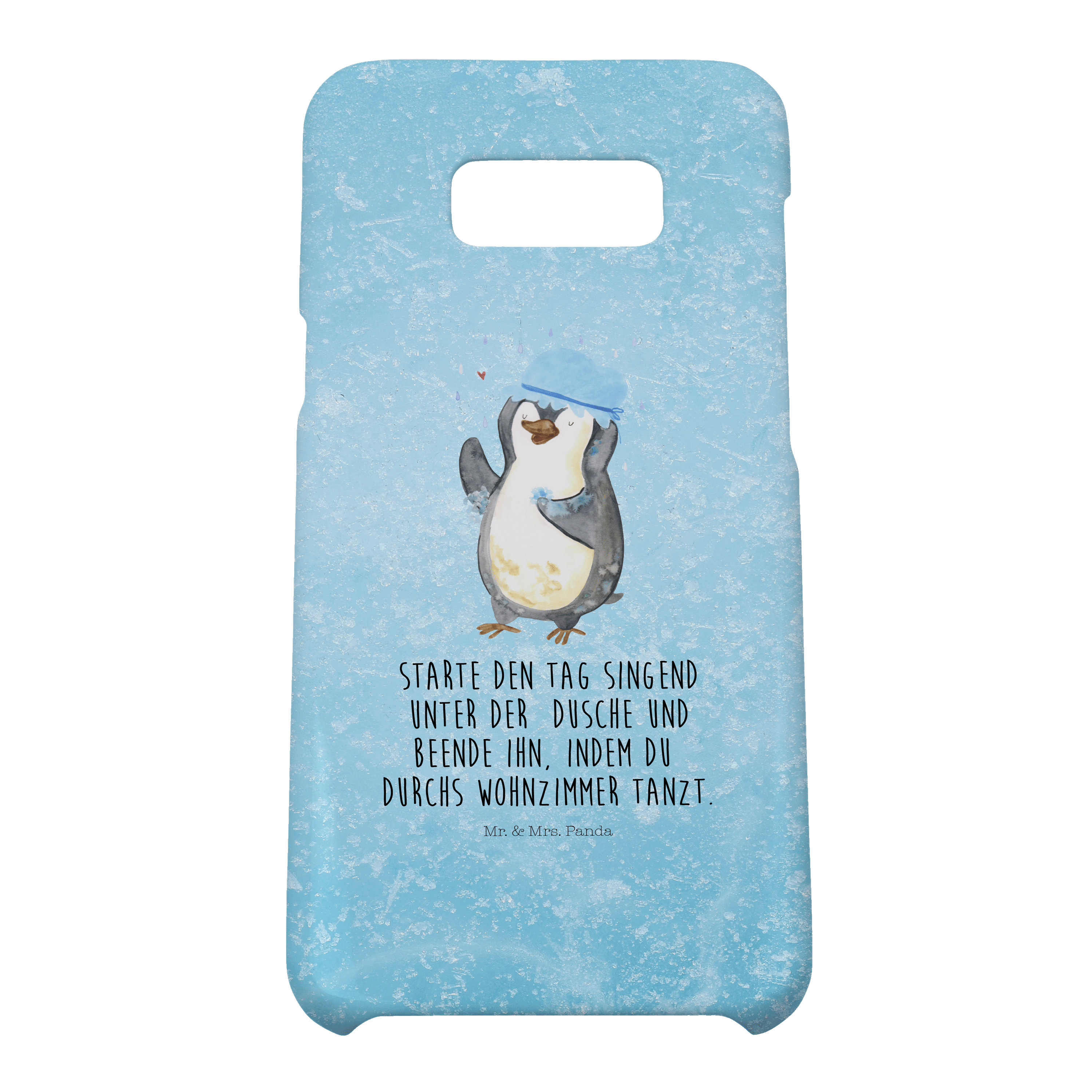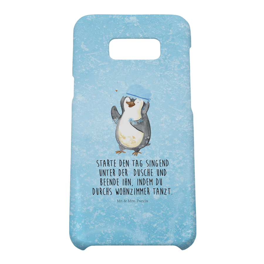 Samsung Galaxy S8 plus Handyhülle Pinguin duscht - mit Spruch - Eisblau