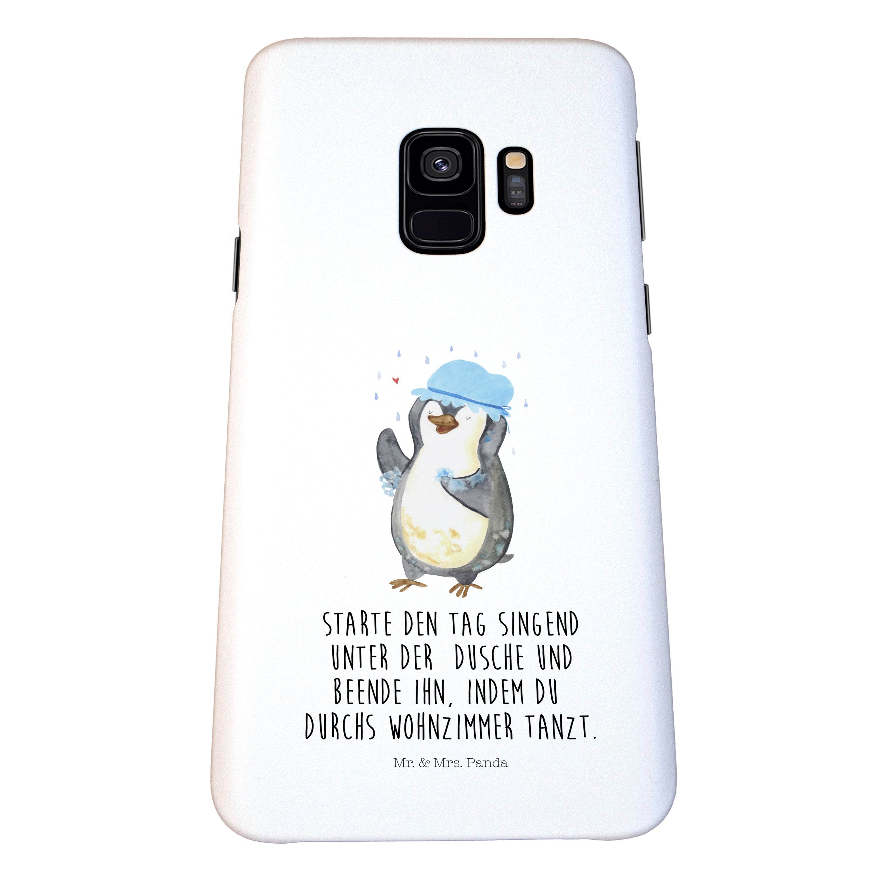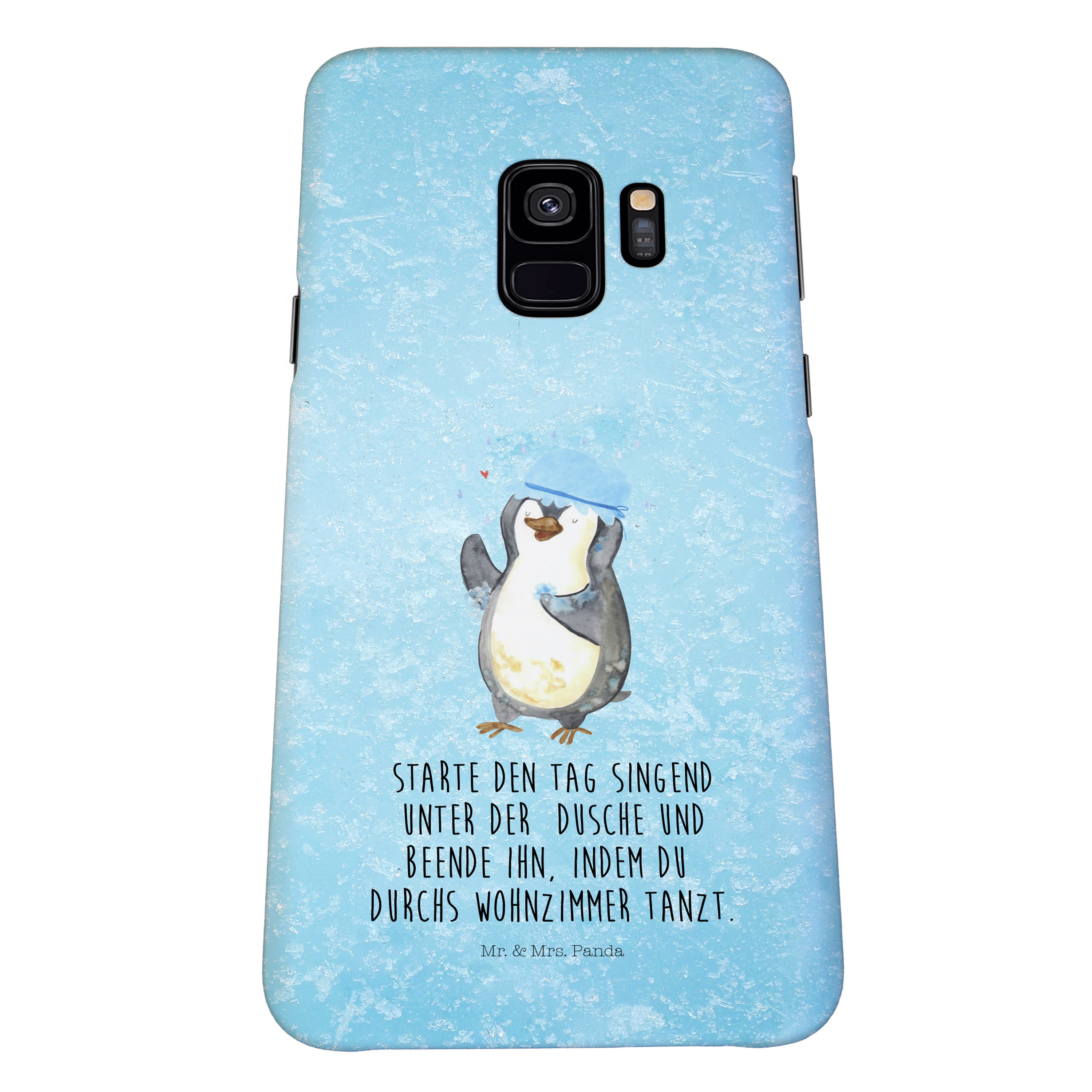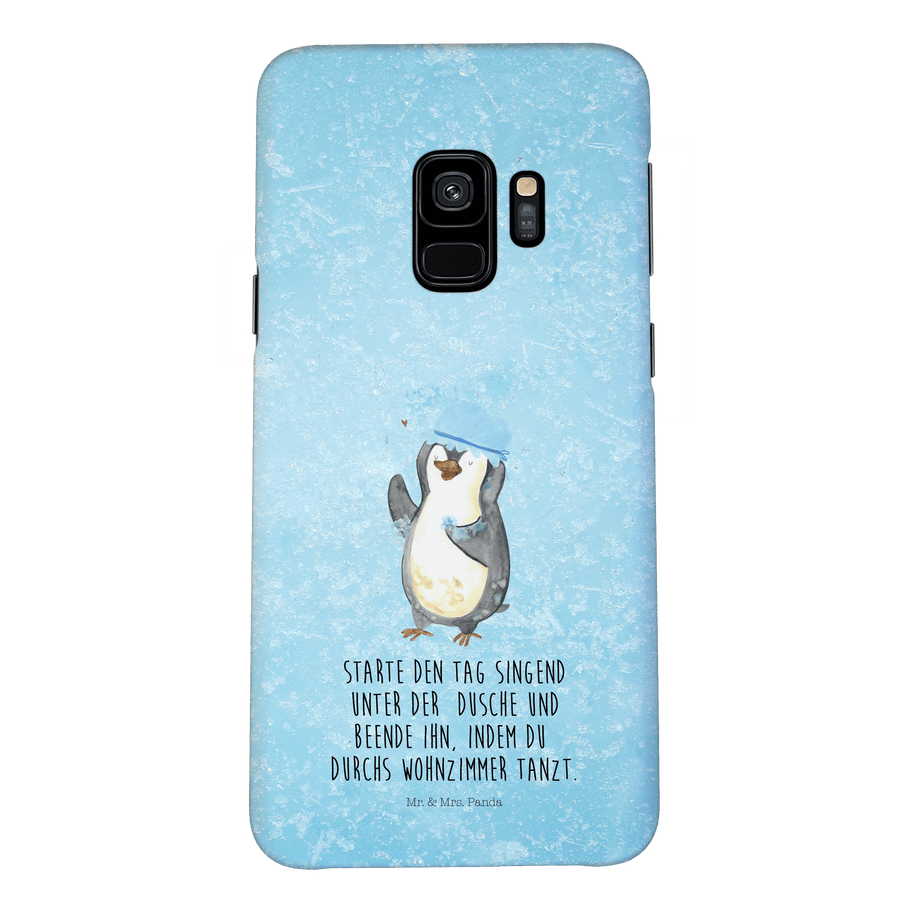 Samsung Galaxy S9 Handyhülle Pinguin duscht - mit Spruch - Eisblau