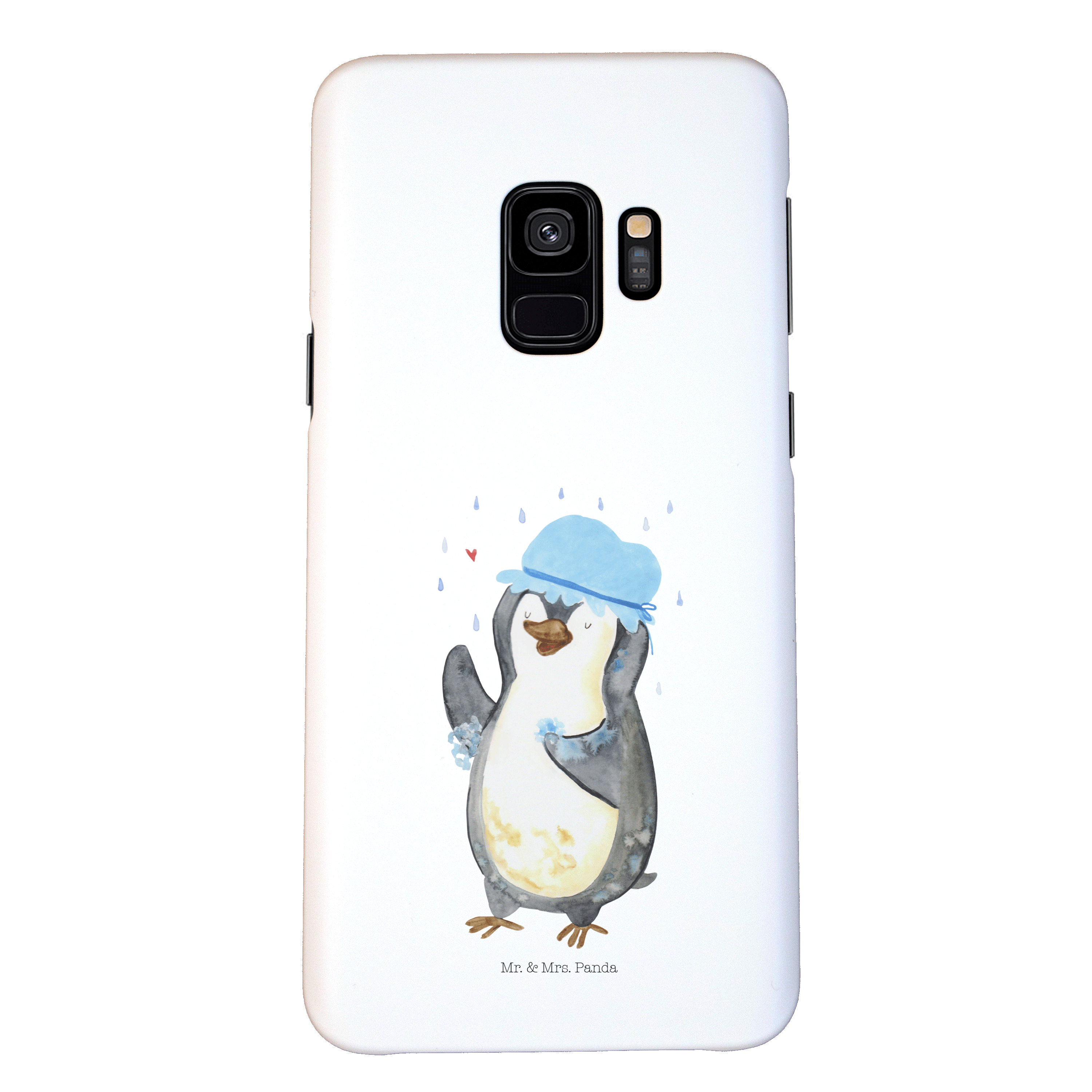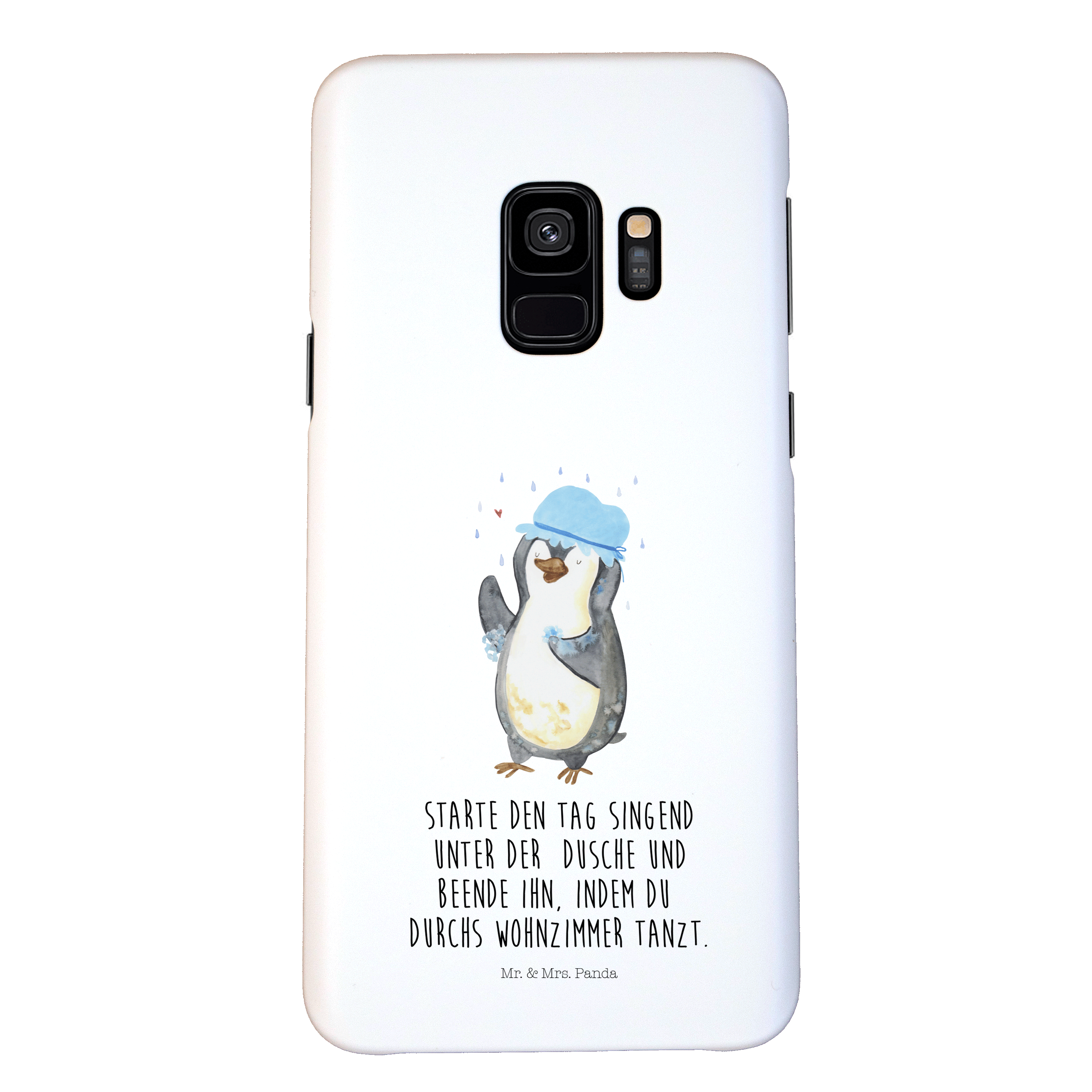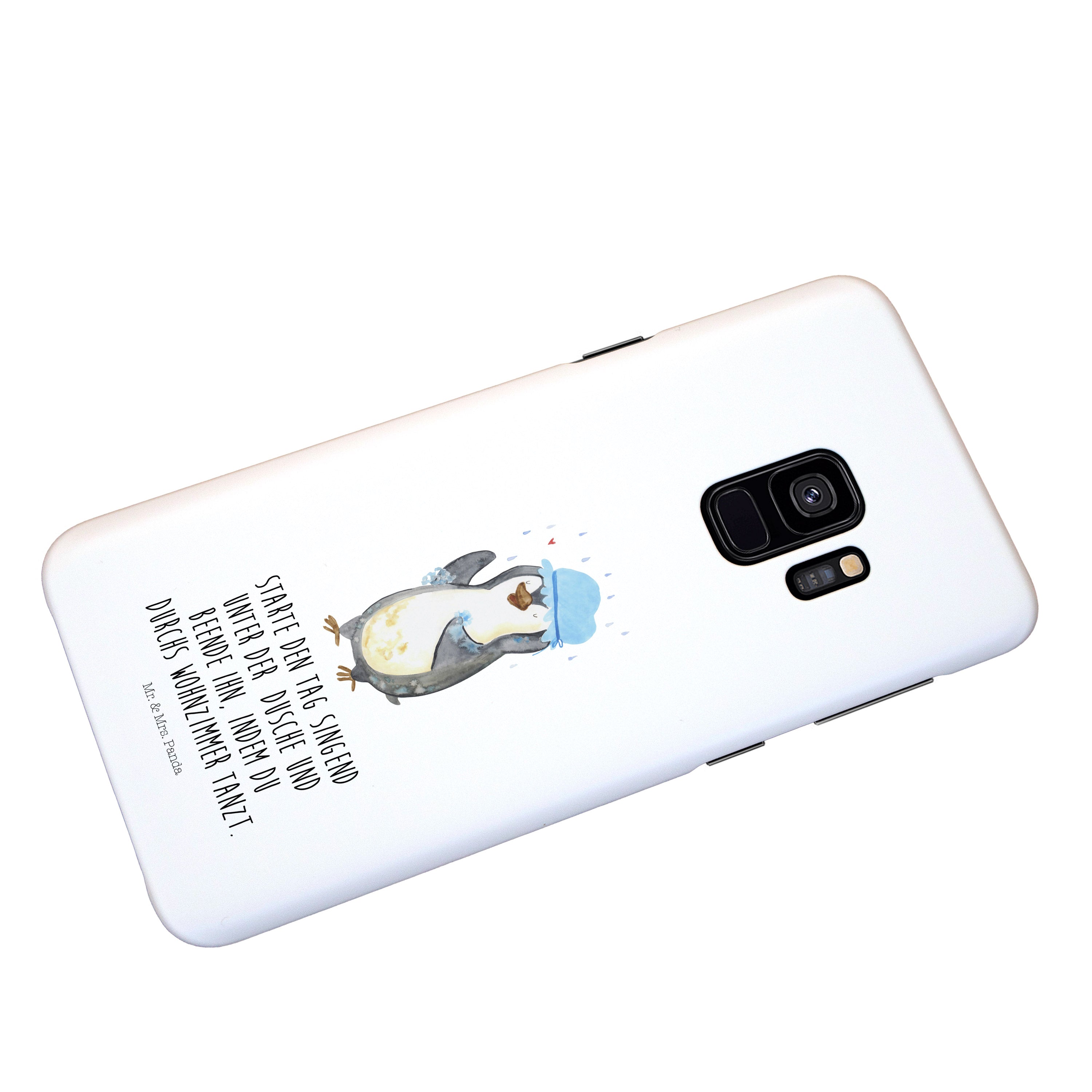 Samsung Galaxy S9 Handyhülle Pinguin duscht - mit Spruch - Eisblau