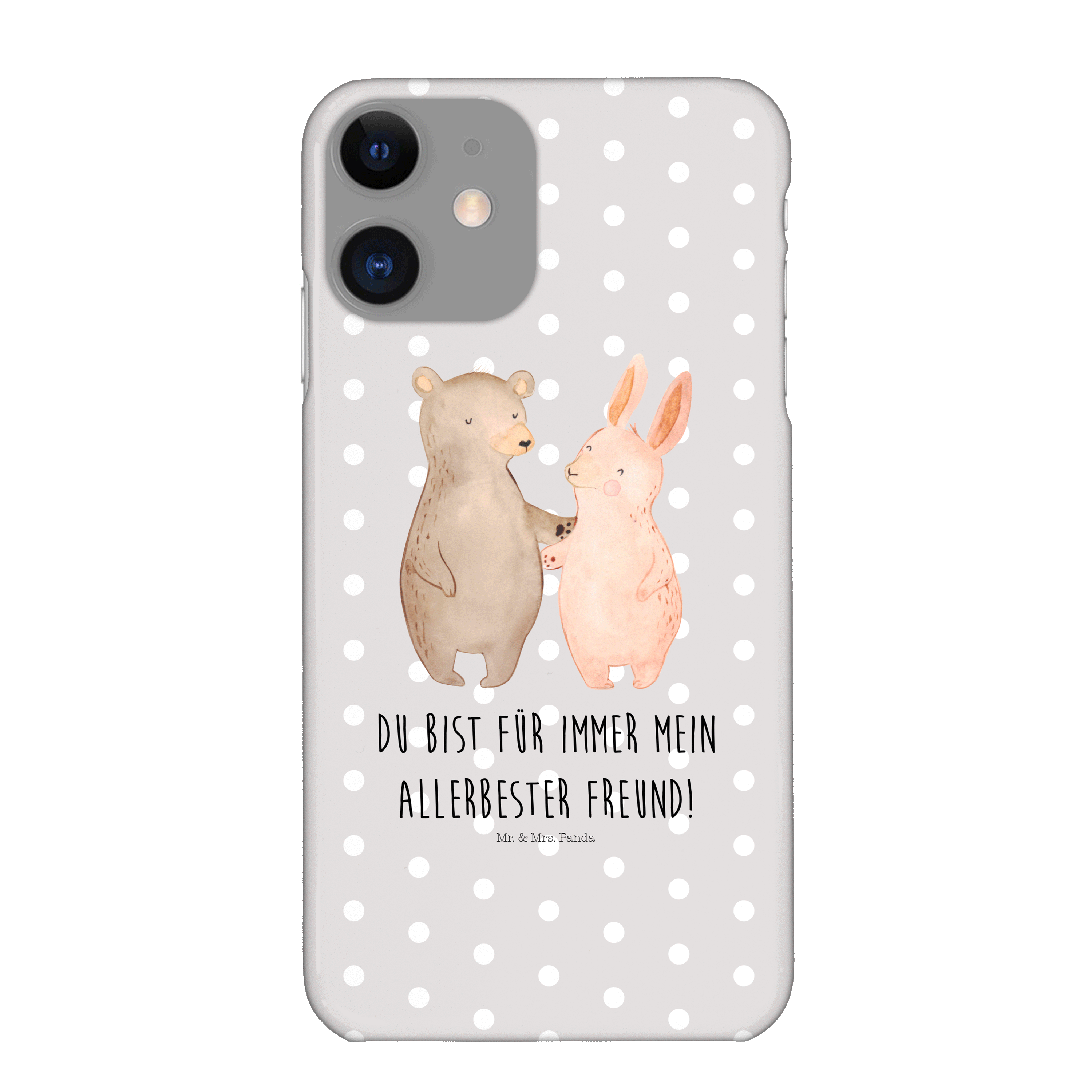 Iphone 11 Handyhülle Bär Hase Umarmen - Grau Pastell