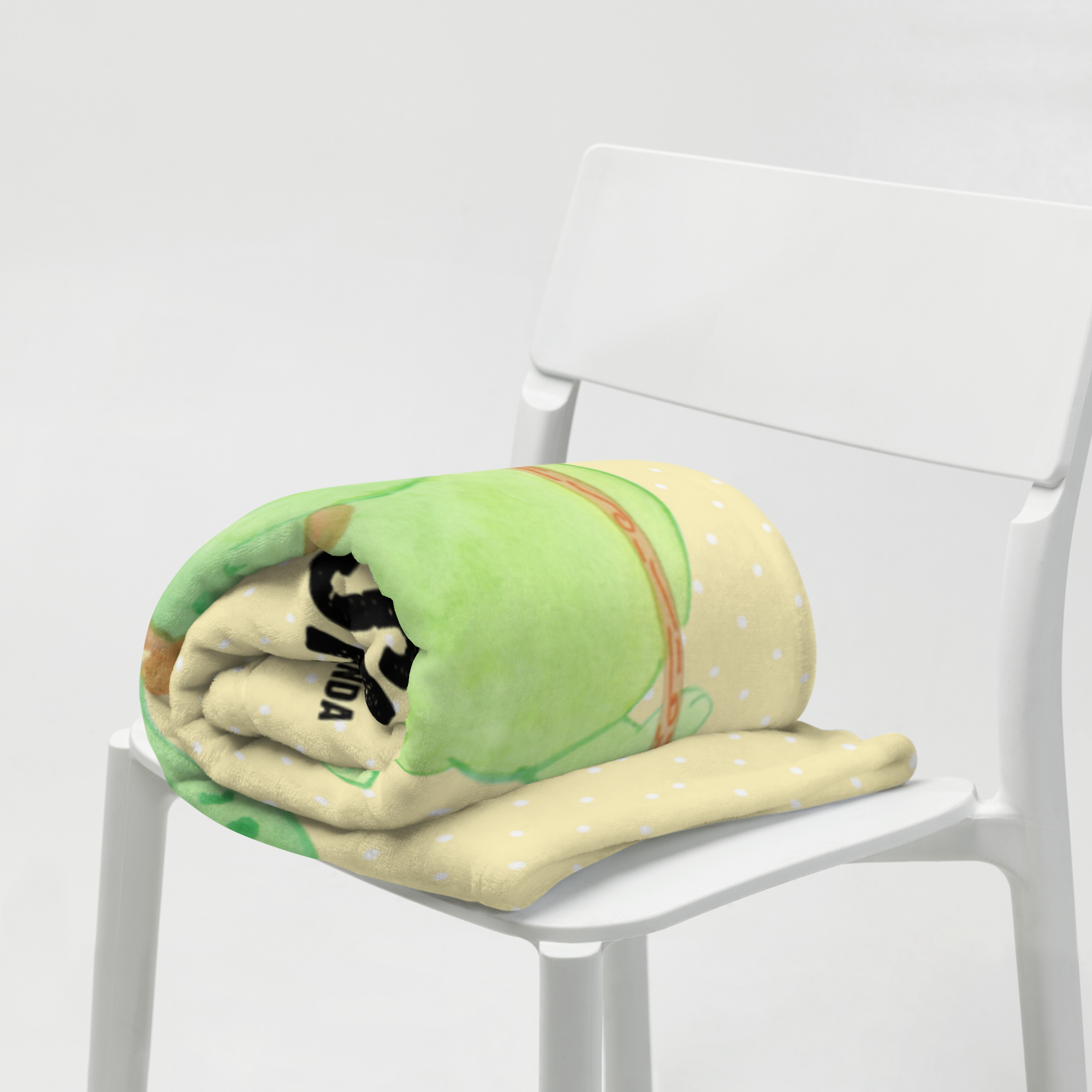 Die super flauschige personalisierte Babydecke mit Namen von Mr. & Mrs. Panda kann mit einem Namen bedruckt werden und ist ideal für kalte Monate und Tage. Die Größe der Kuscheldecke beträgt 127 x 153 cm und ist somit perfekt, um es sich im Wohnzimmer auf dem Sofa oder im Schlafzimmer auf dem Bett gemütlich zu machen.Die Sofadecke besteht aus Kuschel Fleece Mikrofaser und ist extrem flauschig. Die fellartige Kuscheldecke schmiegt sich herrlich weich an deinen Körper und wärmt außerordentlich gut, so wirst du sicherlich nicht frieren. Die Decke zeichnet sich durch ihre hochwertige und strapazierfähige Qualität aus. Alternativ kannst du die Decke auch 140x200 cm kaufen. Sie eignet sich auch optimal als Tagesdecke für Kinder und Erwachsene.