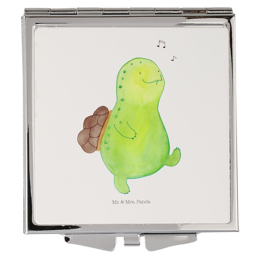 Handtaschenspiegel quadratisch Schildkröte pfeift - ohne Spruch - Weiß